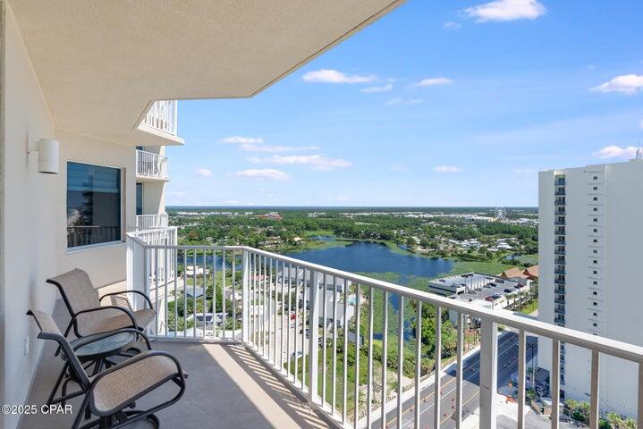 Best of the Best in Panama City Beach! Tidewater Beach Resort unit 1917 is a truly exceptional property; a unique, coveted eastern facing corner HUGE wraparound balcony! This desirable ''J'' floor plan is exceptionally bright with 9' ceilings, large glass windows, and 9' sliding glass doors that span across the living area framing breathtaking sunrise and sunset views over the coastline of Panama City Beach.
