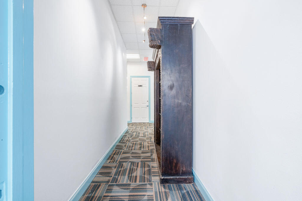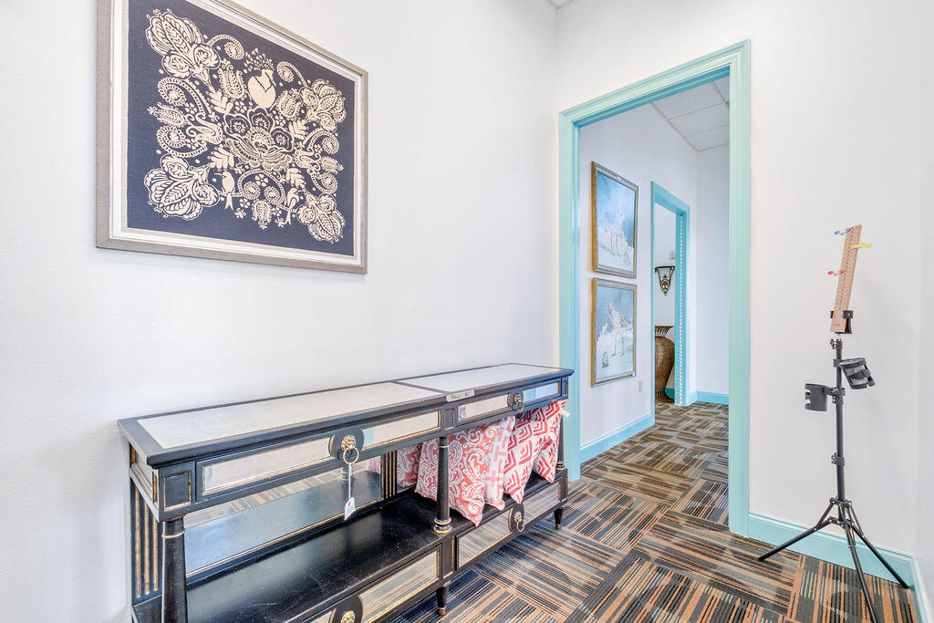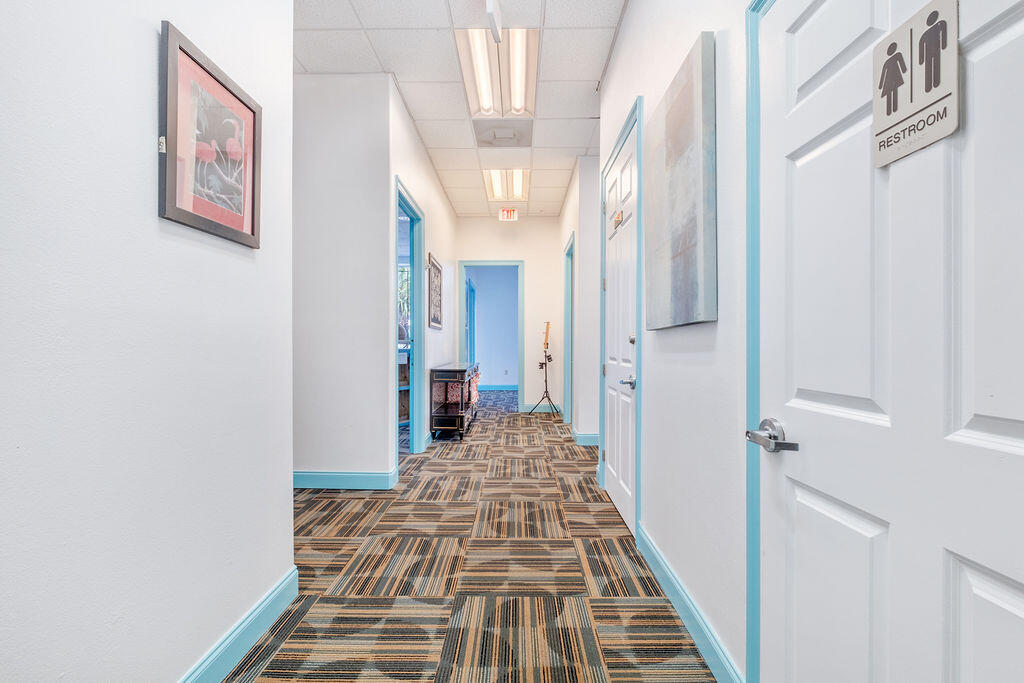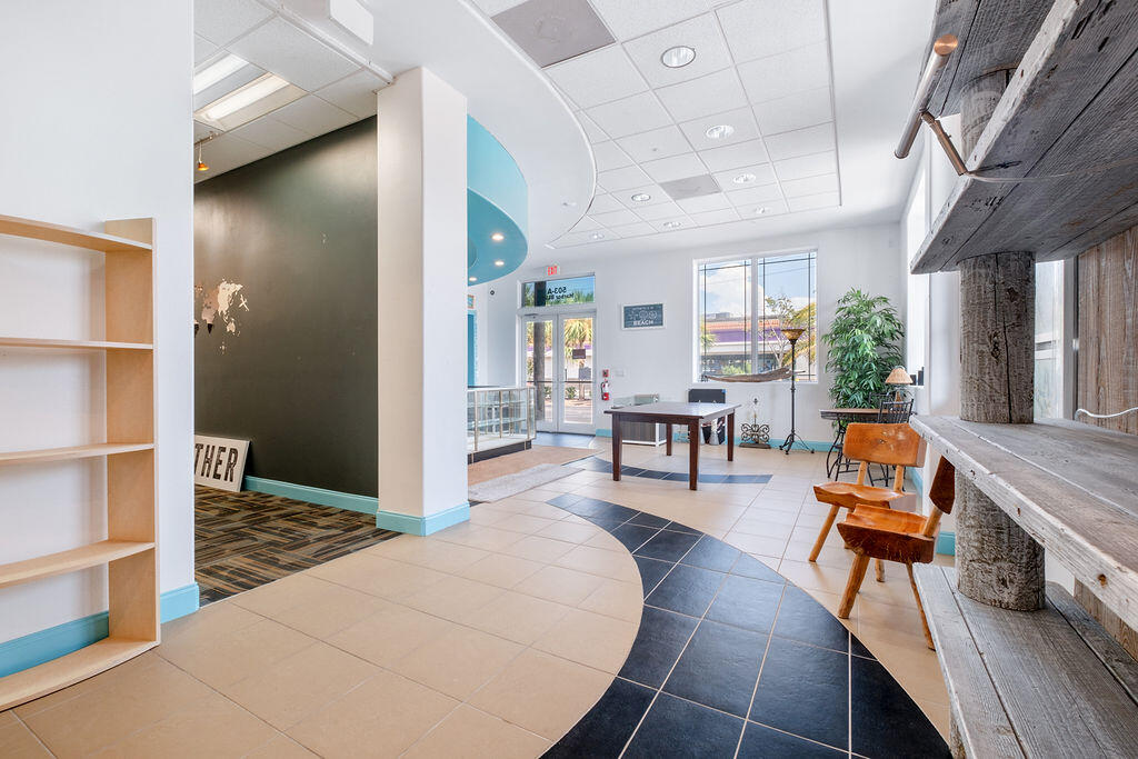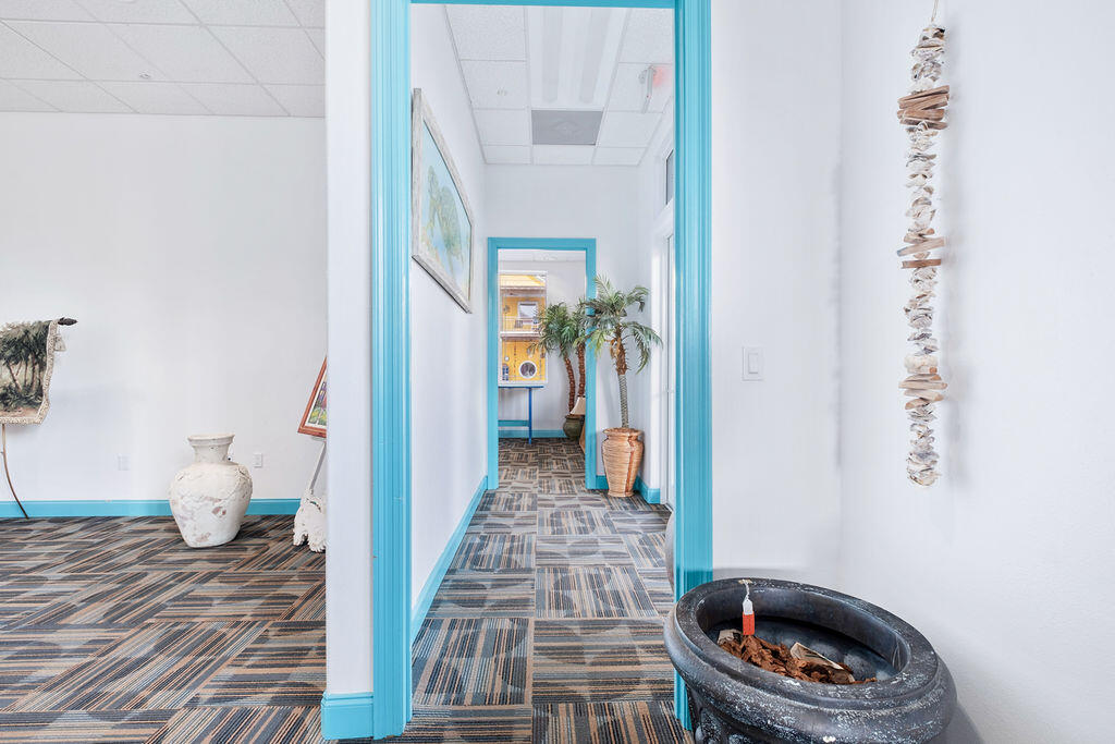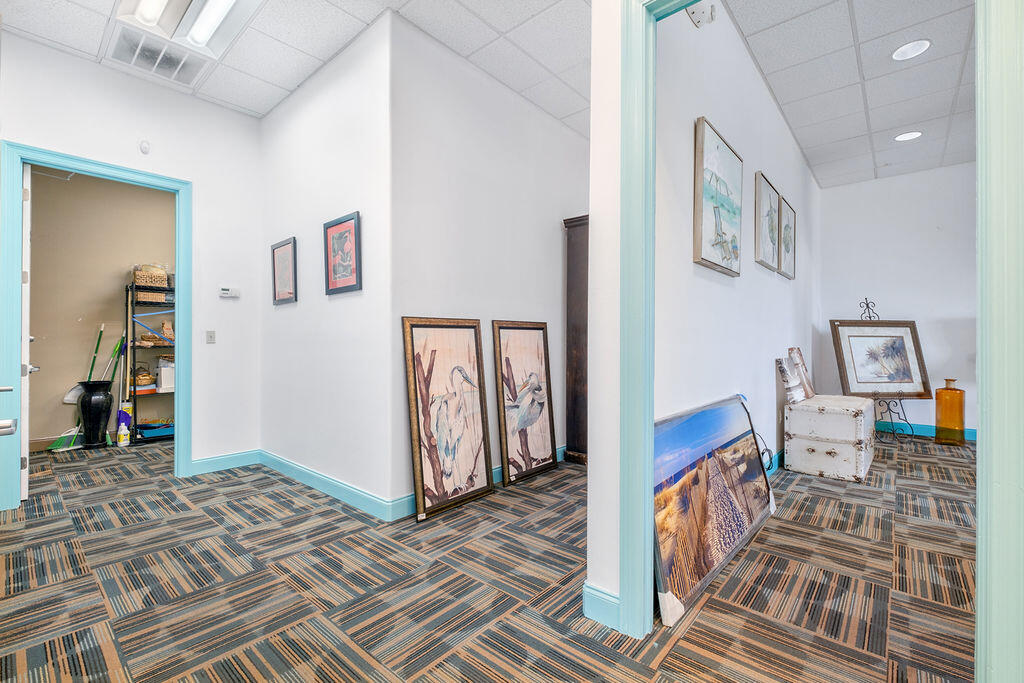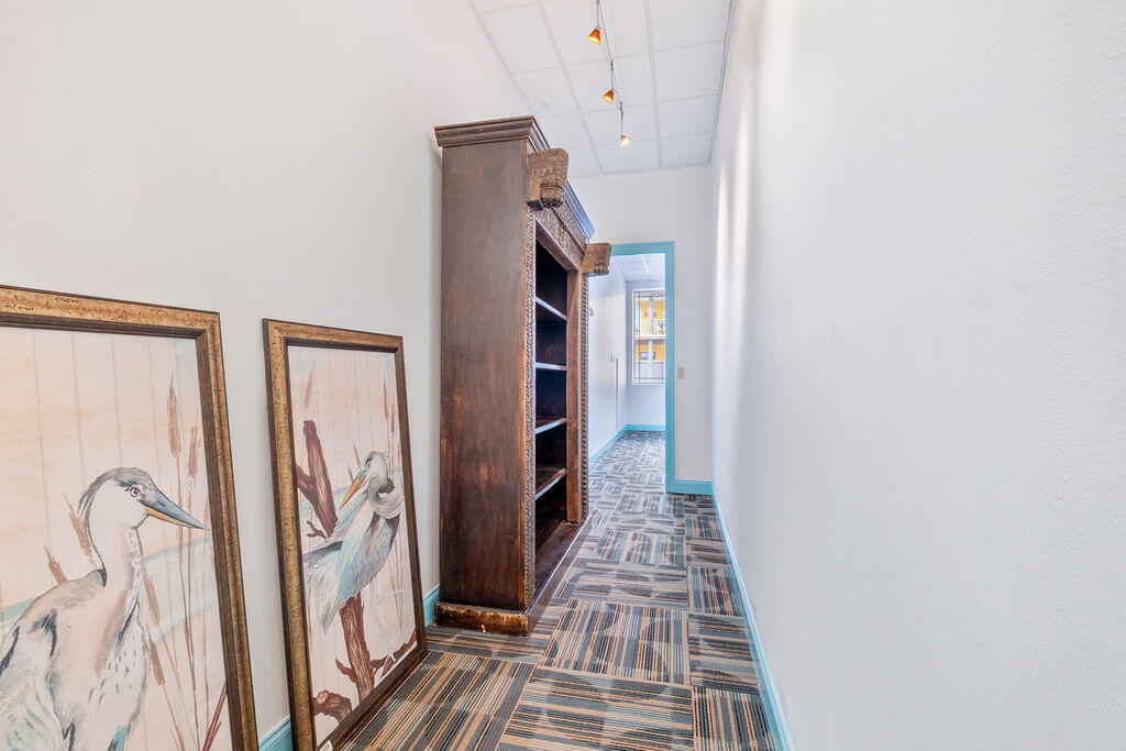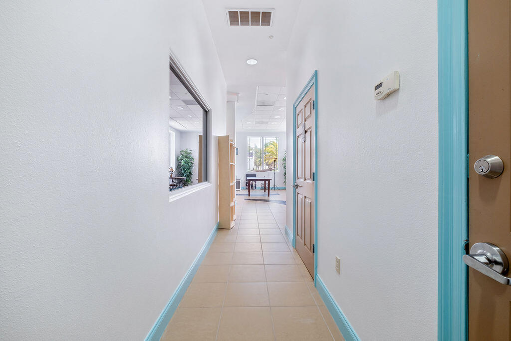 * Spacious lobby with high ceilings and multiple large rooms already configured for professional use