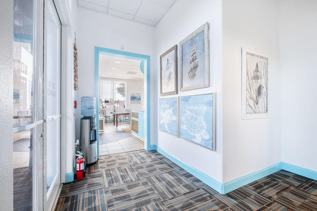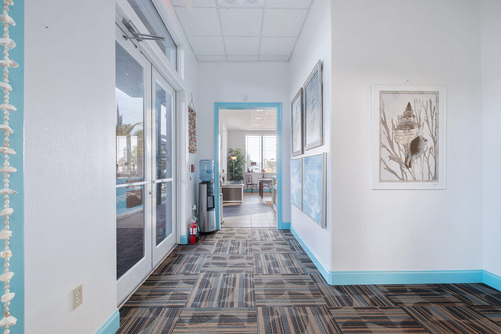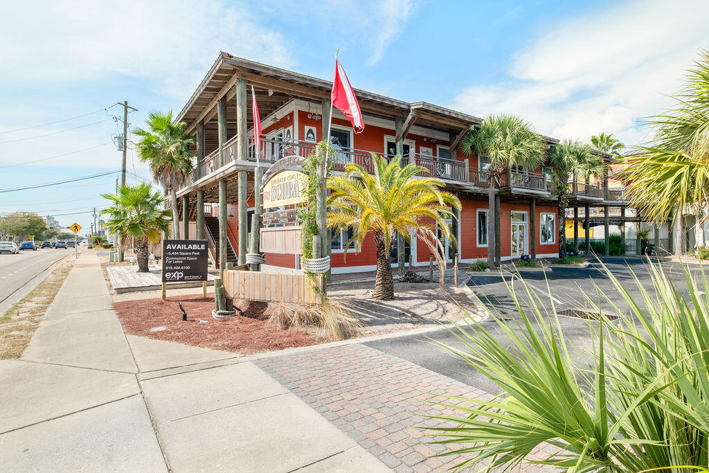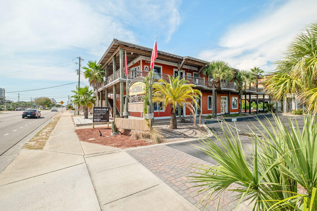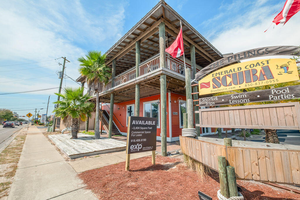 The building sits directly on Highway 98 in Destin, across the street from Boshamps. Behind the building is Emerald Coast Scuba.