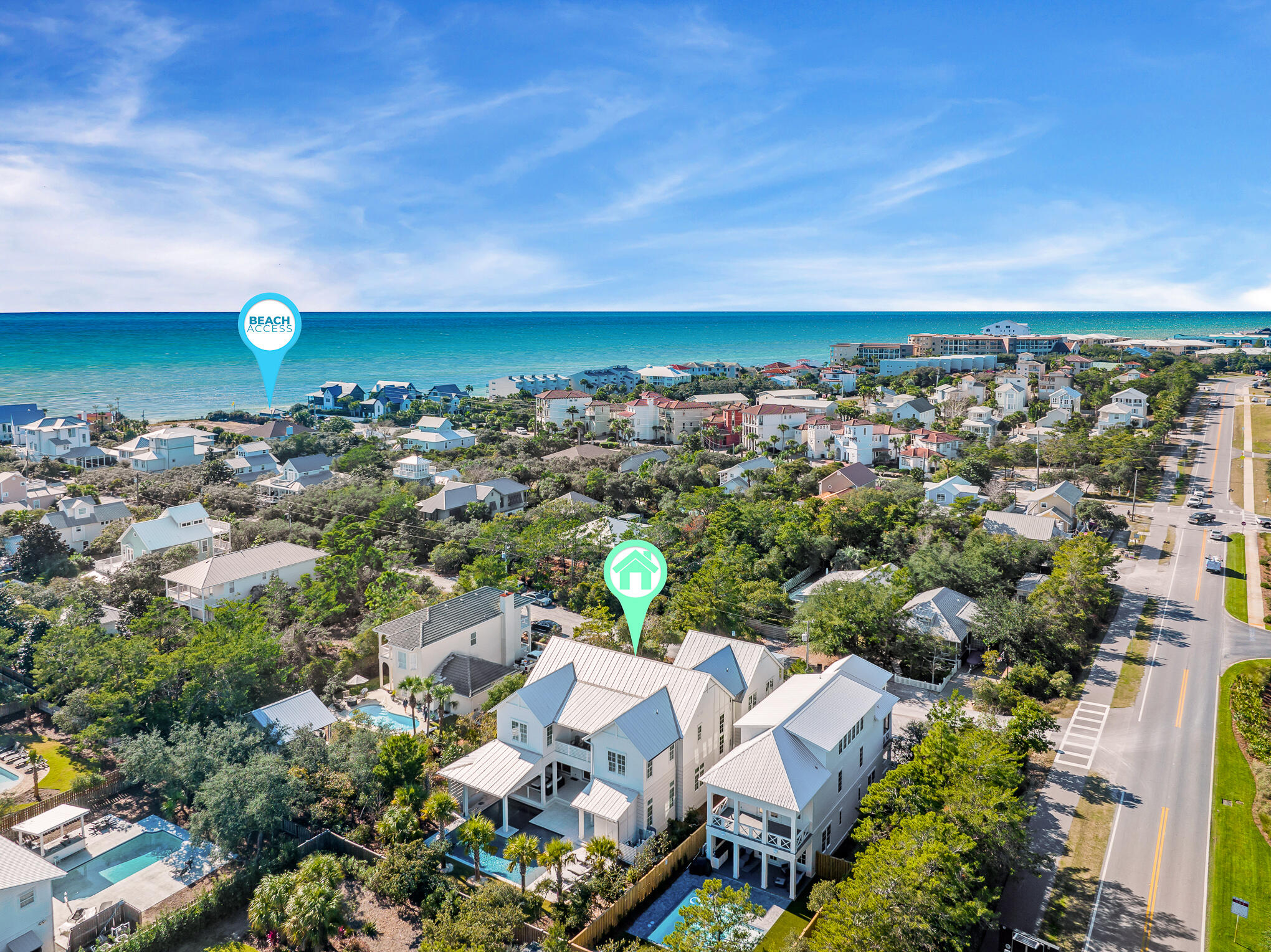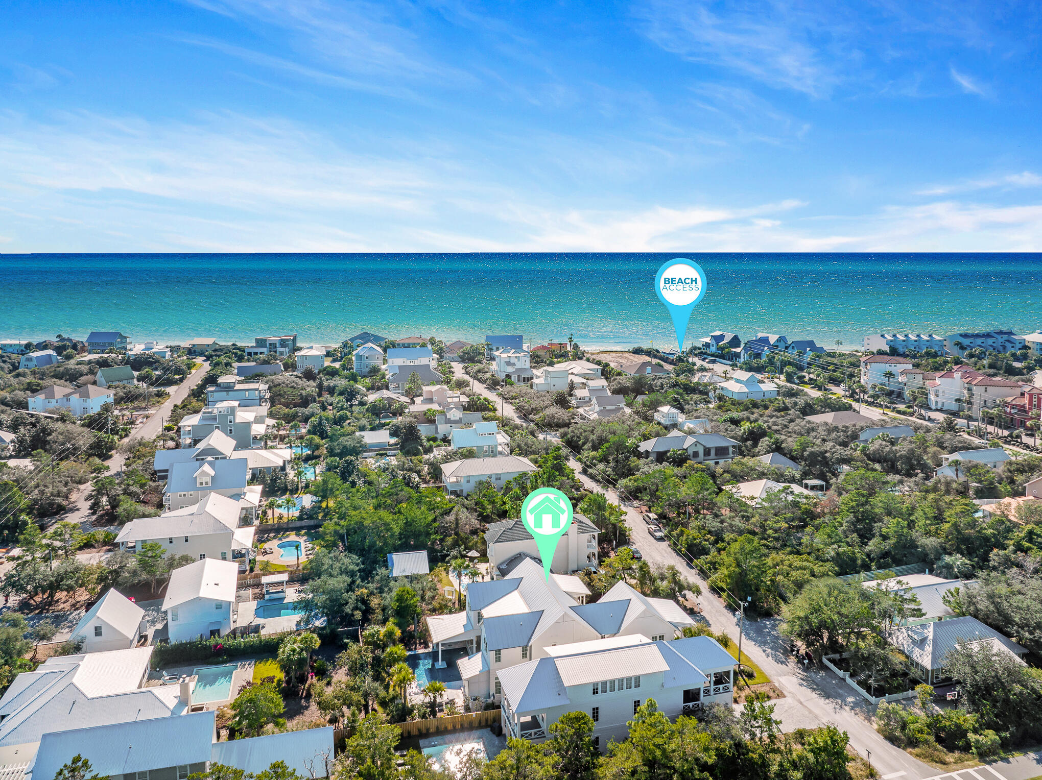 Take highway 83S to 30A, turn left onto 30A, then turn 1st right onto Sand Dunes. Home is 2nd on left.