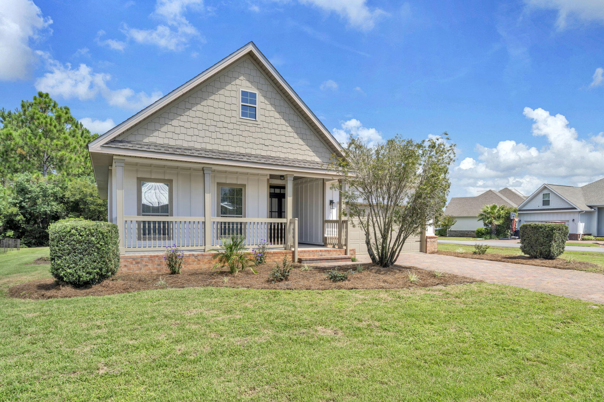New Everything! New roof, New AC, New Floors, New Paint interior and exterior. New Appliances, New quartz counter, New Water Heater, New lighting, New fans, New faucets and more!!Split floorplan 3 bedroom, 2 bath over 1800 sqft home close to the beach with a 2 car garage. Incredible massive community pool. Walk/cart/bike to Ed Walline public beach access. Screened in back porch. Walk/bike to nature trails. Walk/bike to Gulf Place with shops and restaurants. Rental able, turnkey home, immaculate. Nothing to do but move in.