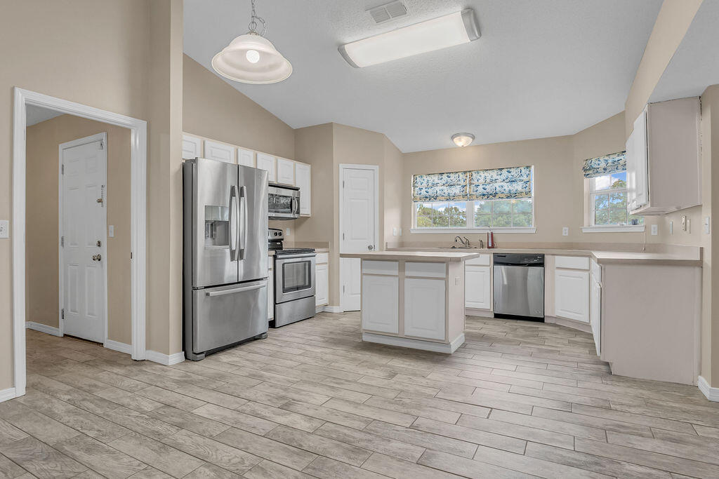 Charming Crestview Home for Sale! Built in 2007, this spacious single-family residence is a perfect blend of comfort and style. The home features 3 bedrooms, 2 bathrooms, and a 2-car garage. Inside, you'll find an open floor plan with tile flooring throughout the main living areas and carpeting in the bedrooms. The living room has cathedral ceiling and plant shelves, creating an airy and oversized feel. The kitchen is large as well and has that open and airy feeling including a space for a breakfast nook. Kitchen island is convenient and is perfect for meal prep and entertaining. Conveniently located, this neighborhood is less than 4 miles from Crestview High School and a must see. Call today!
