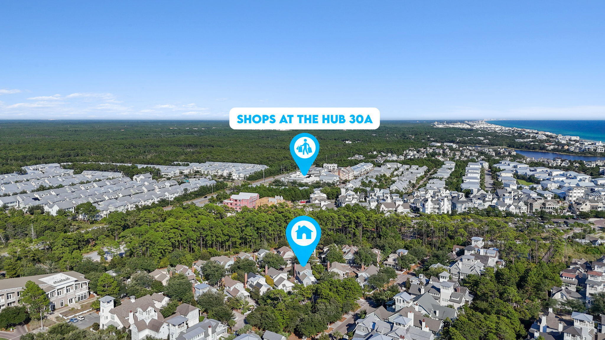 Enter the Gates of WaterSound Beach and take immediate left onto Salt Box Lane. Home will be in the bend of the road on your right.