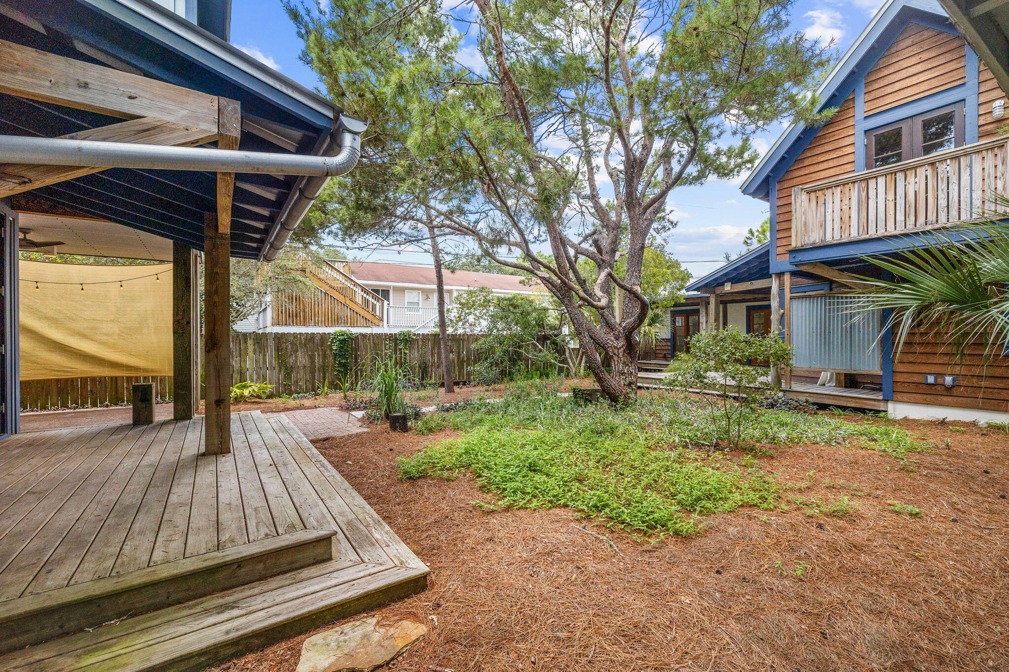 An excellent opportunity to be close to 30A's most exclusive communities and shopping, while maintaining privacy on a wooded 57x153 foot lot, 217 Walton Rose Way is a home base for the young-at-heart and coastal creatives. The site features multiple living spaces which surround a central courtyard, anchored by unique and inspiring landscaping. It is a mere 700 feet from the Gulf of Mexico, where you will find over a half mile of the nearly uninterrupted public beaches of Inlet Beach. Originally an efficiency unit, meticulously planned and built in 2004, the property has been expanded over time to become a compound brimming with elegant character. The main house, which dates to 2015, features a work studio as well as a loft. Each room and space has the optionality to be purposed to the best and highest use for its future owner.