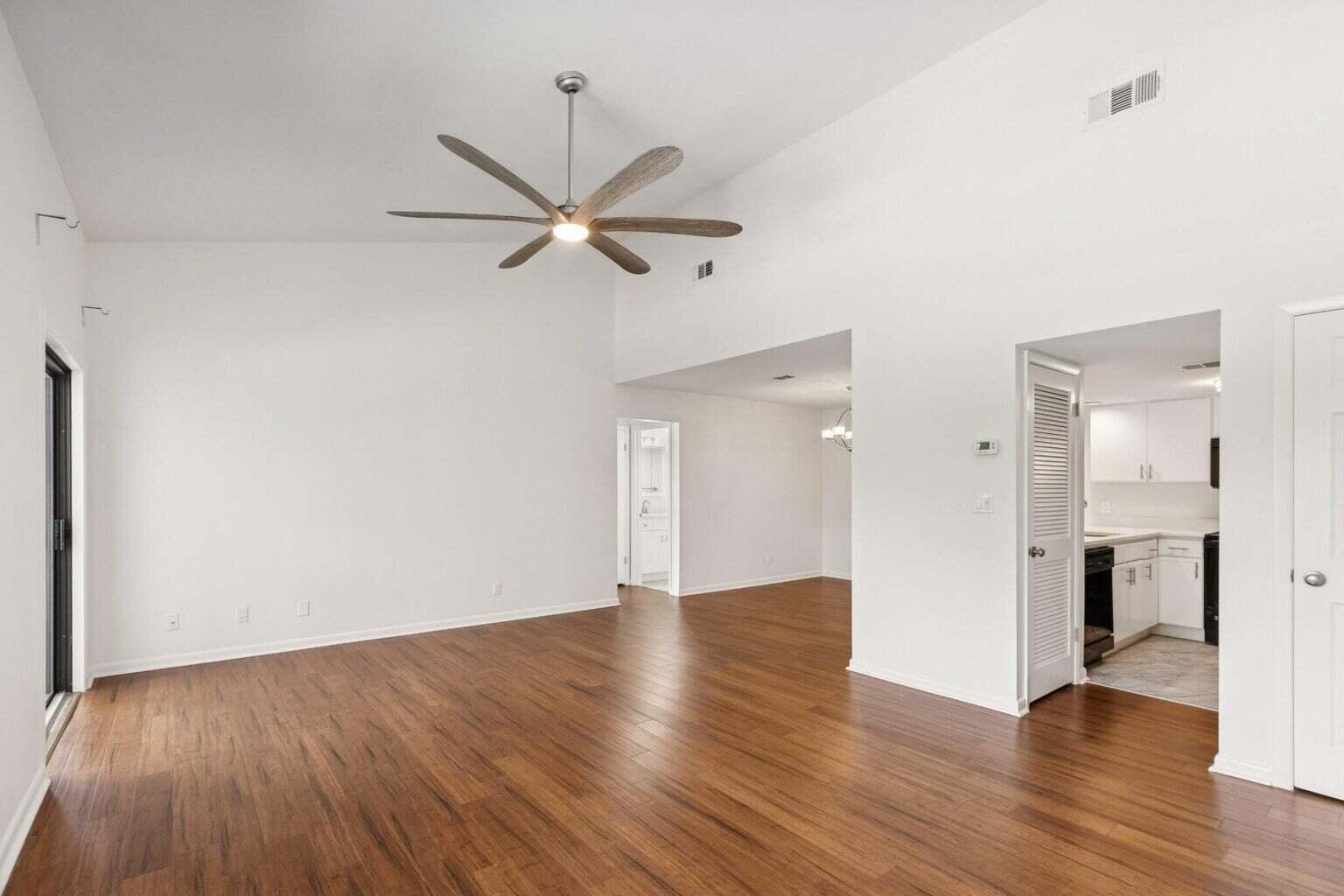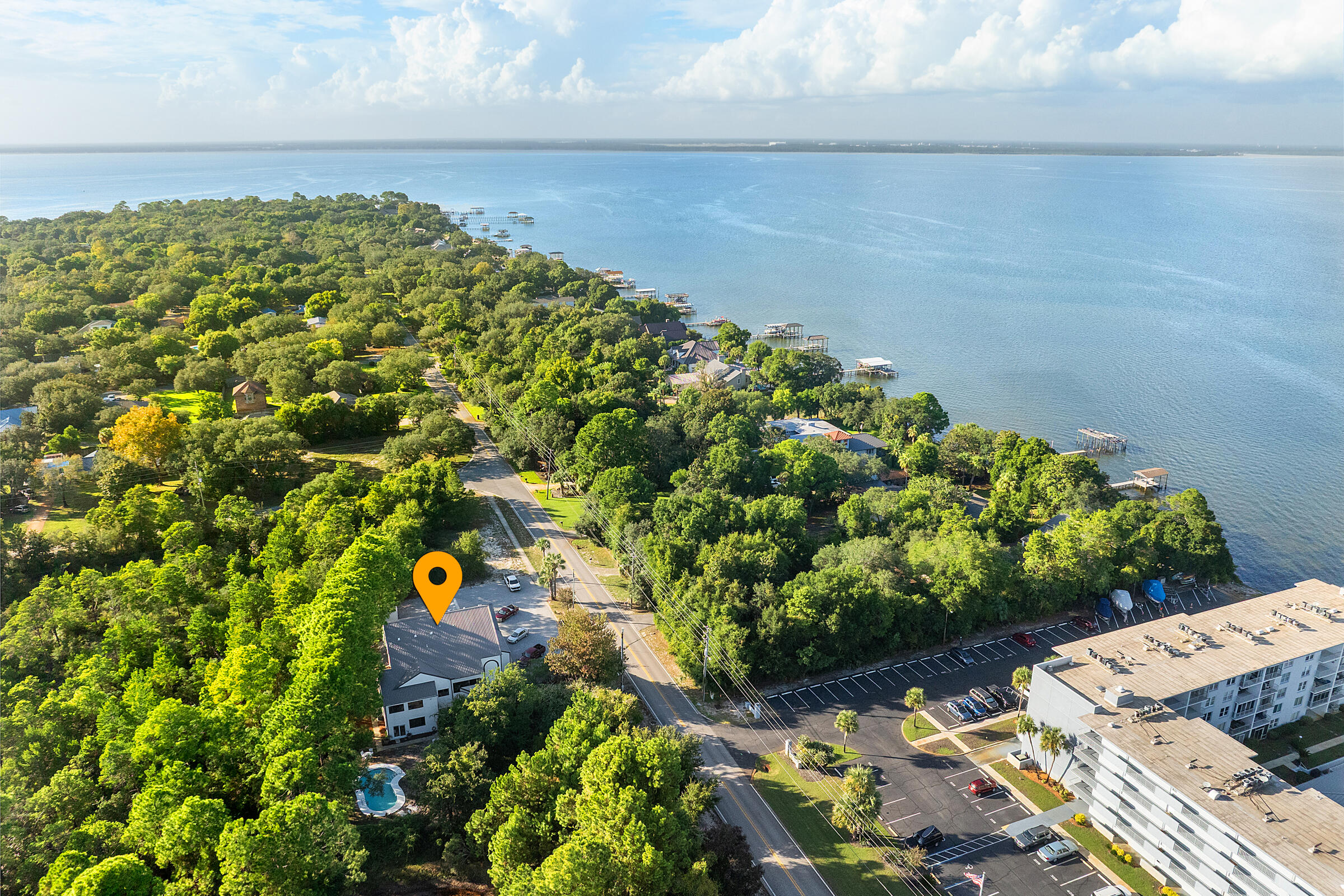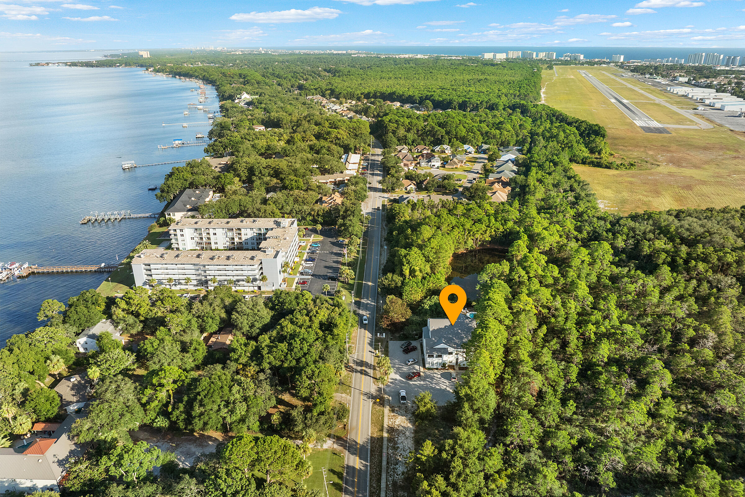 Location, location, location! Across from the bay and just 2.5 miles to Henderson Beach State Park, this spacious top-floor 1BR (approx. 1,055 SF) in a quiet 8-unit community is a standout. Enjoy a soaring ~20' vaulted great room, hand-scraped bamboo floors, fresh neutral paint, and a ducted/heated sunroom--perfect as an office, lounge, or flex guest space. The kitchen and bath feature matching quartz countertops, new stainless sink, and Delta fixtures; the bath also boasts a cast-iron/porcelain tub with new surround and vanity. Storage is easy with an oversized walk-in closet (plus loft potential above kitchen/dining--buyer to verify). Building updates include full exterior repaint and a new 30-year metal roof (2024). Minutes to public beach access, shopping, and the new Publix.