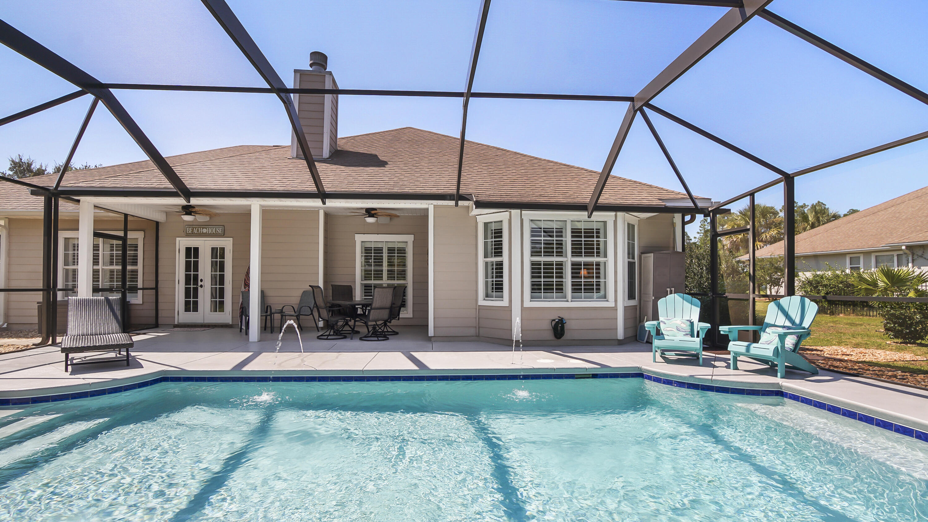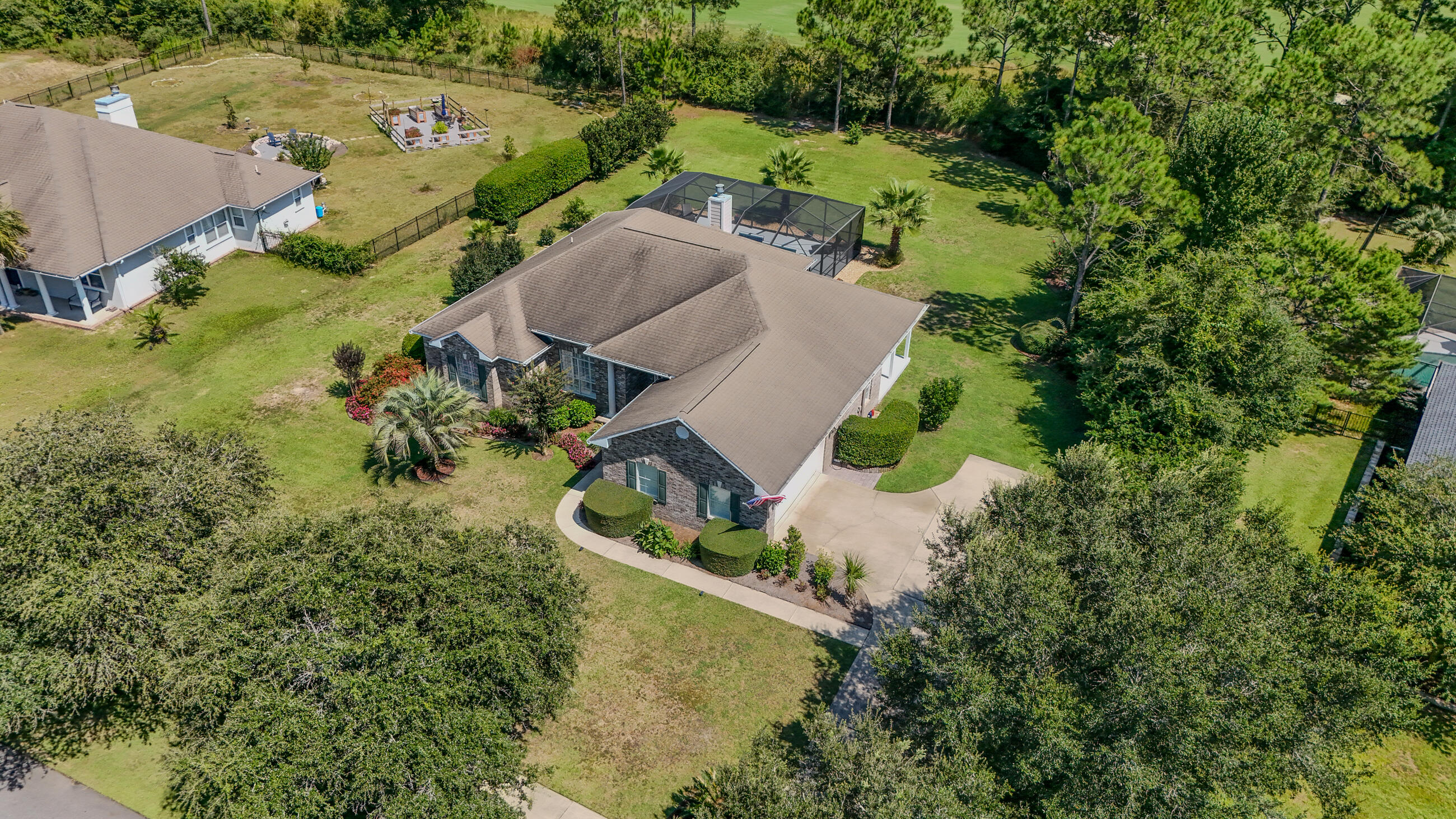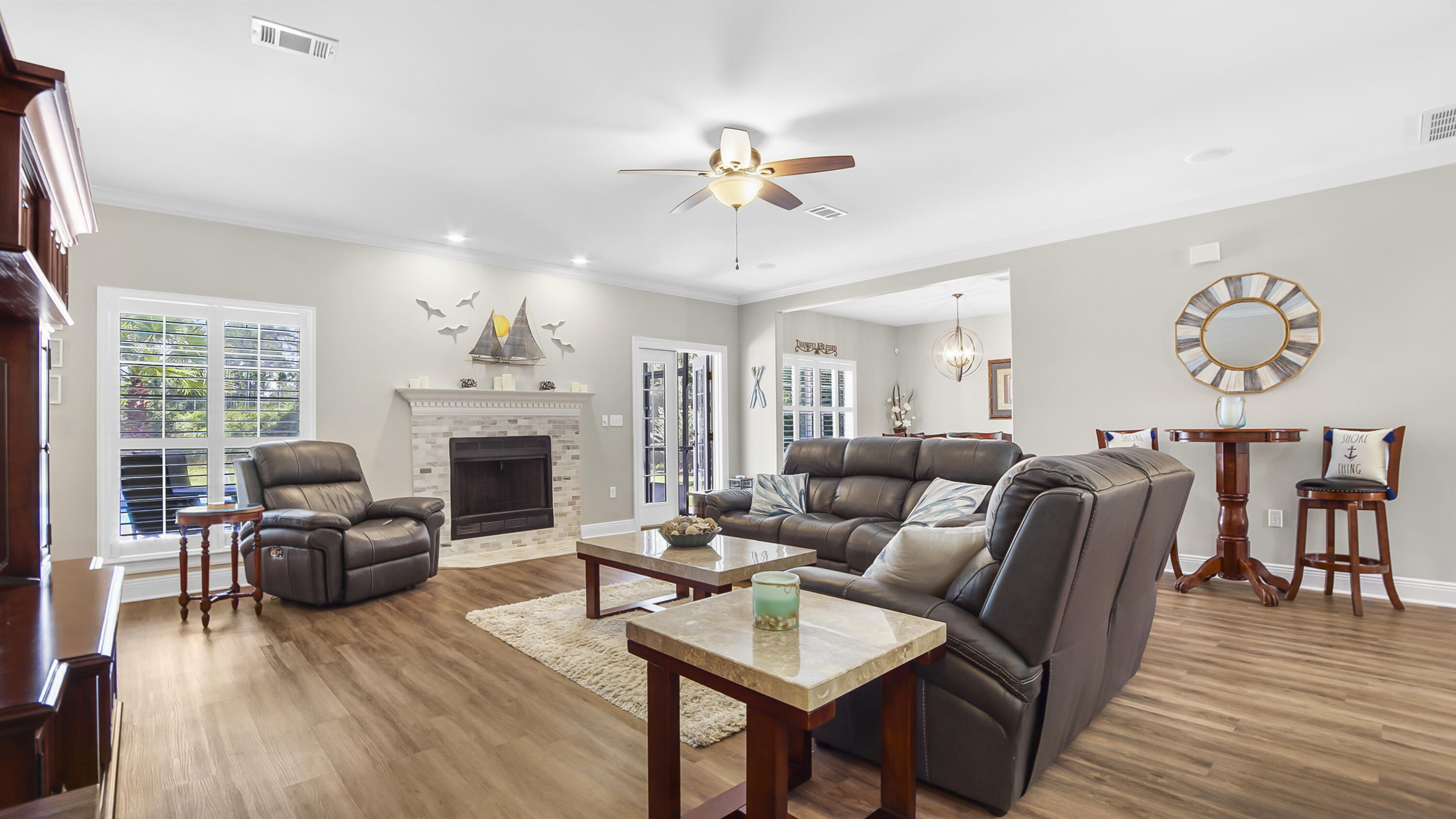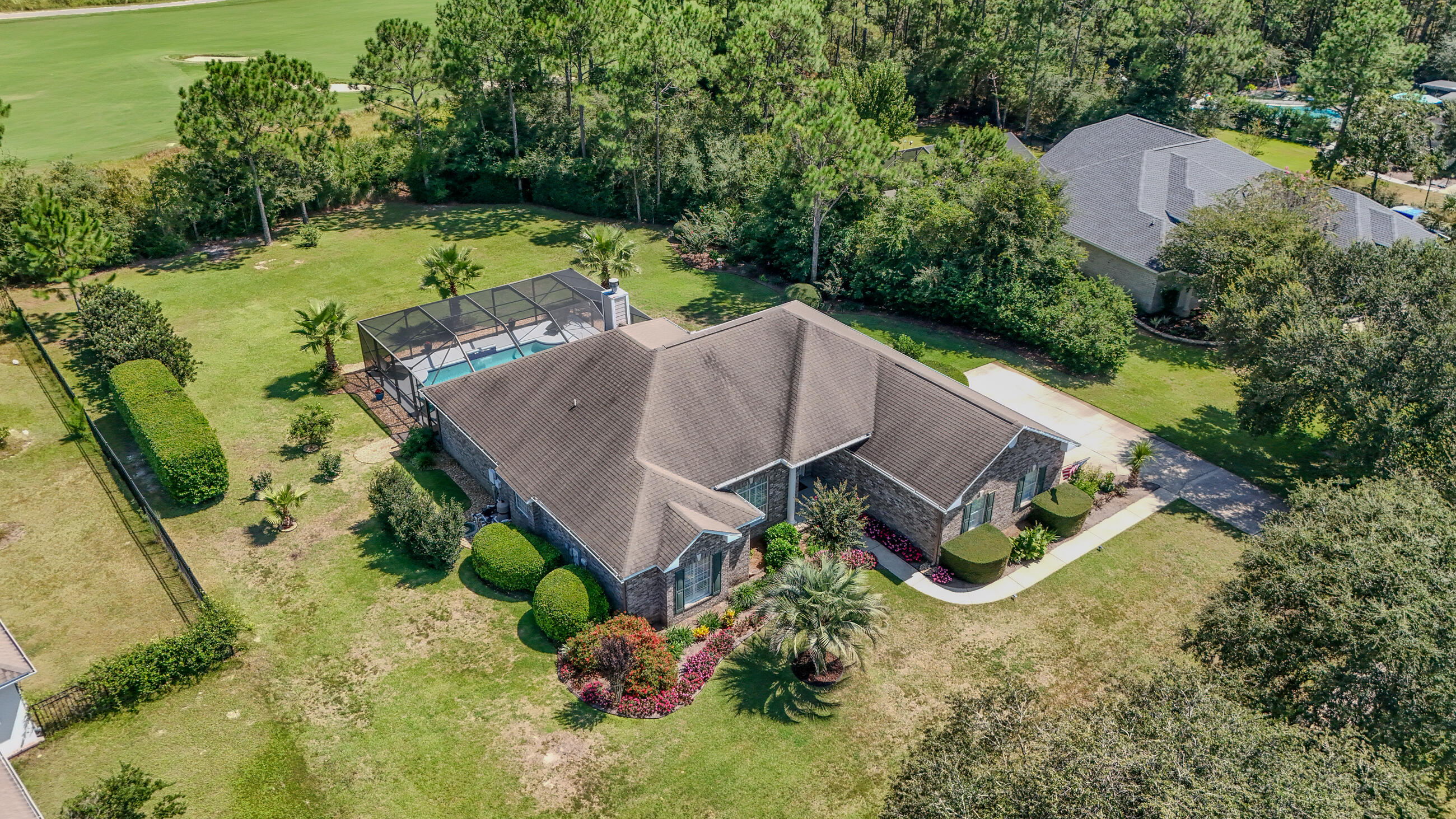 Welcome to your private retreat in the prestigious Windswept Estates golf community. This beautifully renovated home sits on a spacious .64-acre golf course lot with mature landscaping that provides both privacy and stunning curb appeal. Step inside to find an open, light-filled floor plan featuring all new LVP flooring (no carpet), crown molding, fresh interior paint, and Plantation shutters throughout. The renovated kitchen is a showstopper with granite countertops and modern finishes, while the updated bathrooms continue the theme of stylish upgrades. A cozy wood-burning fireplace anchors the living area, creating the perfect gathering spot. Outdoors, relax and entertain around the inground saltwater gunite pool with an enclosed lanai, ideal for year-round enjoyment. The yard is meticulously maintained with a private 40-foot irrigation well for efficiency. Practical updates provide peace of mind, including a new HVAC (2021), water heater (2021), and gutters already in place. This home combines modern upgrades with timeless charm in a prime golf course setting. Don't miss your chance to own a move-in ready property in one of Freeport's most desirable neighborhoods. Windswept Estates offers a lifestyle like no other, featuring an 18-hole par-72 championship golf course, a clubhouse with large swimming pool, tennis, basketball, and pickle ball courts, a playground for children, weekly food trucks, holiday parties, scenic nature trails, and the added peace of mind of a gated entrance with beautifully maintained landscaping throughout the community. This home blends upscale finishes, modern systems, and resort-style amenities into a rare, move-in ready opportunity. Don't let this one slip by.