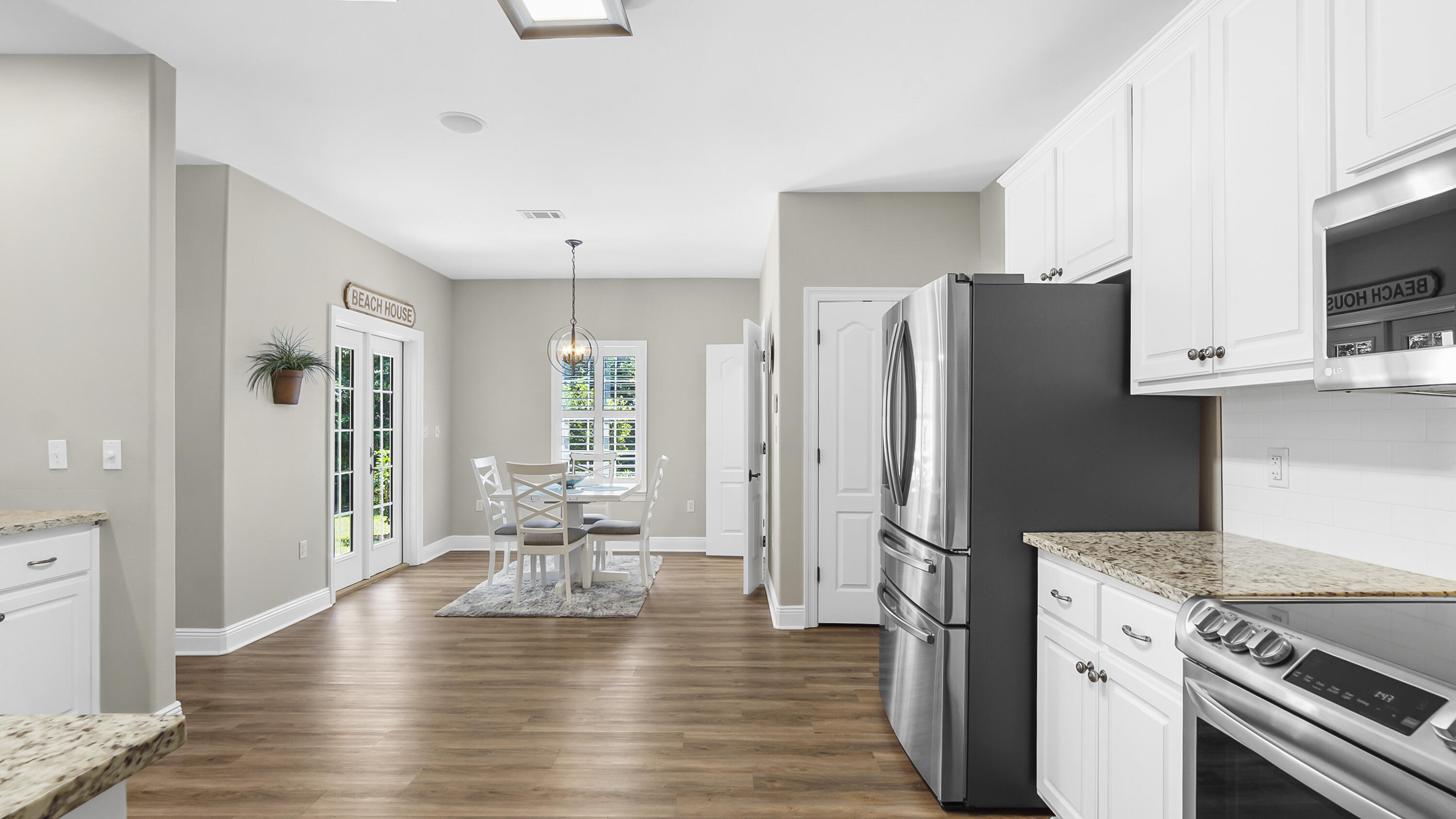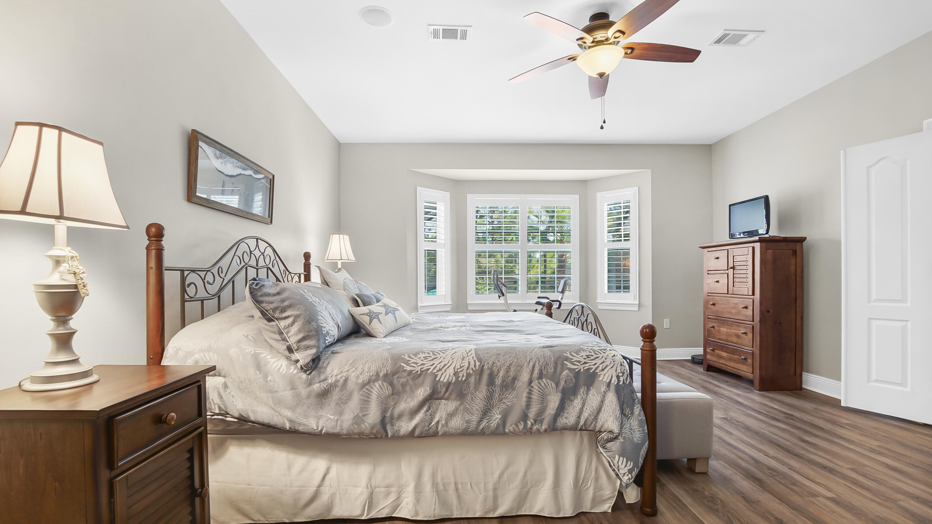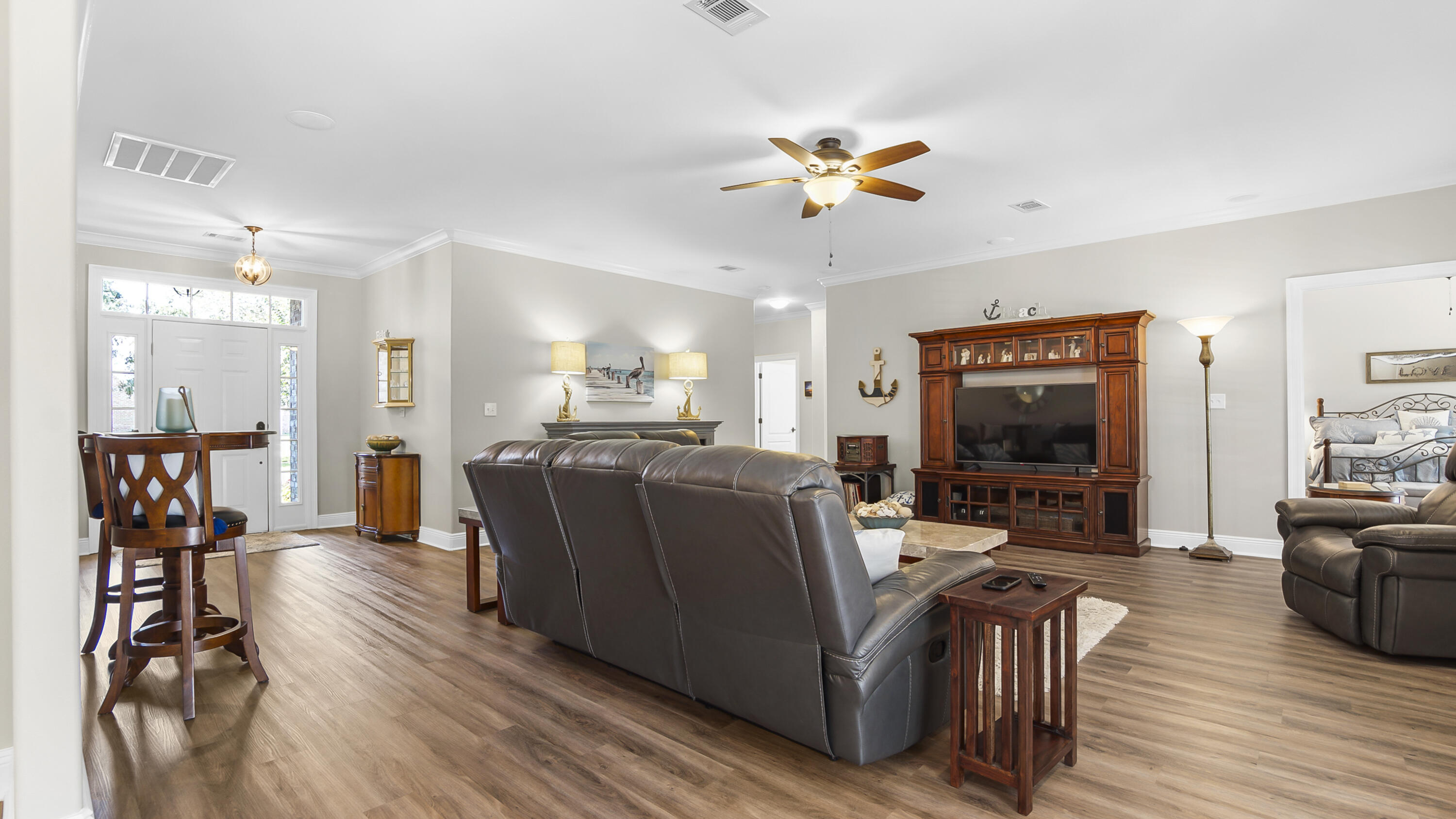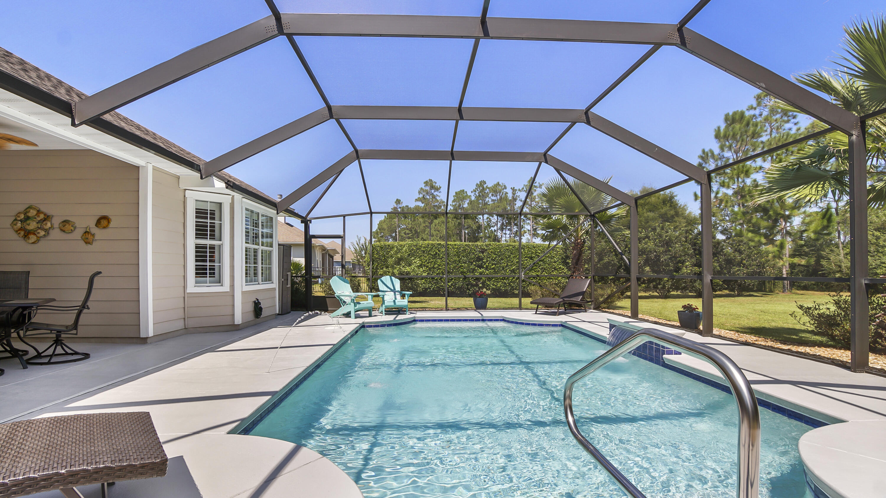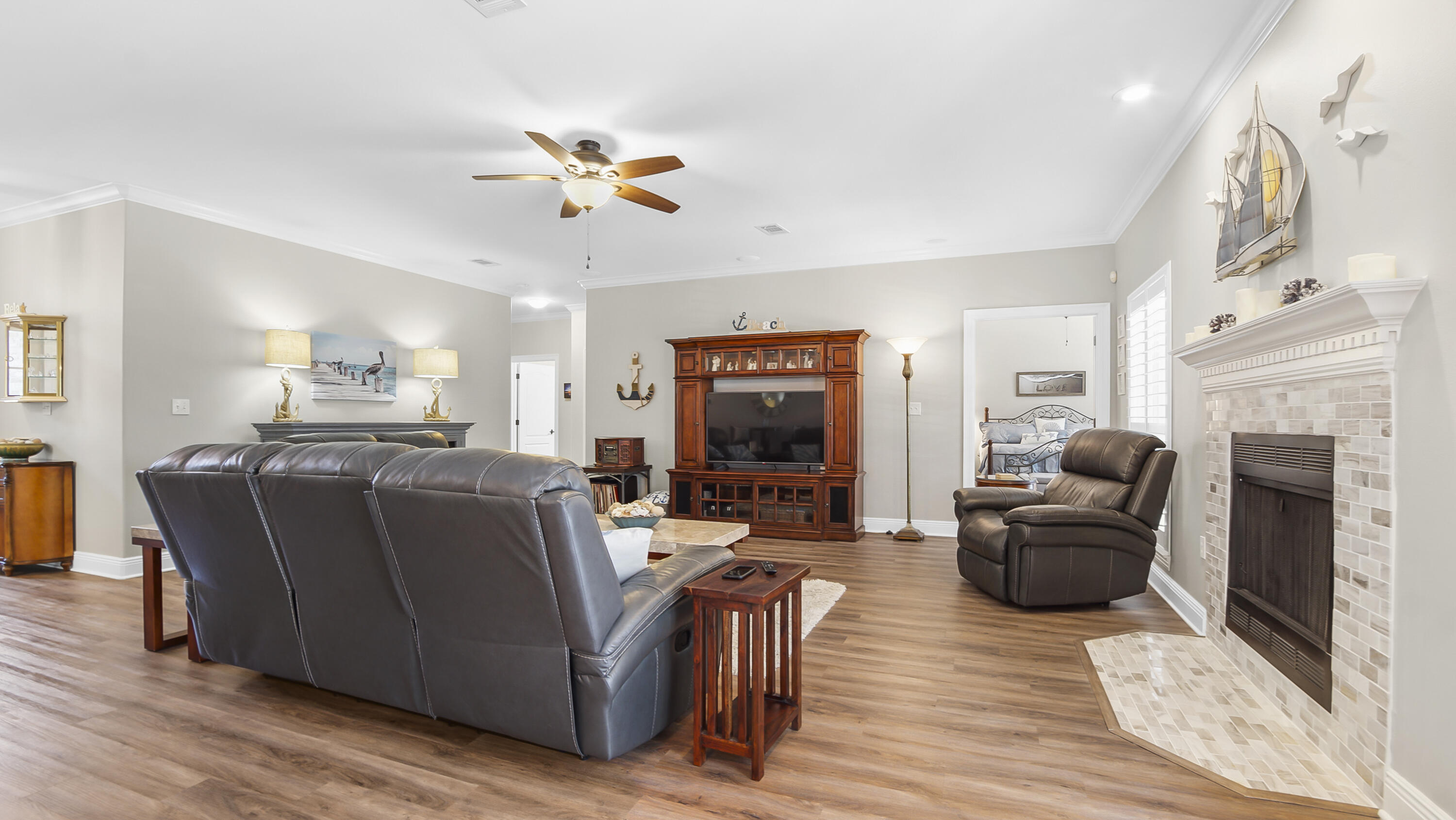 Welcome to your private retreat in the prestigious Windswept Estates golf community. This beautifully renovated home sits on a spacious .64-acre golf course lot with mature landscaping that provides both privacy and stunning curb appeal. Step inside to find an open, light-filled floor plan featuring all new LVP flooring (no carpet), crown molding, fresh interior paint, and Plantation shutters throughout. The renovated kitchen is a showstopper with granite countertops and modern finishes, while the updated bathrooms continue the theme of stylish upgrades. A cozy wood-burning fireplace anchors the living area, creating the perfect gathering spot. Outdoors, relax and entertain around the inground saltwater gunite pool with an enclosed lanai, ideal for year-round enjoyment. The yard is meticulously maintained with a private 40-foot irrigation well for efficiency. Practical updates provide peace of mind, including a new HVAC (2021), water heater (2021), and gutters already in place. This home combines modern upgrades with timeless charm in a prime golf course setting. Don't miss your chance to own a move-in ready property in one of Freeport's most desirable neighborhoods. Windswept Estates offers a lifestyle like no other, featuring an 18-hole par-72 championship golf course, a clubhouse with large swimming pool, tennis, basketball, and pickle ball courts, a playground for children, weekly food trucks, holiday parties, scenic nature trails, and the added peace of mind of a gated entrance with beautifully maintained landscaping throughout the community. This home blends upscale finishes, modern systems, and resort-style amenities into a rare, move-in ready opportunity. Don't let this one slip by.