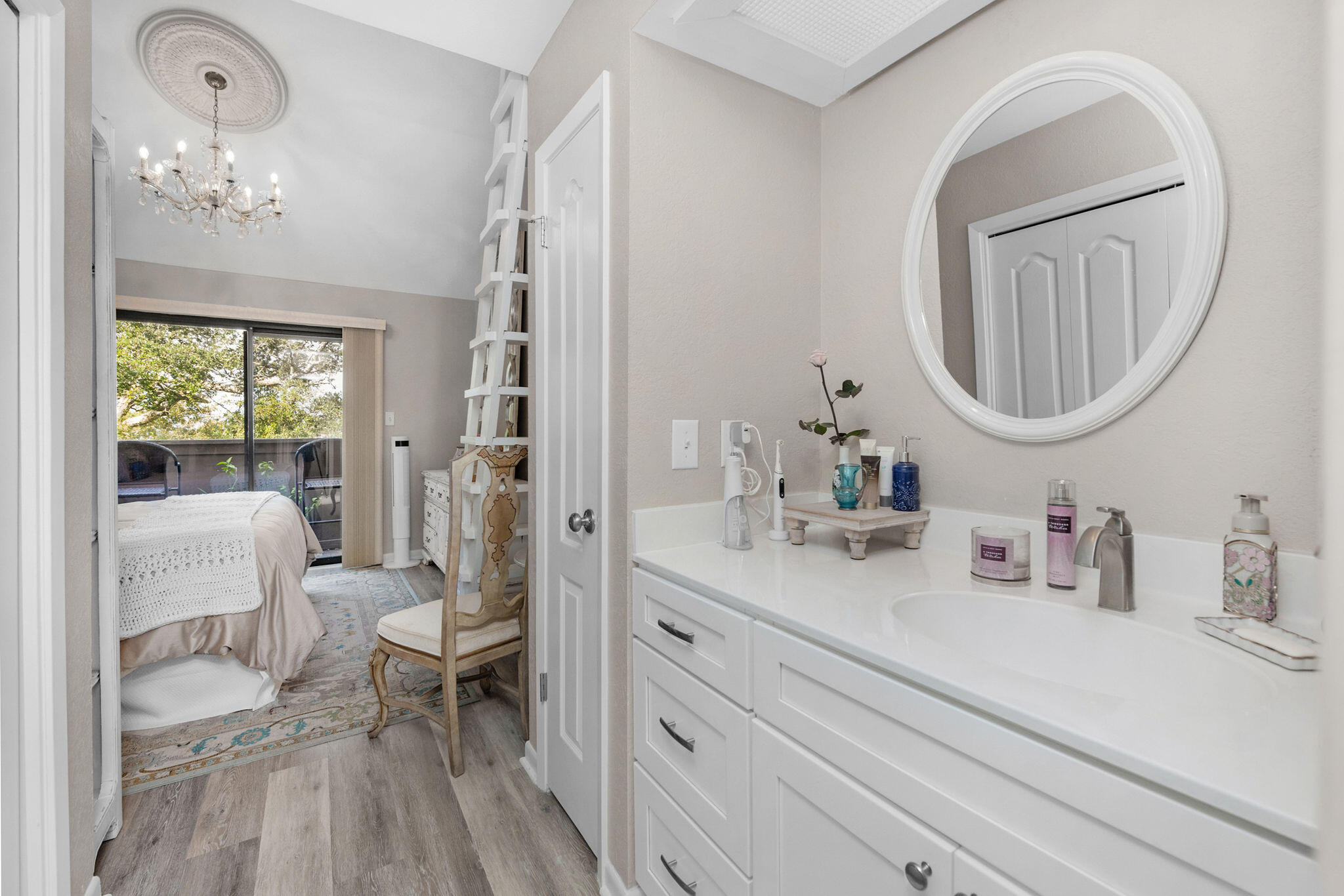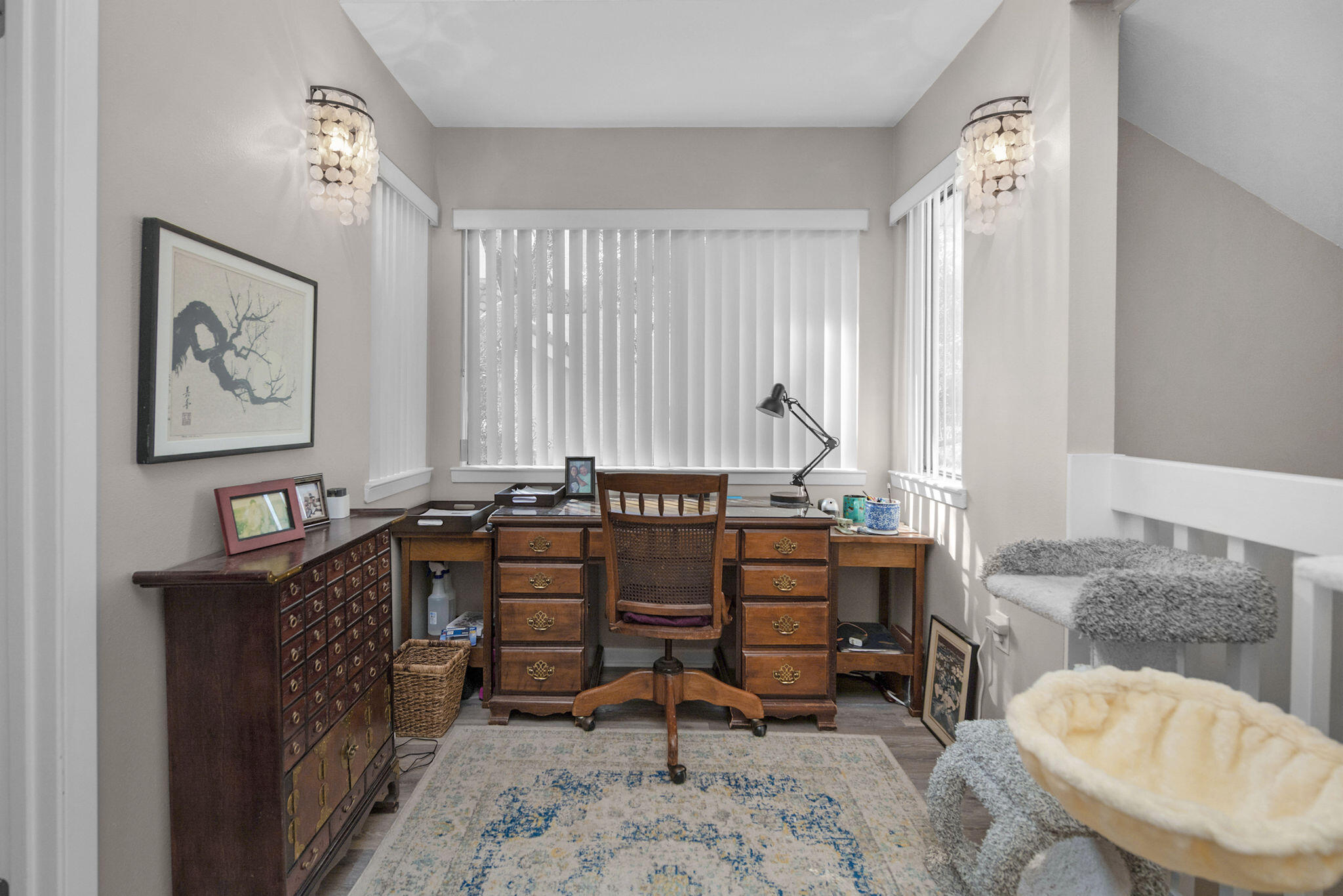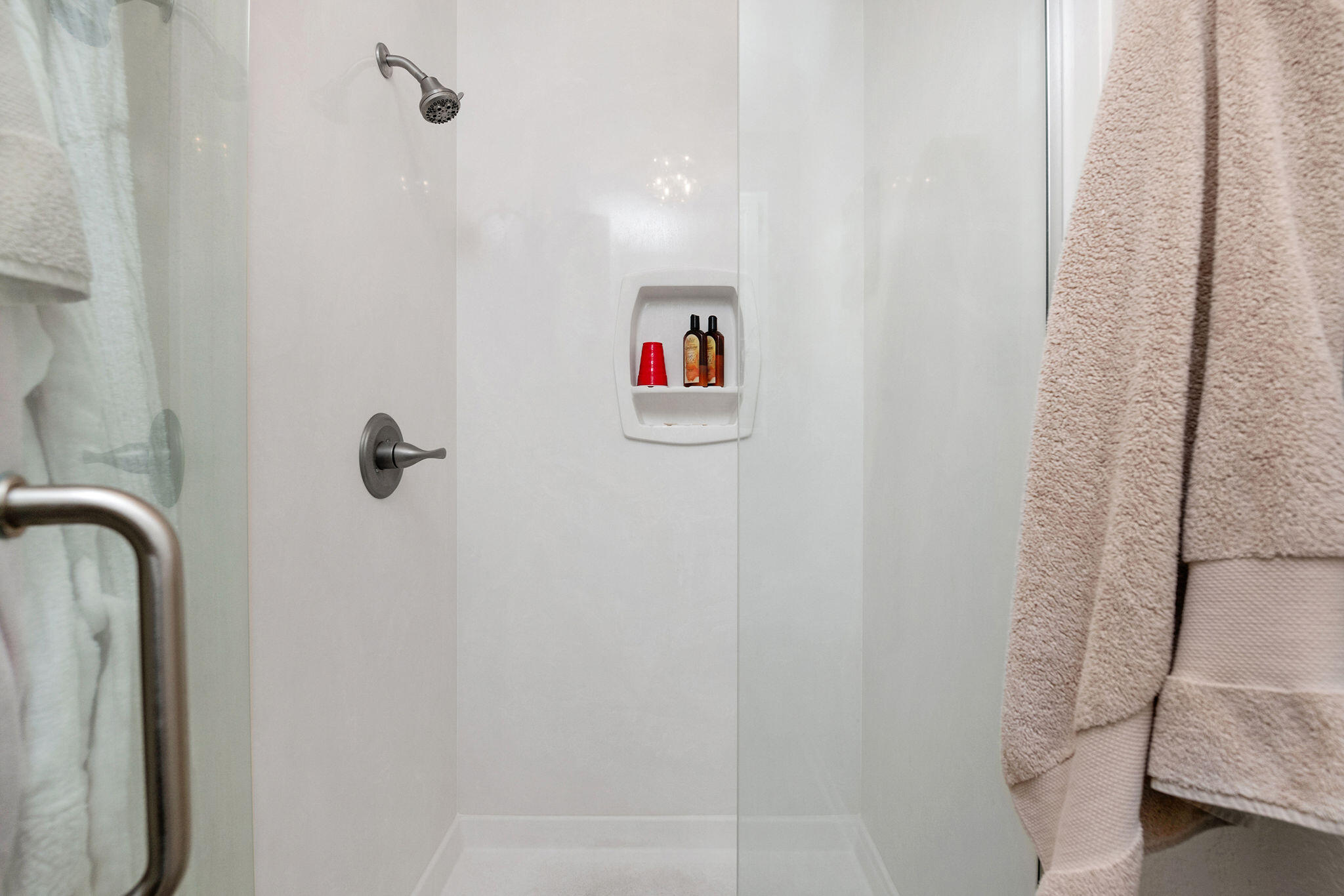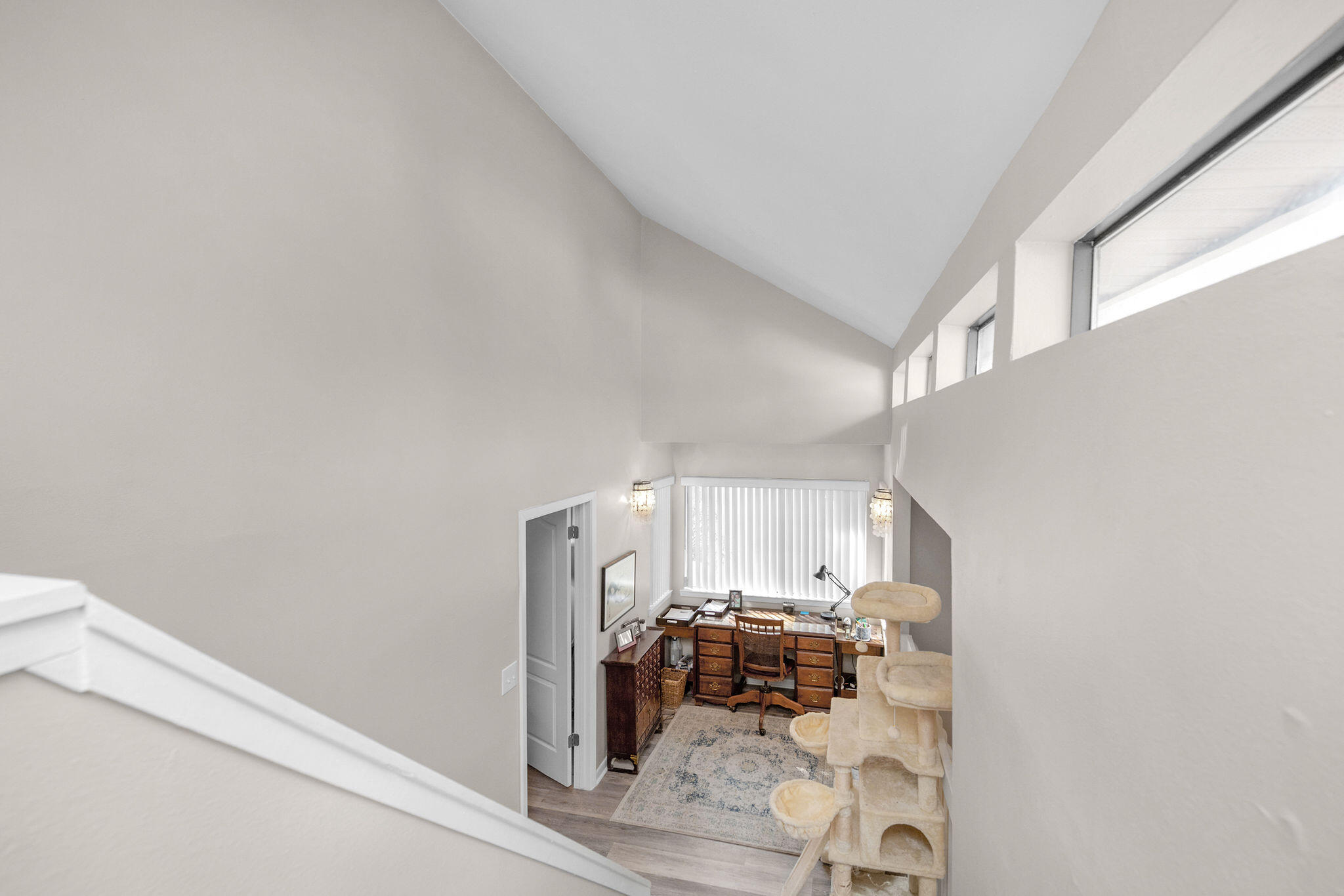 A loft and guest bedroom with vaulted ceilings are located on the next level, while the top floor is dedicated to the primary suite. Here, you'll enjoy an en-suite bath, a large loft, and gorgeous bay views right from your bedroom.