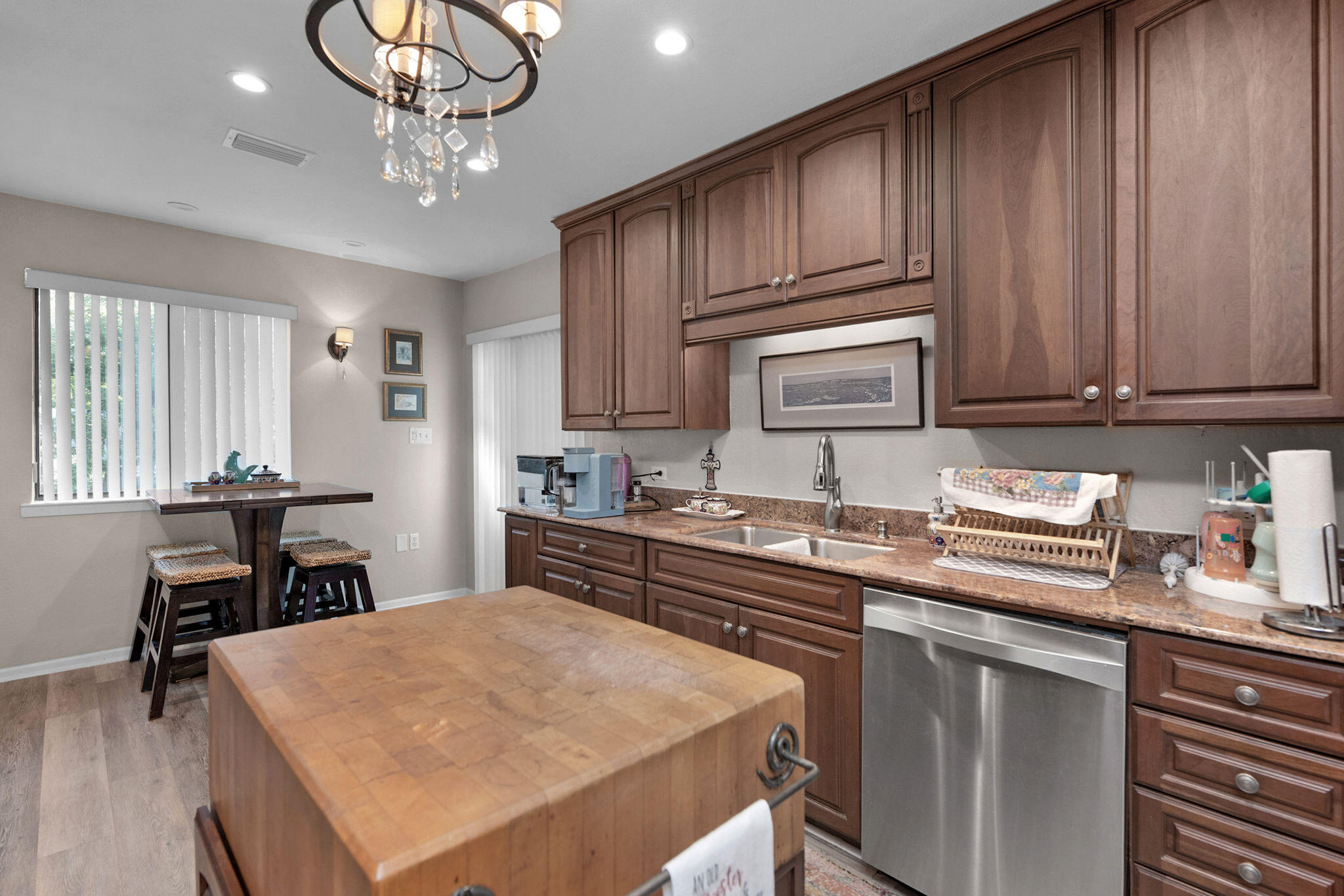 This end-unit townhome offers stunning water views from multiple levels and extra guest parking conveniently located right out front.The first floor welcomes you with LVP flooring, an updated half bath, a storage closet, and built-in cabinetry. The cozy living area features a gas fireplace and opens to a private deck overlooking the baya"perfect for relaxing or entertaining. Upstairs, the spacious kitchen is designed for both function and style with pull-out shelves, two pantries, an island with butcher block top, and granite countertops. The dining area and adjoining sitting space offer more breathtaking bay views, along with roll-out windows, built-in shelving, and durable LVP flooring.