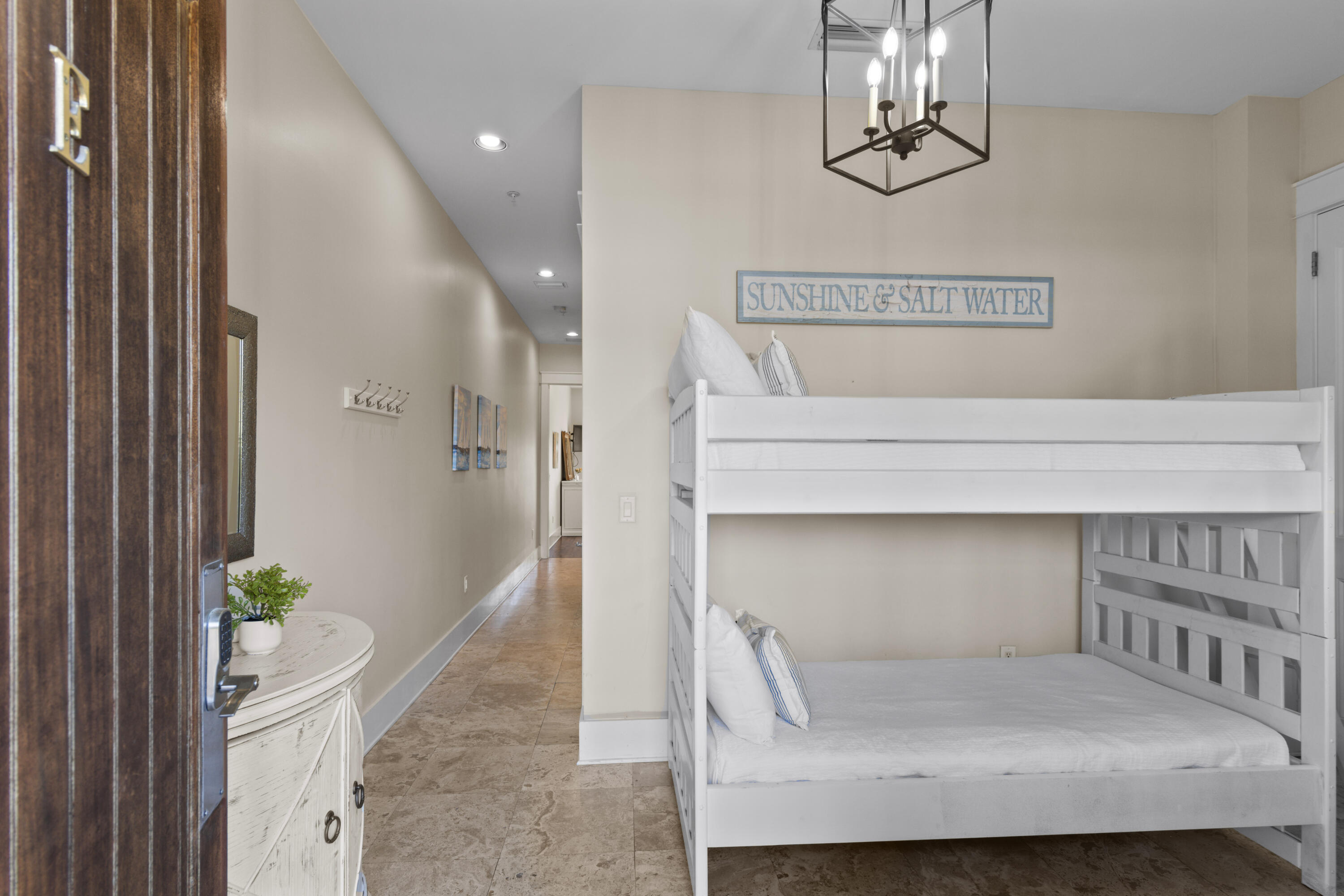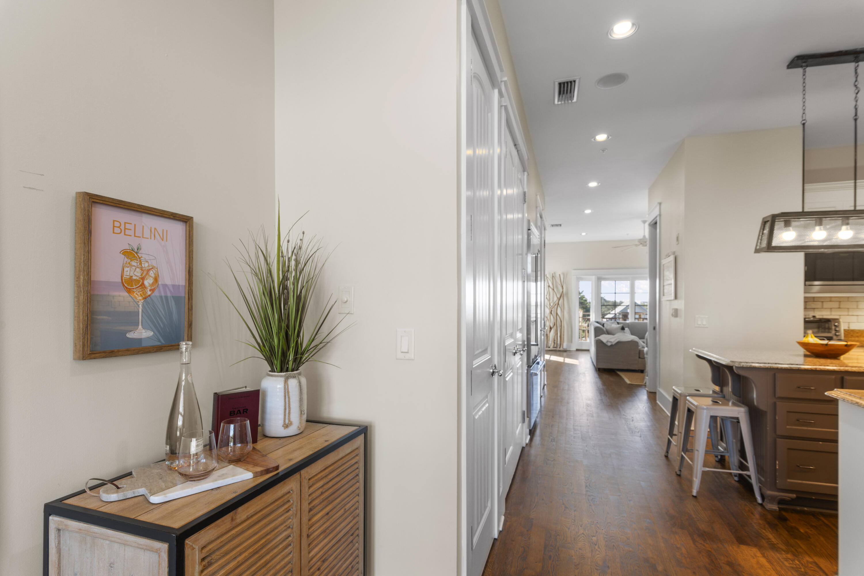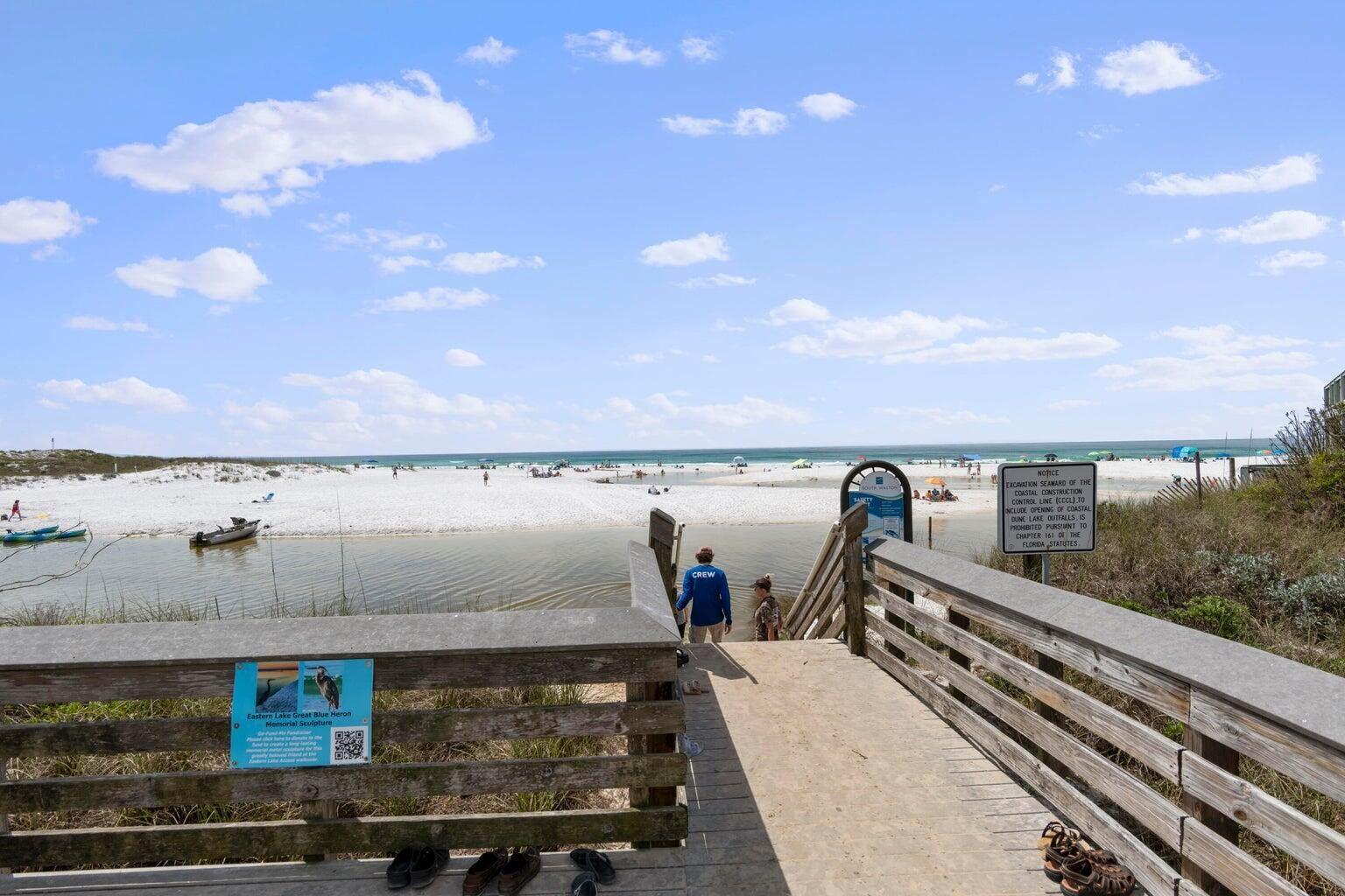 Discover coastal living at its finest in this remarkable two-story condo, perfectly situated in the heart of Seagrove Beach. With 2 bedrooms, 2.5 bathrooms, and upscale finishes throughout, this residence is an exceptional find and would make a perfect primary home, vacation getaway, or investment property. Enjoy stunning views from multiple outdoor spaces, including a private balcony off the primary bedroom on the first level and a large balcony off the living area on the second level showcasing beautiful vistas of the Gulf, Eastern Lake, and vibrant sunsets. Located less than a mile from two beach accesses: Walton Dunes and Eastern Lake, and within half a mile from Eastern Lake Boat Ramp, this condo is perfectly positioned for 30A's greatest outdoor adventures! Step inside to find travertine tile on the first level and hardwood floors upstairs, complemented by soaring 10' ceilings. You are welcomed into the large foyer spacious enough for twin bunks maximizing the sleep capacity. The first level consists of both bedrooms, 2 full bathrooms, and laundry closet with full-size washer & dryer for added convenience. The primary bathroom features a walk-in travertine tile shower with glass door while the guest bathroom offers a shower/tub combo with subway tile surround for those who enjoy a relaxing soak. The guest bathroom can be accessed directly from the guest bedroom and the hallway. The owner's closet located off the foyer is decent in size and keeps your personal valuables and beach gear secure.