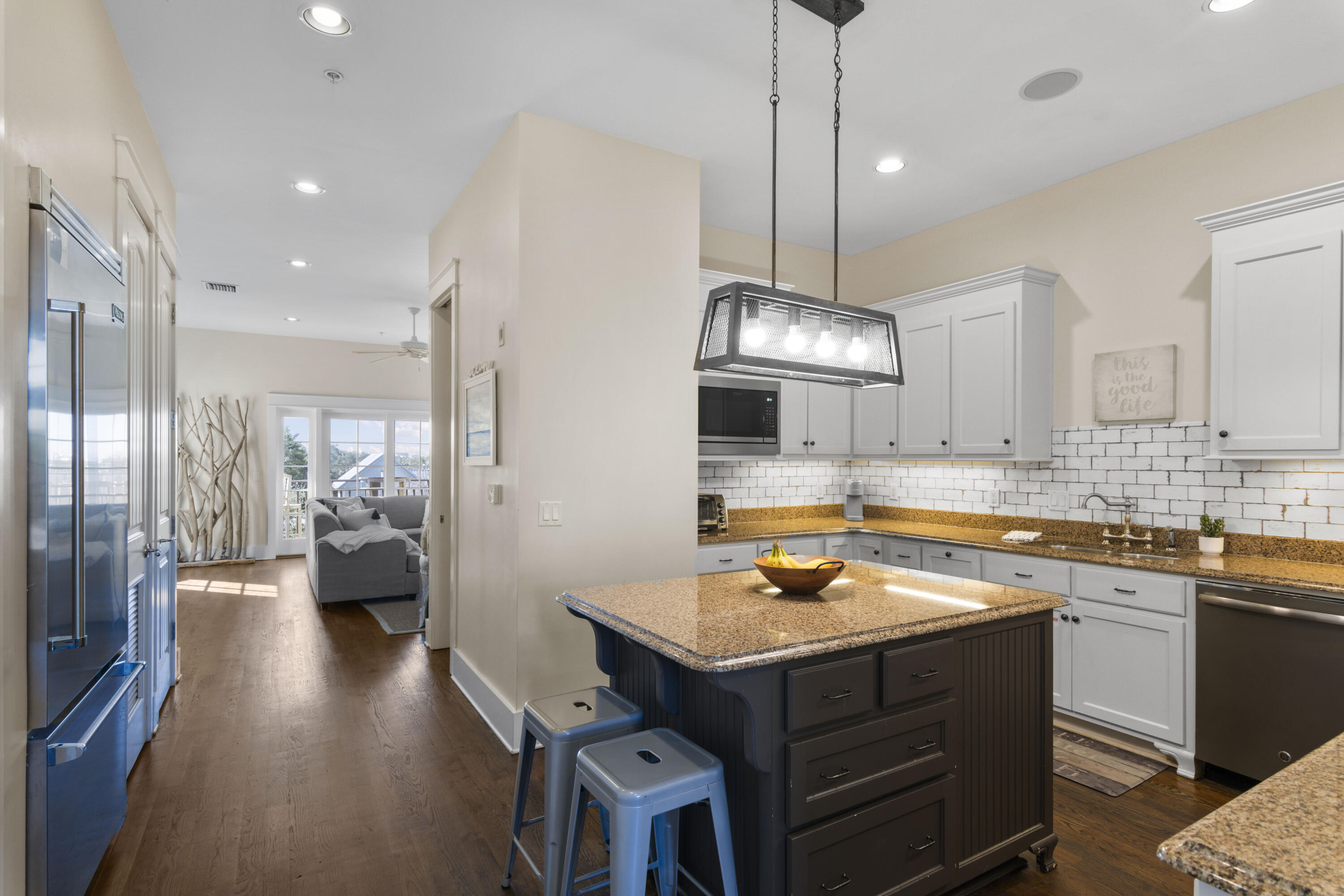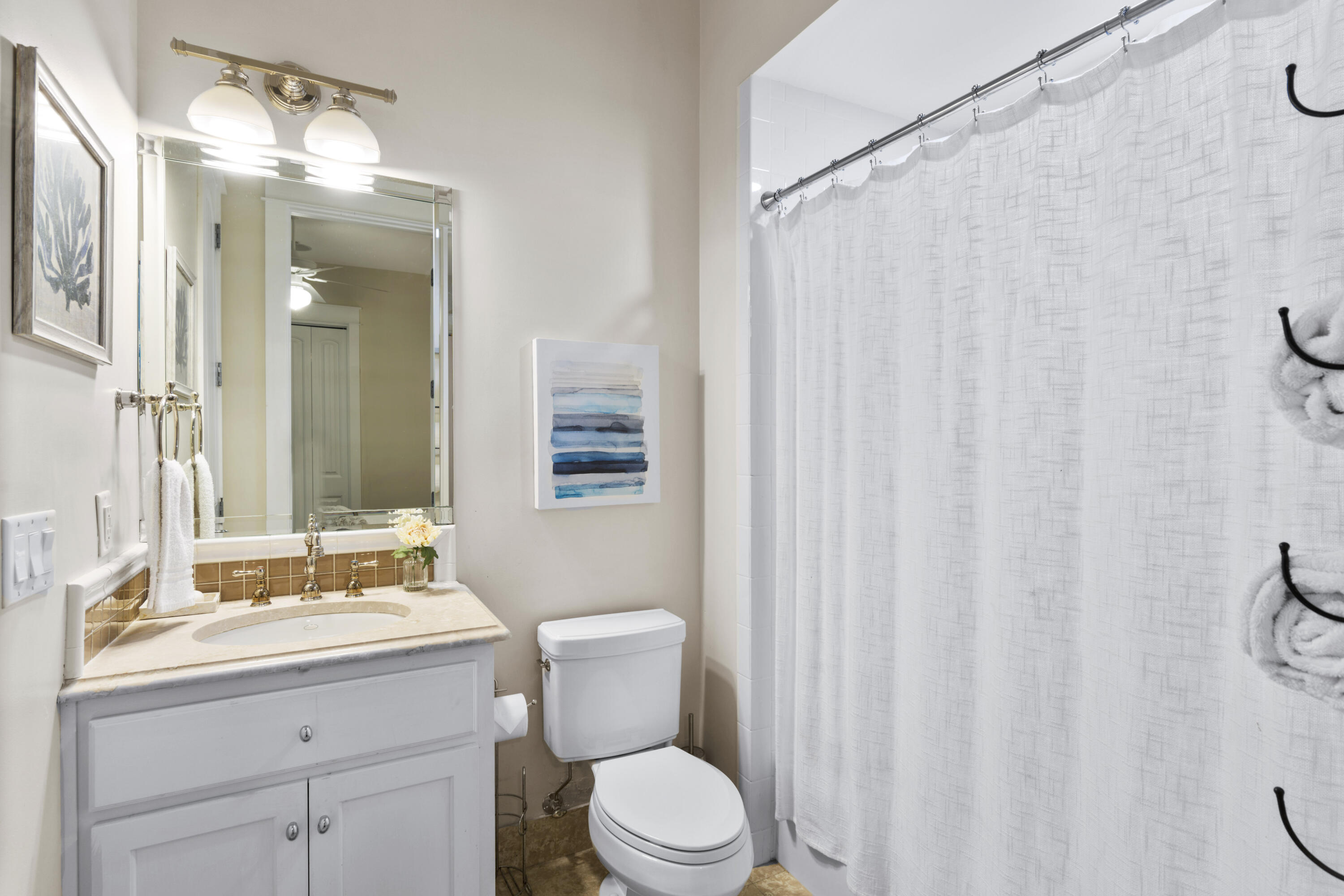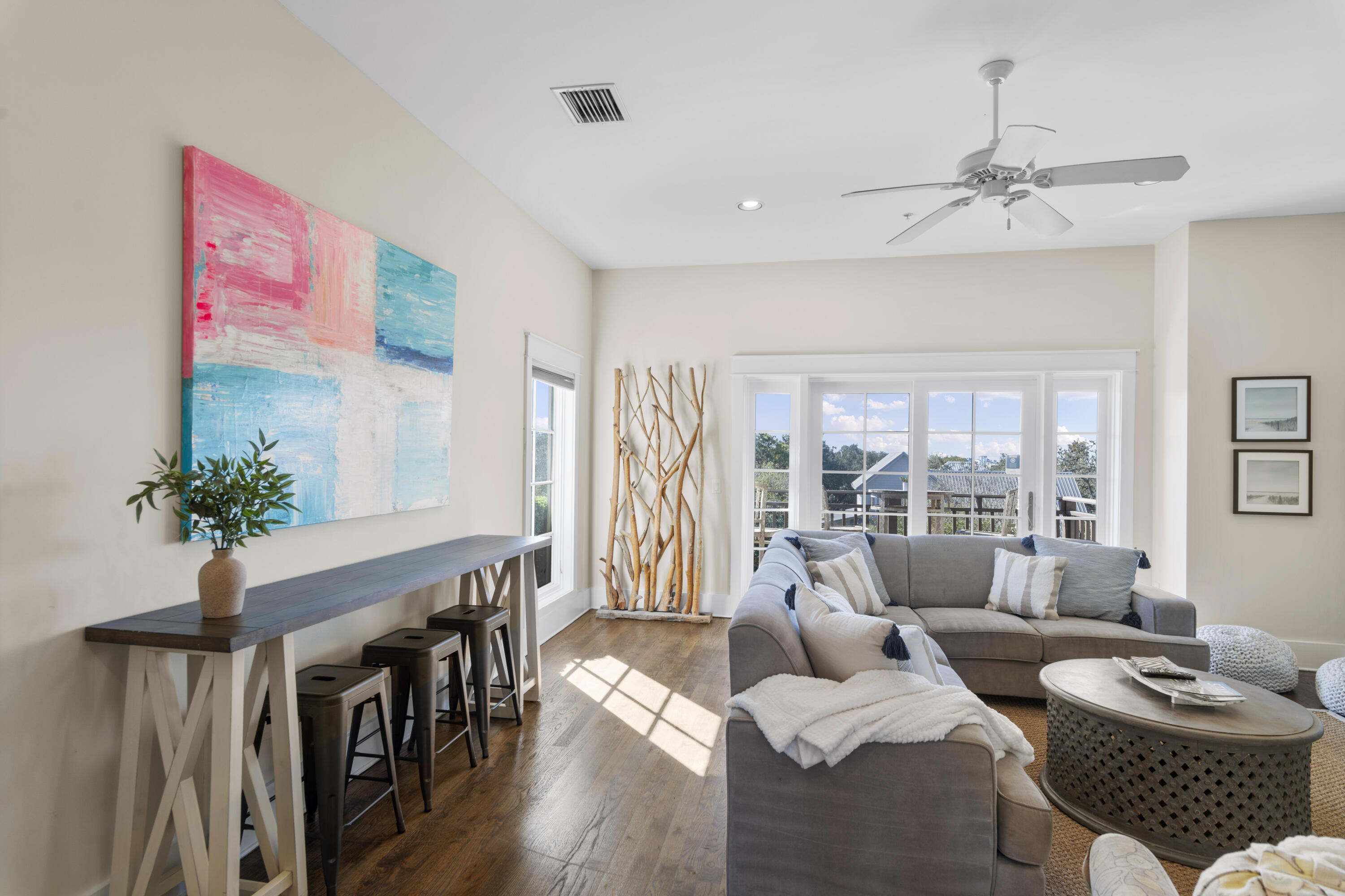 Discover coastal living at its finest in this remarkable two-story condo, perfectly situated in the heart of Seagrove Beach. With 2 bedrooms, 2.5 bathrooms, and upscale finishes throughout, this residence is an exceptional find and would make a perfect primary home, vacation getaway, or investment property. Enjoy stunning views from multiple outdoor spaces, including a private balcony off the primary bedroom on the first level and a large balcony off the living area on the second level showcasing beautiful vistas of the Gulf, Eastern Lake, and vibrant sunsets. Located less than a mile from two beach accesses: Walton Dunes and Eastern Lake, and within half a mile from Eastern Lake Boat Ramp, this condo is perfectly positioned for 30A's greatest outdoor adventures! Step inside to find travertine tile on the first level and hardwood floors upstairs, complemented by soaring 10' ceilings. You are welcomed into the large foyer spacious enough for twin bunks maximizing the sleep capacity. The first level consists of both bedrooms, 2 full bathrooms, and laundry closet with full-size washer & dryer for added convenience. The primary bathroom features a walk-in travertine tile shower with glass door while the guest bathroom offers a shower/tub combo with subway tile surround for those who enjoy a relaxing soak. The guest bathroom can be accessed directly from the guest bedroom and the hallway. The owner's closet located off the foyer is decent in size and keeps your personal valuables and beach gear secure.