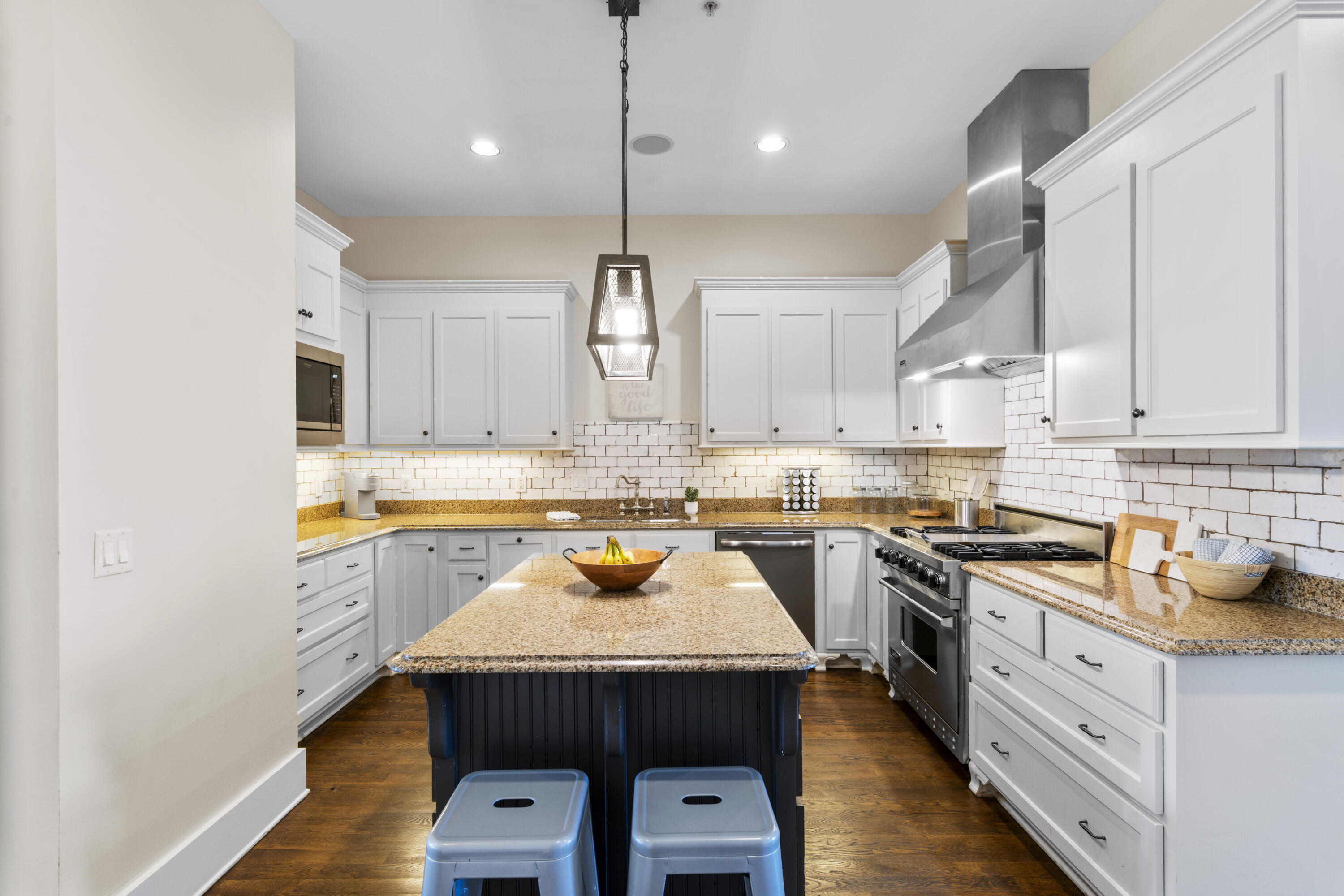 Upstairs the gourmet kitchen boasts granite countertops, antique subway tile backsplash, under-cabinet lighting, a large pantry, stainless steel appliances, and top-of-the-line Viking fridge and 4-burner gas range with griddle and range hood. The expansive living and dining areas are quintessential for hosting a large gathering of family and friends. A lovely Juliet balcony off the dining area adds to the condo's charm. This room could also easily convert into another bedroom or a great custom bunk room or flex space.