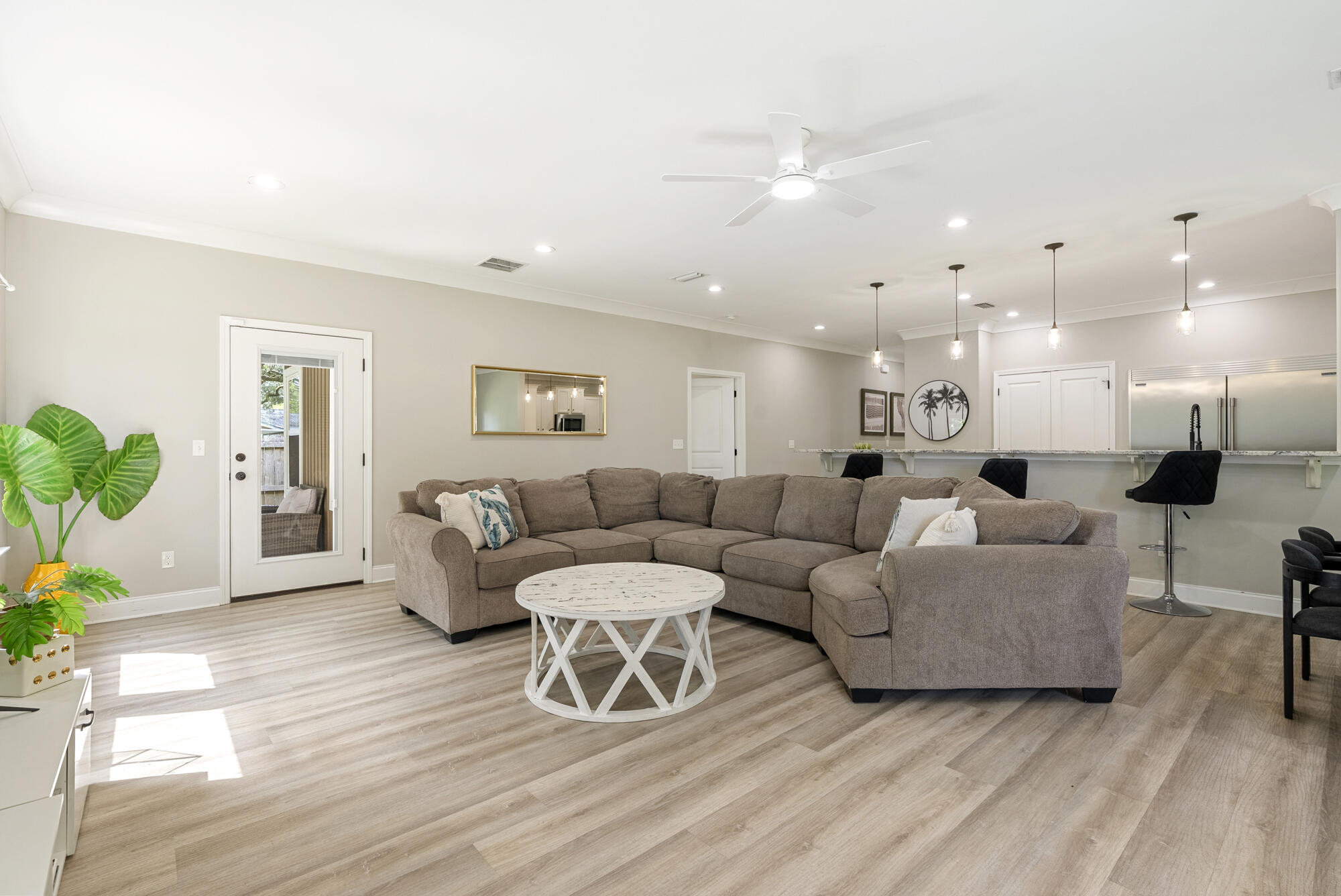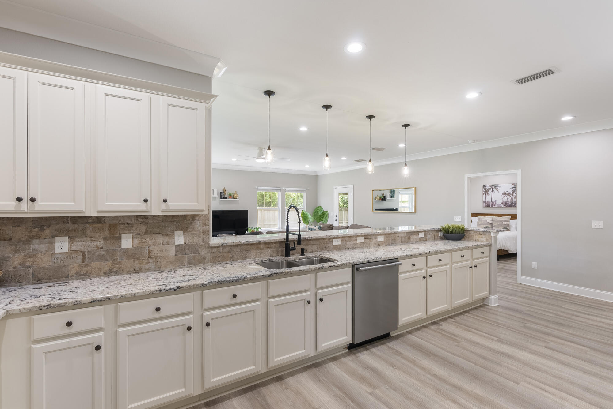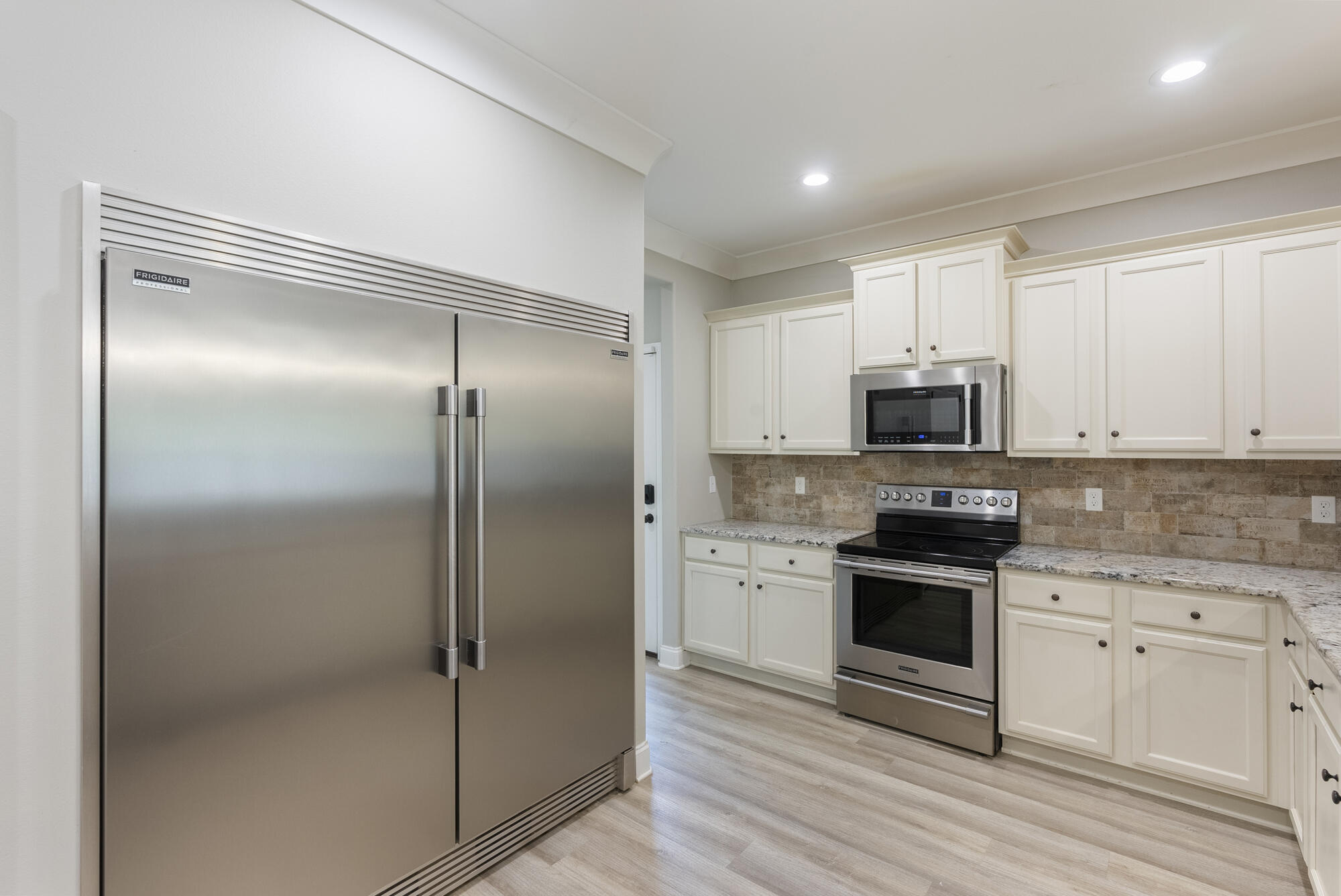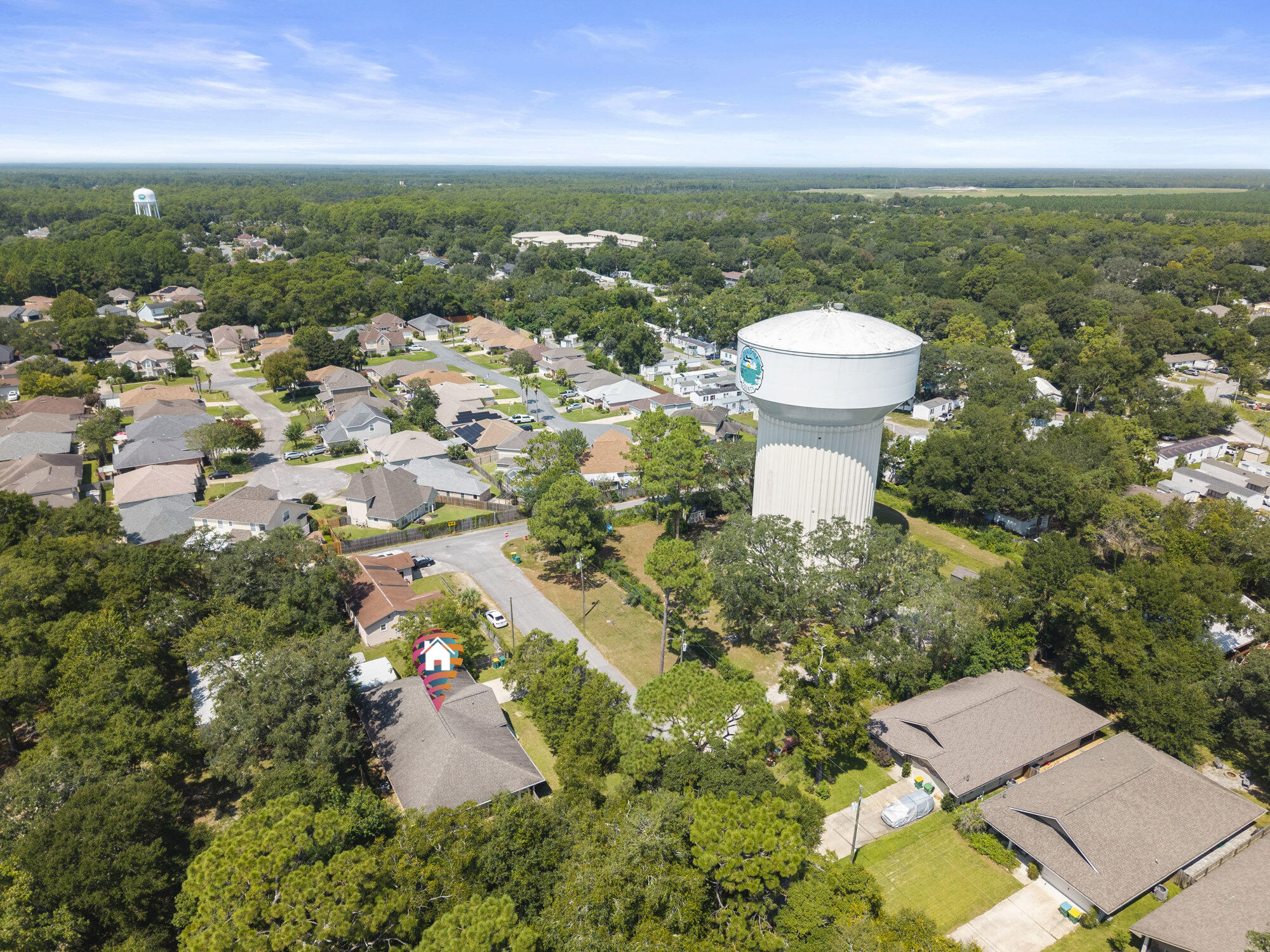 Move-in ready 4 bed / 3 bath -- just minutes to Eglin AFB, Hurlburt Field, shopping, and the beaches. A bright, open-concept kitchen/living space anchors the home with an oversized breakfast bar, solid-surface counters, french door pantry, and a built-in, oversized Frigidaire Professional Series refrigerator paired with matching stainless steel appliances.The thoughtful split plan offers a private primary suite (double vanity, soaking tub, separate shower, two separate walk-in closets), a guest bedroom with its own full bath in hallway, and two additional bedrooms share a Jack-and-Jill bath. Throughout the home you'll find all-new LED light fixtures for efficient, crisp lighting. Outside, enjoy a fully fenced backyard with covered patio for easy indoor-outdoor living. The two-car garage features a non-slip coated floor and extra driveway parking. Low-maintenance finishes, ample storage, and a central location make daily life simpleclose to bases, schools, restaurants, and the beaches.