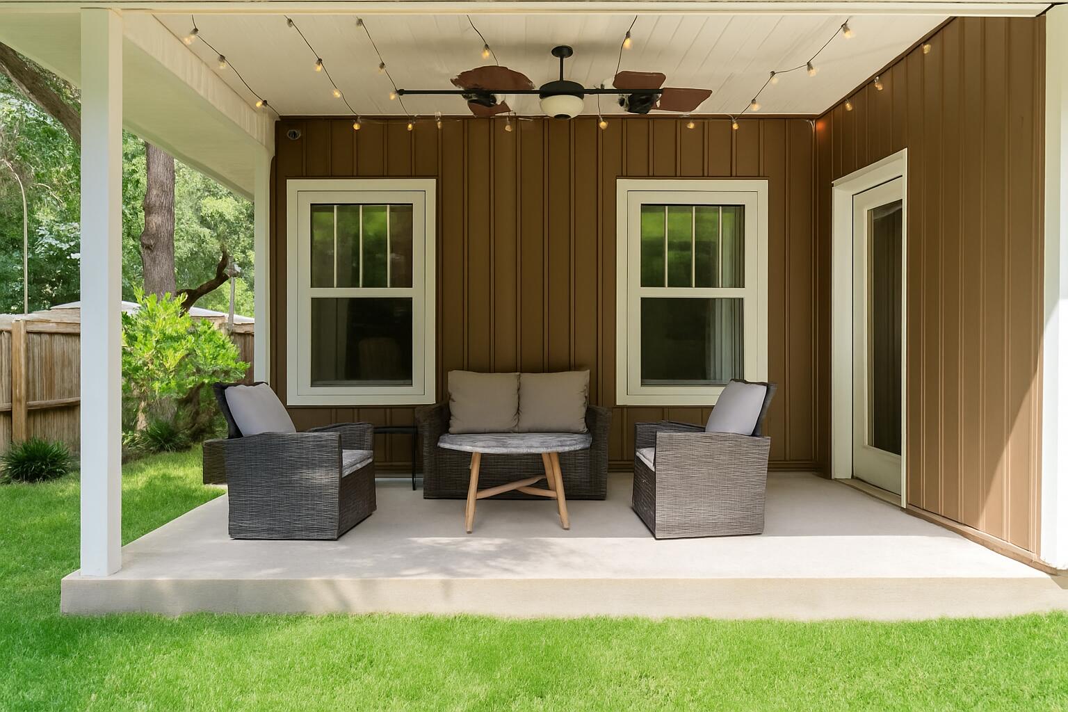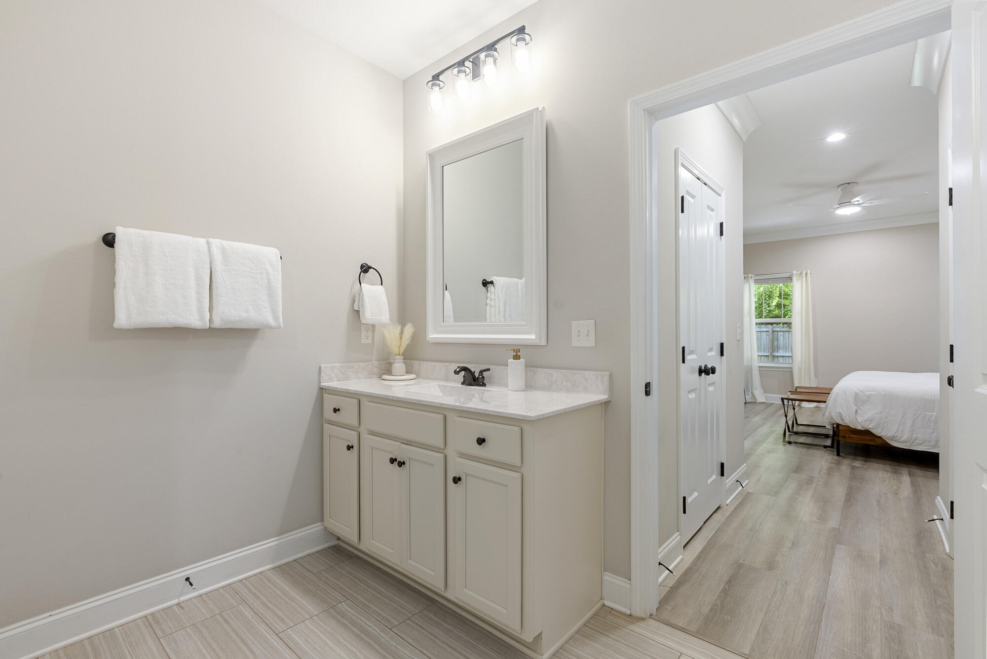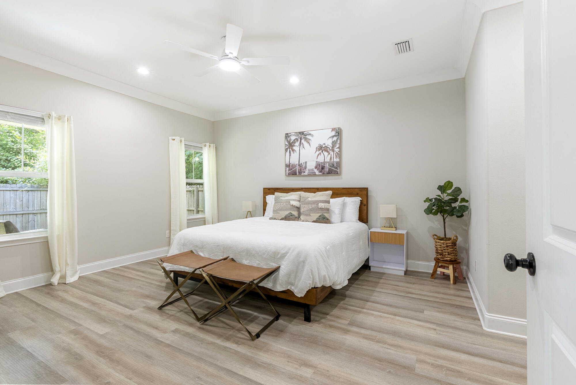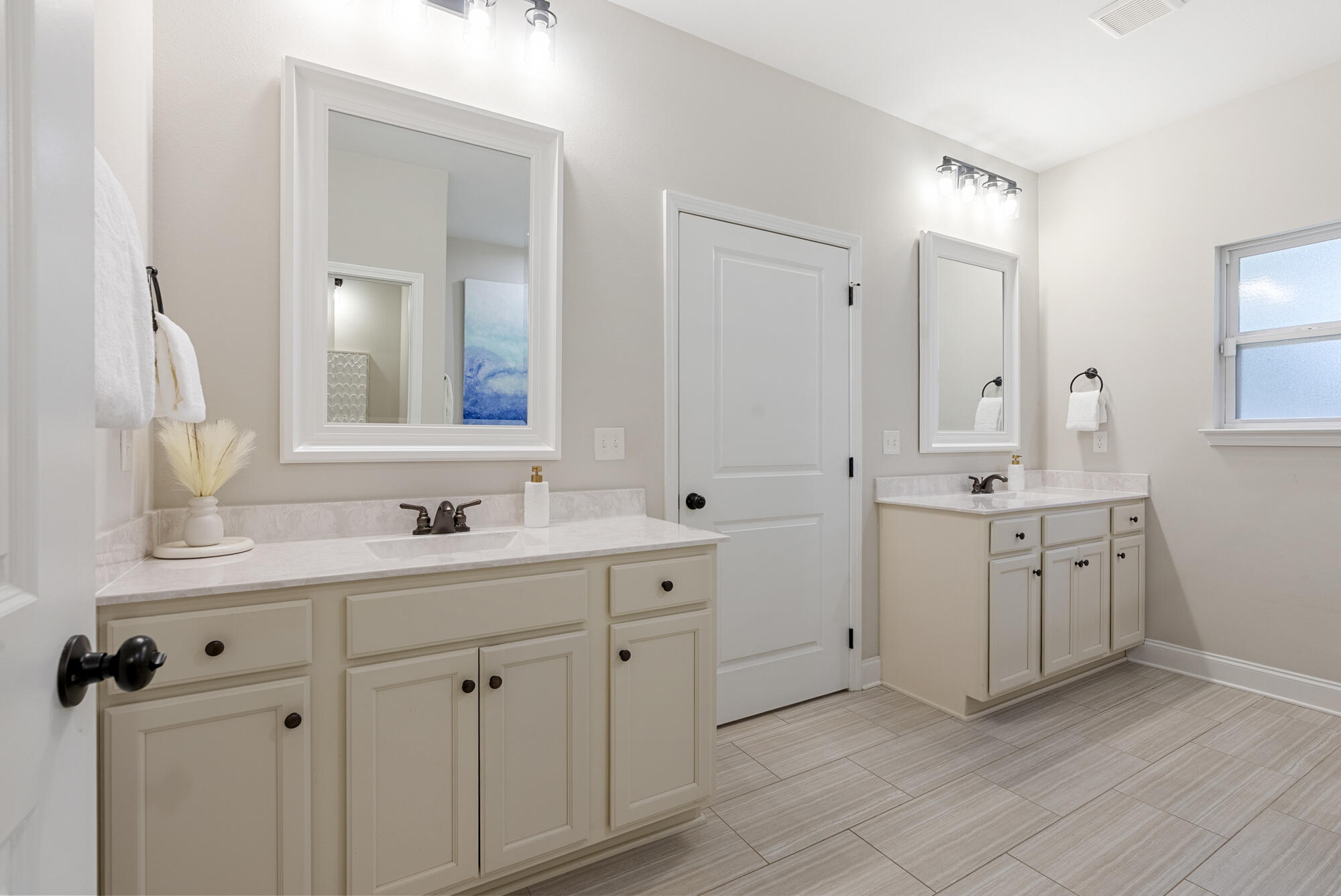 Move-in ready 4 bed / 3 bath -- just minutes to Eglin AFB, Hurlburt Field, shopping, and the beaches. A bright, open-concept kitchen/living space anchors the home with an oversized breakfast bar, solid-surface counters, french door pantry, and a built-in, oversized Frigidaire Professional Series refrigerator paired with matching stainless steel appliances.The thoughtful split plan offers a private primary suite (double vanity, soaking tub, separate shower, two separate walk-in closets), a guest bedroom with its own full bath in hallway, and two additional bedrooms share a Jack-and-Jill bath. Throughout the home you'll find all-new LED light fixtures for efficient, crisp lighting. Outside, enjoy a fully fenced backyard with covered patio for easy indoor-outdoor living. The two-car garage features a non-slip coated floor and extra driveway parking. Low-maintenance finishes, ample storage, and a central location make daily life simpleclose to bases, schools, restaurants, and the beaches.