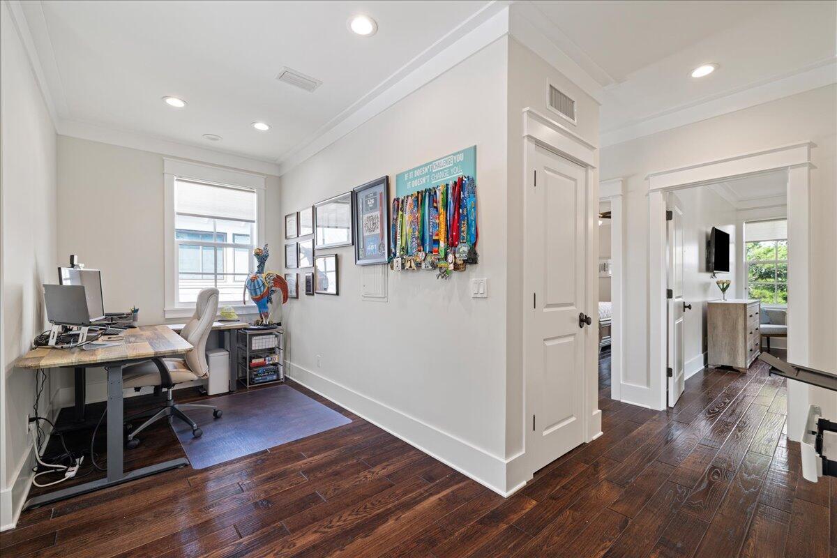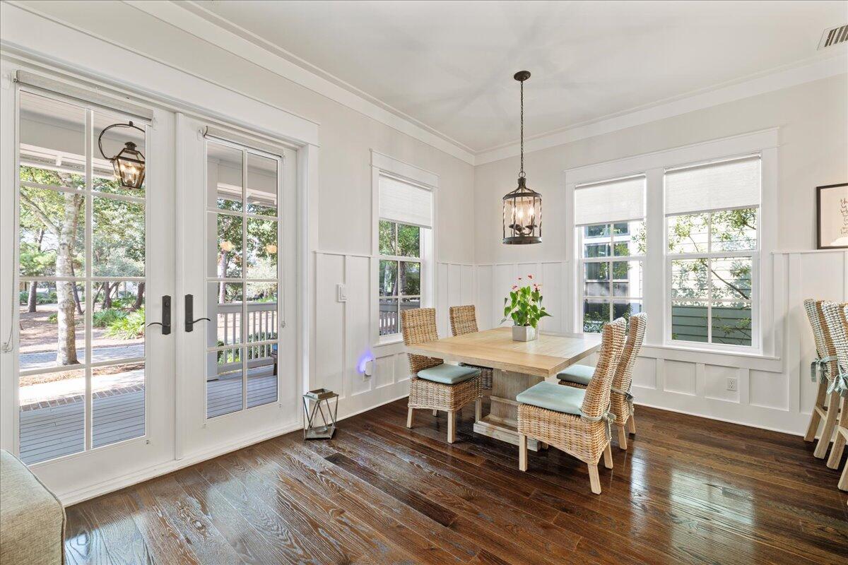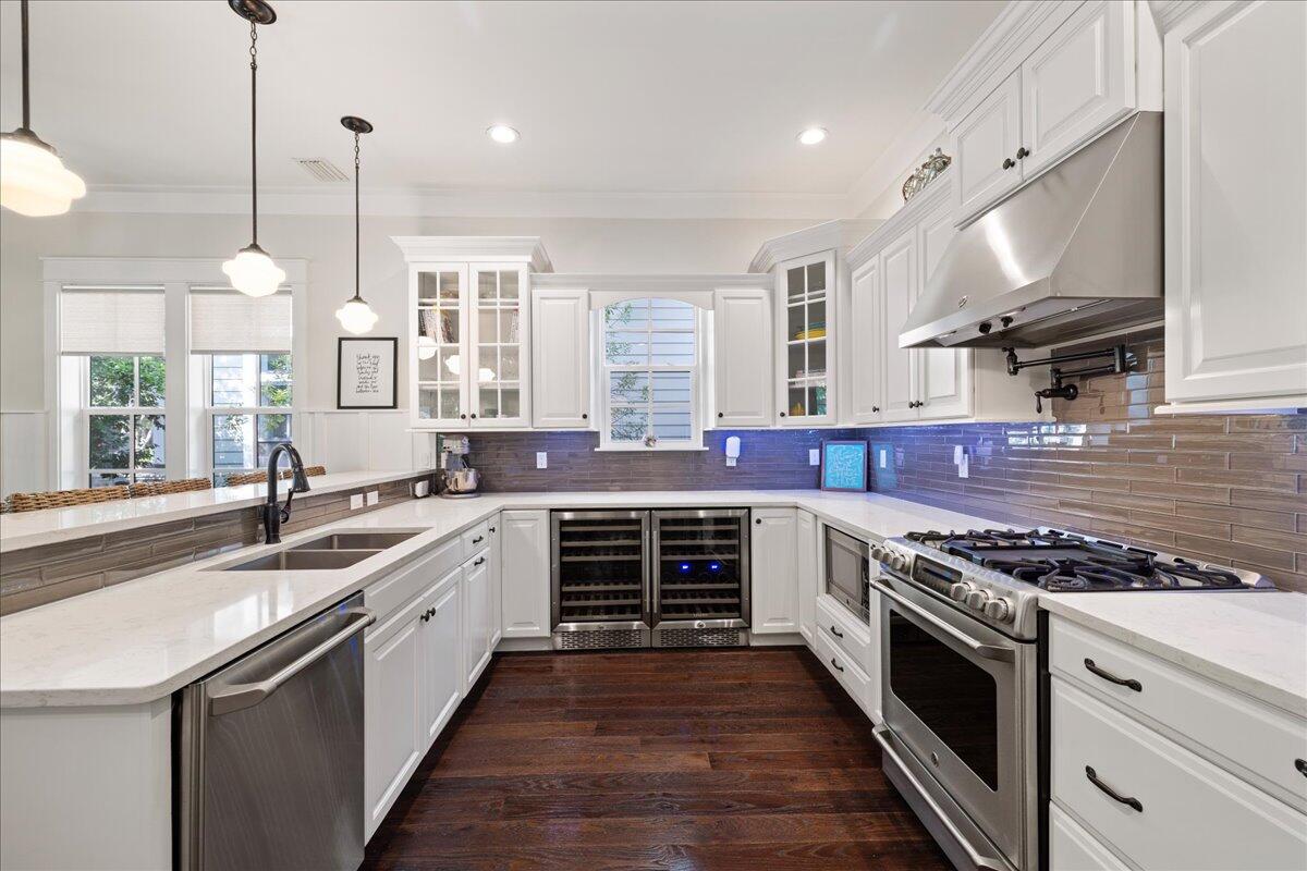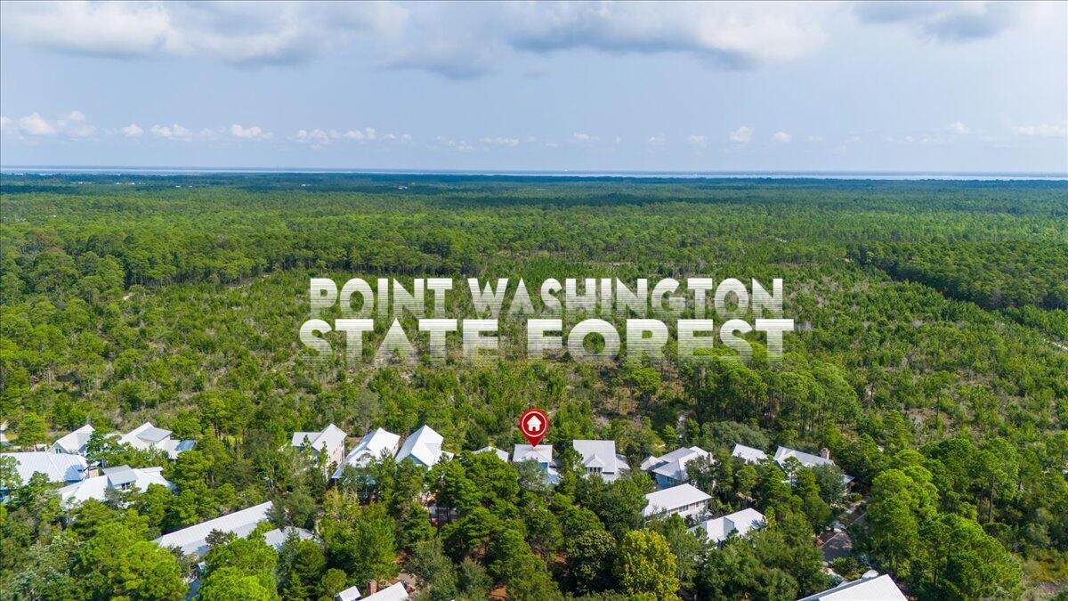 Backing beautiful Point Washington State Forest, with +14 miles of trails, and facing one of Forest Lakes' natural preserves, this Coastal Craftsman-style home offers 3 Bedrooms, 2.5 Baths and an extra Office/Flex Space. Surrounded by nature, and loaded with luxury amenities, enjoy quartz counters, two wine fridges, and a gas stove with quiet range hood. The first floor Master Suite hosts a huge custom walk-in closet with wood shelves, built-in shoe storage, and a spa-style shower. Hardwood and tile floors span throughout. The open living room features a designer coral-stone, gas hearth with living-edge sinker-cypress mantle. All closets have custom wood shelving. Forest Lakes is one of west 30A's most charming communities, 'where parks, lakes, and green & natural spaces are the rule.' The home is equipped with an HVAC split-system with 3 thermostat zones, allowing efficient temperature control and a whole-home dehumidifier. There is spray foam insulation in the exterior walls, attic, and under the house for efficient living.