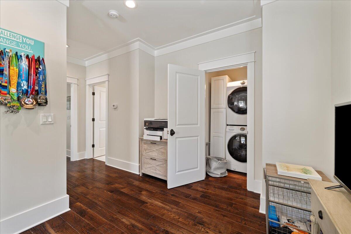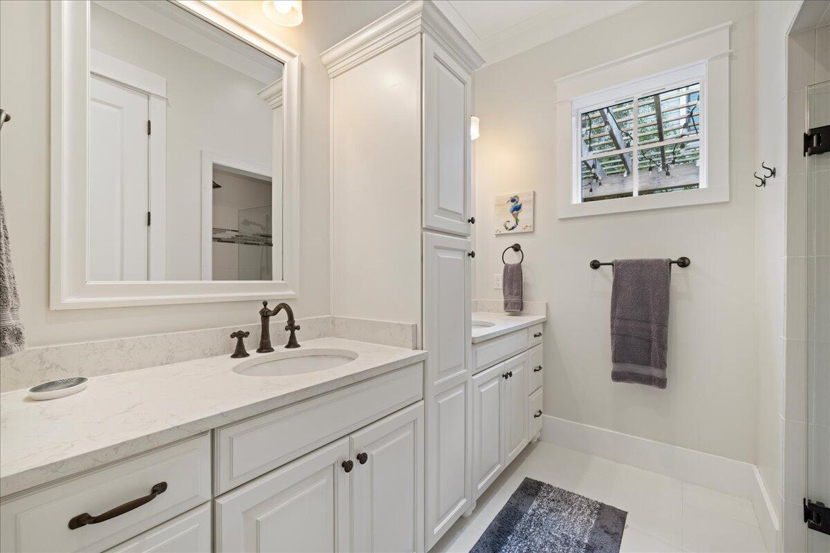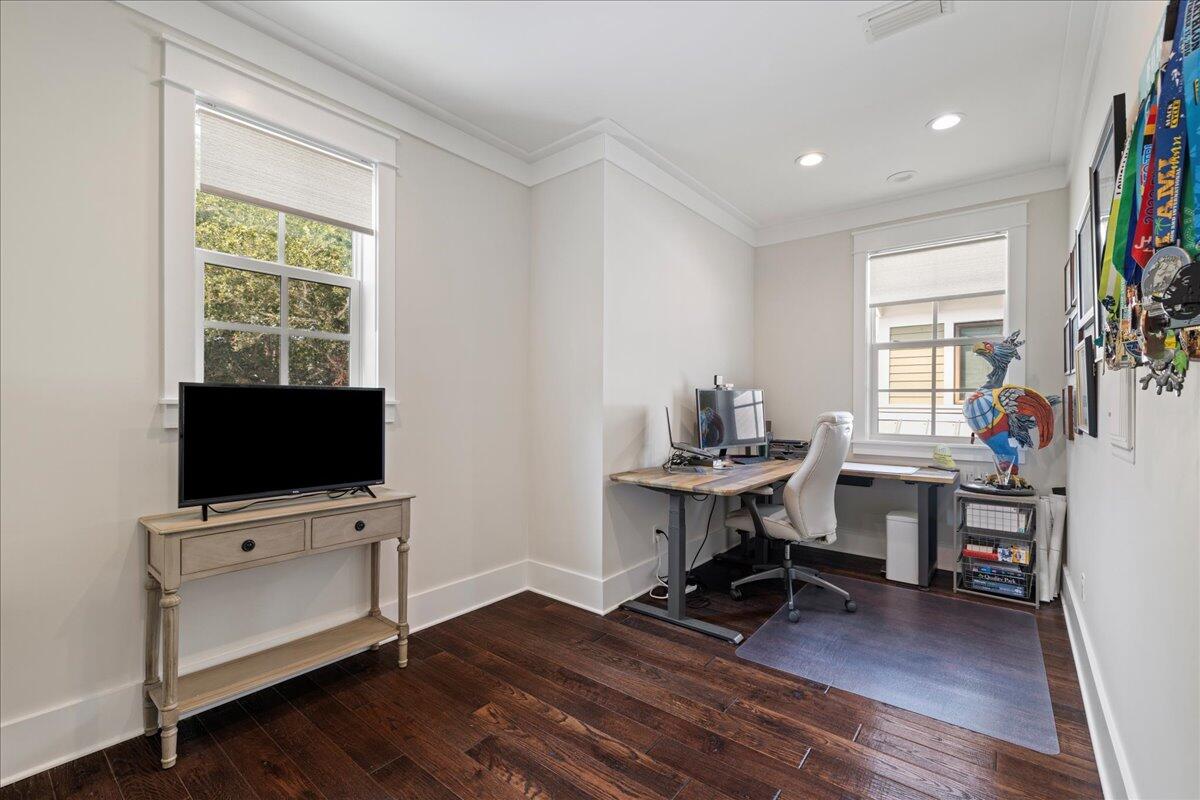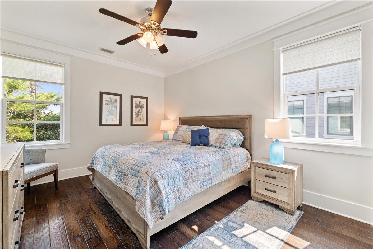 Backing beautiful Point Washington State Forest, with +14 miles of trails, and facing one of Forest Lakes' natural preserves, this Coastal Craftsman-style home offers 3 Bedrooms, 2.5 Baths and an extra Office/Flex Space. Surrounded by nature, and loaded with luxury amenities, enjoy quartz counters, two wine fridges, and a gas stove with quiet range hood. The first floor Master Suite hosts a huge custom walk-in closet with wood shelves, built-in shoe storage, and a spa-style shower. Hardwood and tile floors span throughout. The open living room features a designer coral-stone, gas hearth with living-edge sinker-cypress mantle. All closets have custom wood shelving. Forest Lakes is one of west 30A's most charming communities, 'where parks, lakes, and green & natural spaces are the rule.' The home is equipped with an HVAC split-system with 3 thermostat zones, allowing efficient temperature control and a whole-home dehumidifier. There is spray foam insulation in the exterior walls, attic, and under the house for efficient living.
