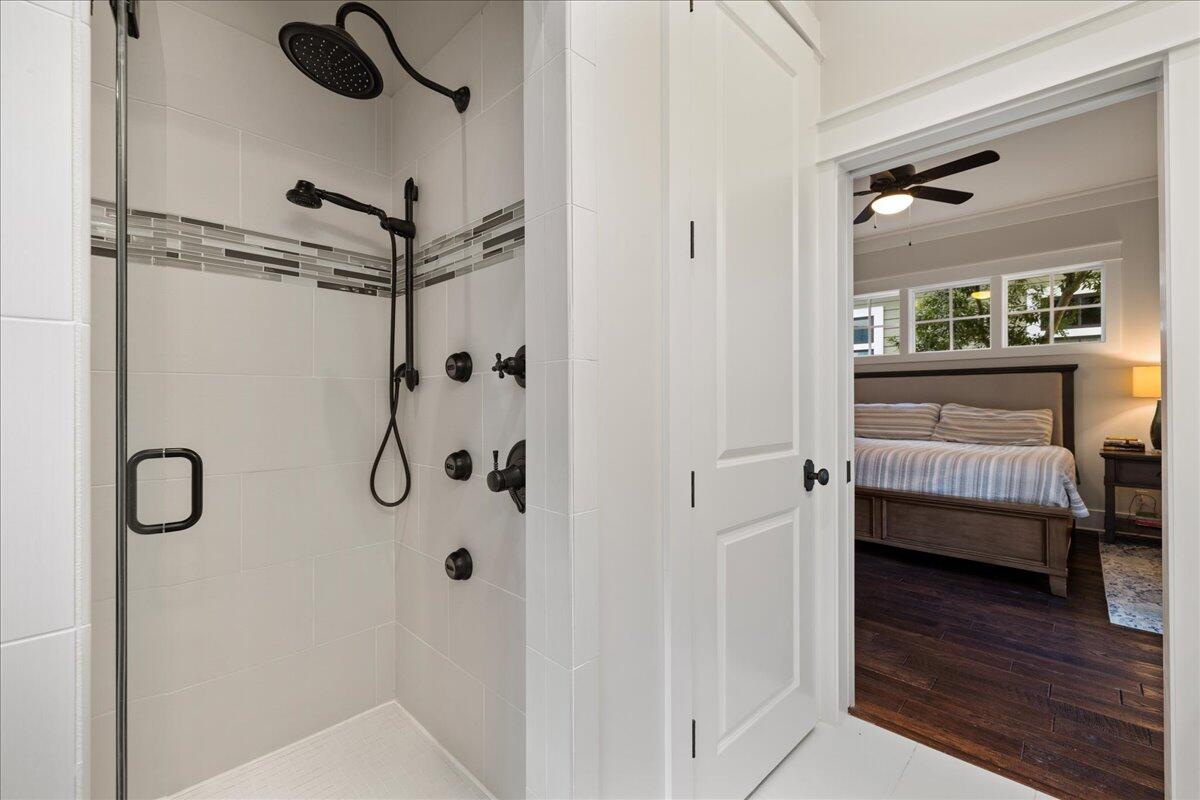 After exploring nearby trails, retreat to the upstairs Jacuzzi-style soaking tub for ultimate relaxation. The first-floor primary suite offers a spa-style shower with a "H2Okinetic" Body Spray system, delivering a soothing, immersive experience that rivals any high-end resort.