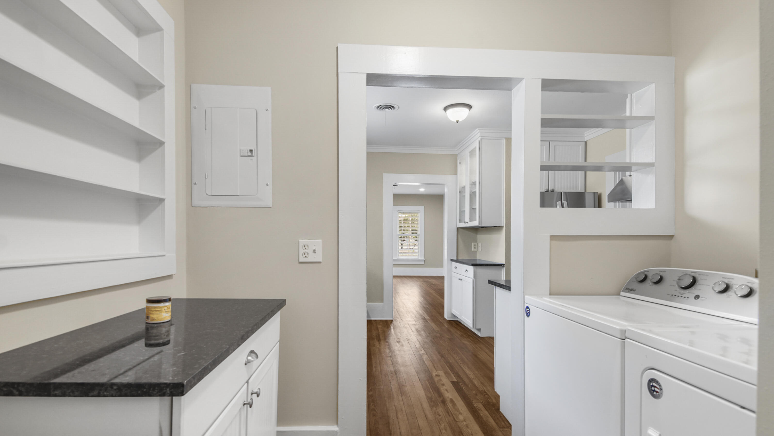 INTERIOR | Built-In Bookcases,Fireplace,Floor Hardwood,Washer/Dryer Hookup |