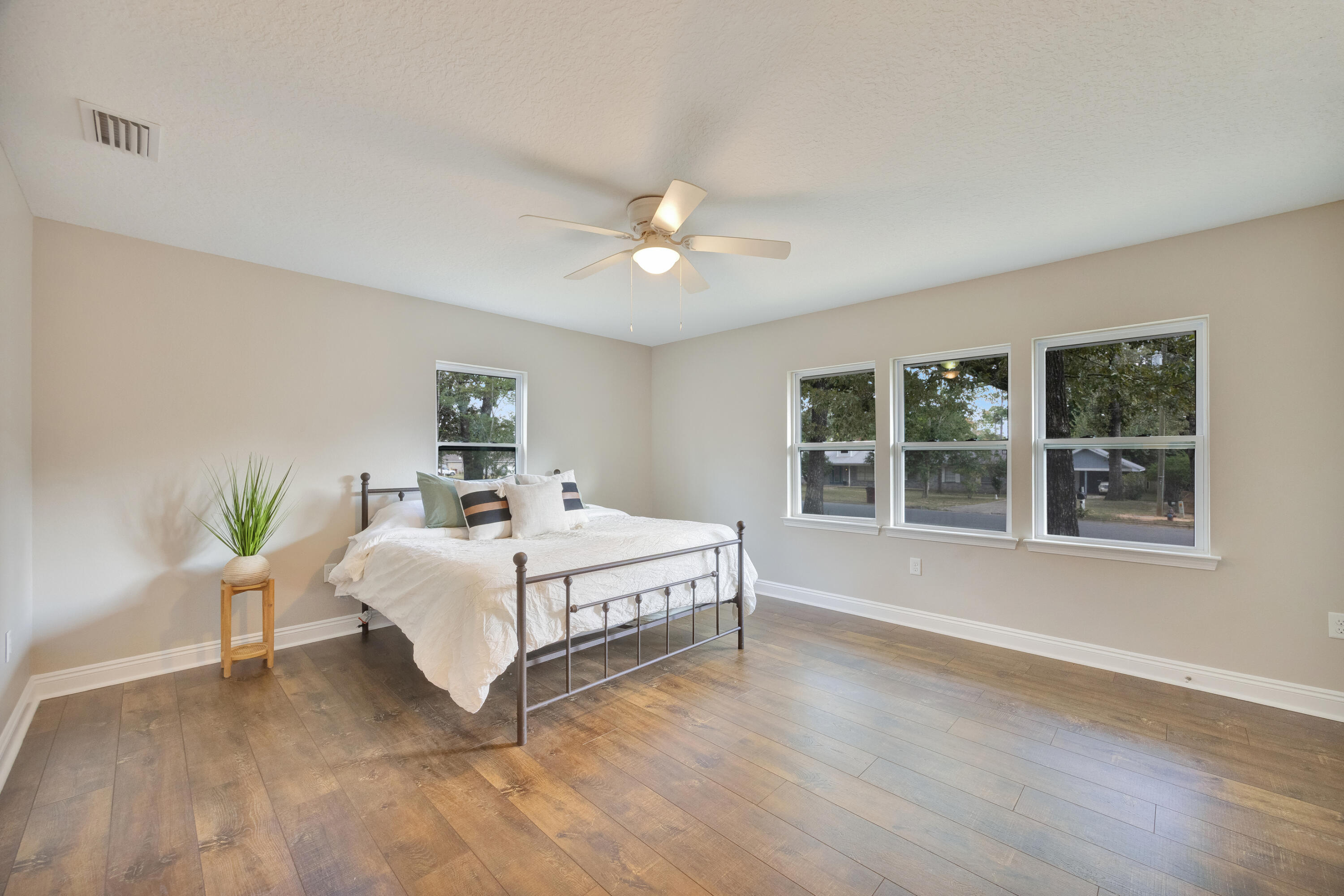This stunning home was taken down to the studs and rebuilt with high-quality upgrades throughout in 2022. Renovations include a new roof, windows, HVAC system, exterior paint, sod, garage doors, sheetrock. Inside, you'll find white shaker-style cabinets, granite countertops, luxury vinyl plank flooring, and a fiberglass soaking tub with a granite shower in the master suite.A covered sunroom (not counted in the 2,400+ sq. ft. of heated and cooled space) adds extra room for entertaining or relaxing. In 2025, the home received fresh paint and new flooring, ensuring it feels brand new. The layout features both a formal living room and a cozy family room, along with a spa-like master bath offering a granite walk-in shower, tiled floors, and a garden tub retreat. The oversized garage with two doors provides plenty of room for vehicles, storage, or even a workshop. Home sits on 0.63-acre lot with mature trees, native azaleas, and flowering bushes. The backyard is fully privacy fenced, perfect for pets, kids, or enjoying your own outdoor oasis.