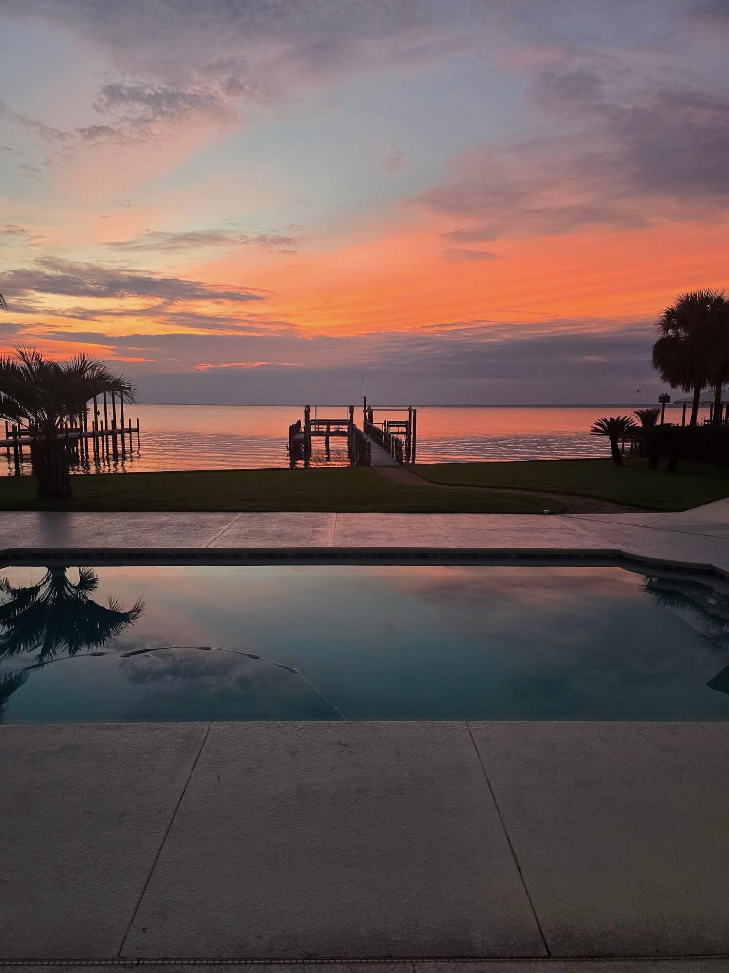 Experience luxury living on nearly an acre of prime bayfront property. This stunning estate features all new windows and doors, fresh interior and exterior paint, and a beautifully renovated kitchen designed for both style and function.Inside, a grand foyer opens to formal living and dining spaces, complemented by gleaming hardwood floors, a butler's pantry, and thoughtful details throughout. The home also boasts a private theater, spacious living areas, and double covered porches with sweeping water views.Outdoors, enjoy resort-style amenities including a sparkling pool with expansive patio, outdoor kitchen and bar, and a private dock with boat lift--perfect for embracing the coastal lifestyle.The gated drive leads to lush landscaped grounds with citrus trees and palms.