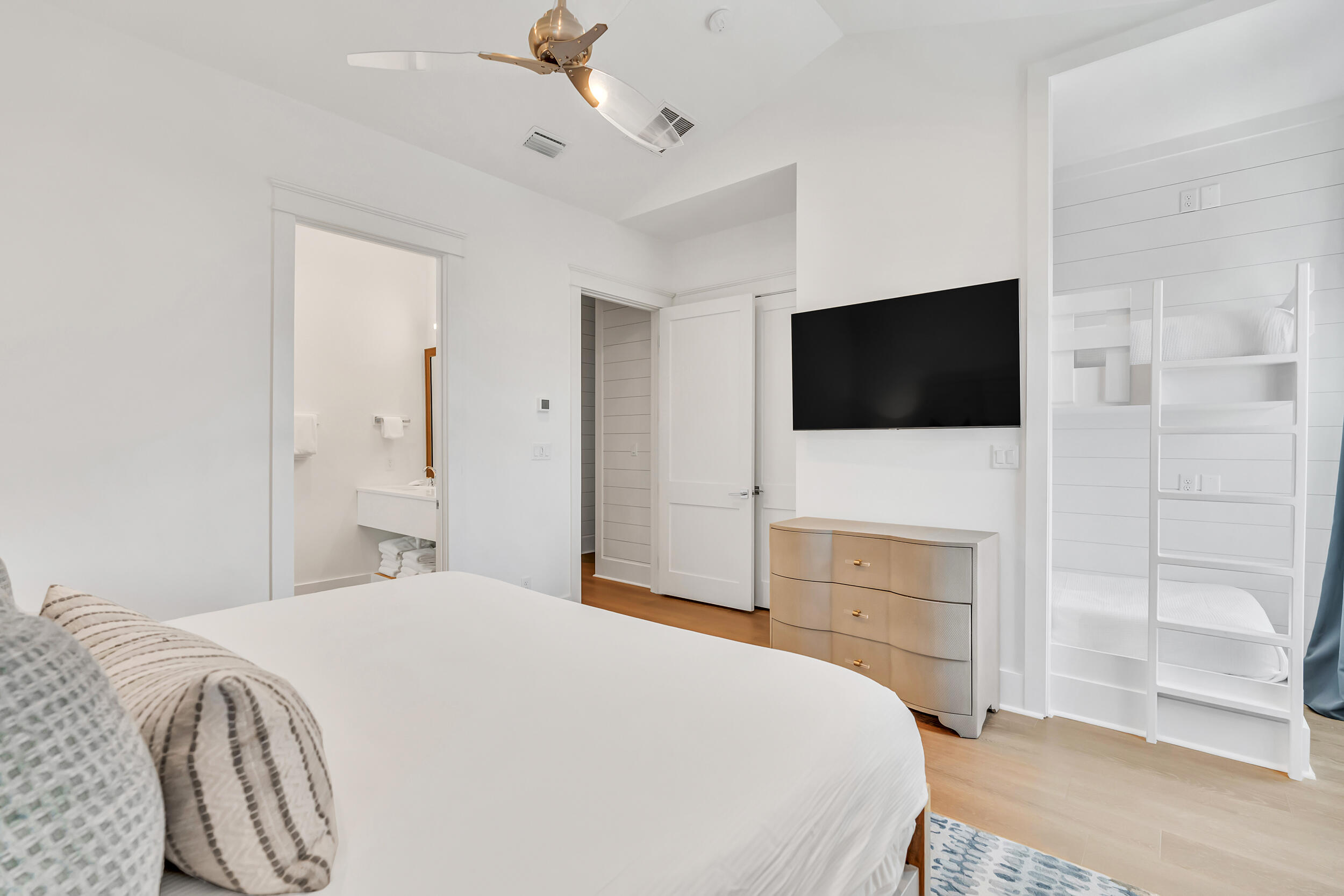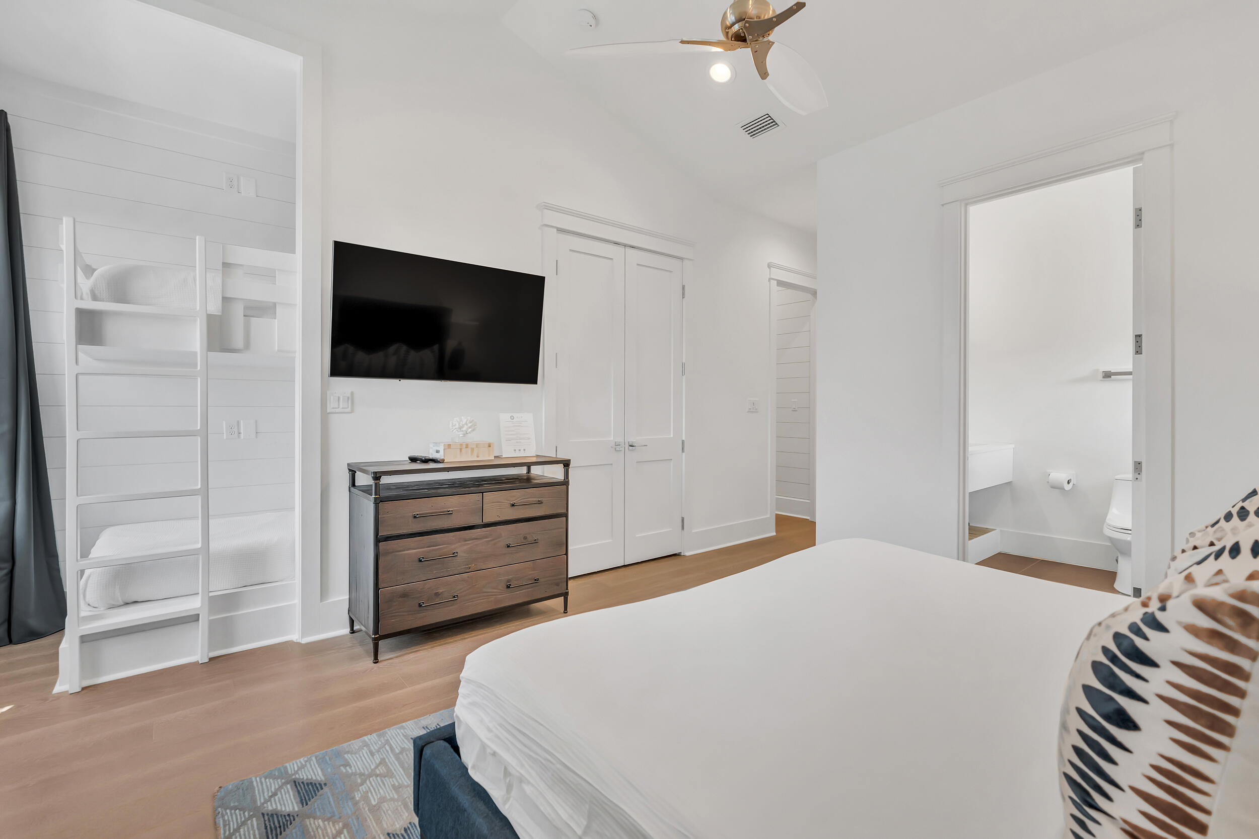 Welcome to 52 Sevens Palms drive, your dream beachside oasis, perfectly situated in the heart of Inlet Beach, and just a short walk to the sugar-white sands of a stunning public beach. Located near the beautiful community of Rosemary Beach along scenic 30A, this luxurious 7 bedroom, 9 bathroom single-family home offers the ideal blend of elegance, comfort, and coastal charm.From the moment you arrive, you'll be captivated by the home's impeccable craftsmanship and upscale finishes. Inside, an open concept design welcomes you with a spacious living room, a window lined dining area, and a luxury chef's kitchen complete with high end appliances, expansive countertops, and custom cabinetry, perfect for hosting family and friends. Soaring cypress wood ceilings, rich hardwood floors, and timeless shiplap accents create a warm yet sophisticated ambiance throughout. Each of the large bedrooms is designed as a private retreat, featuring walk-in closets and spa-like bathrooms with walk-in showers. Multiple bunk rooms offer flexible sleeping arrangements, ideal for children, guests, or larger groups. The massive dining room is a standout feature, Immaculate for entertaining and accommodating large families.
