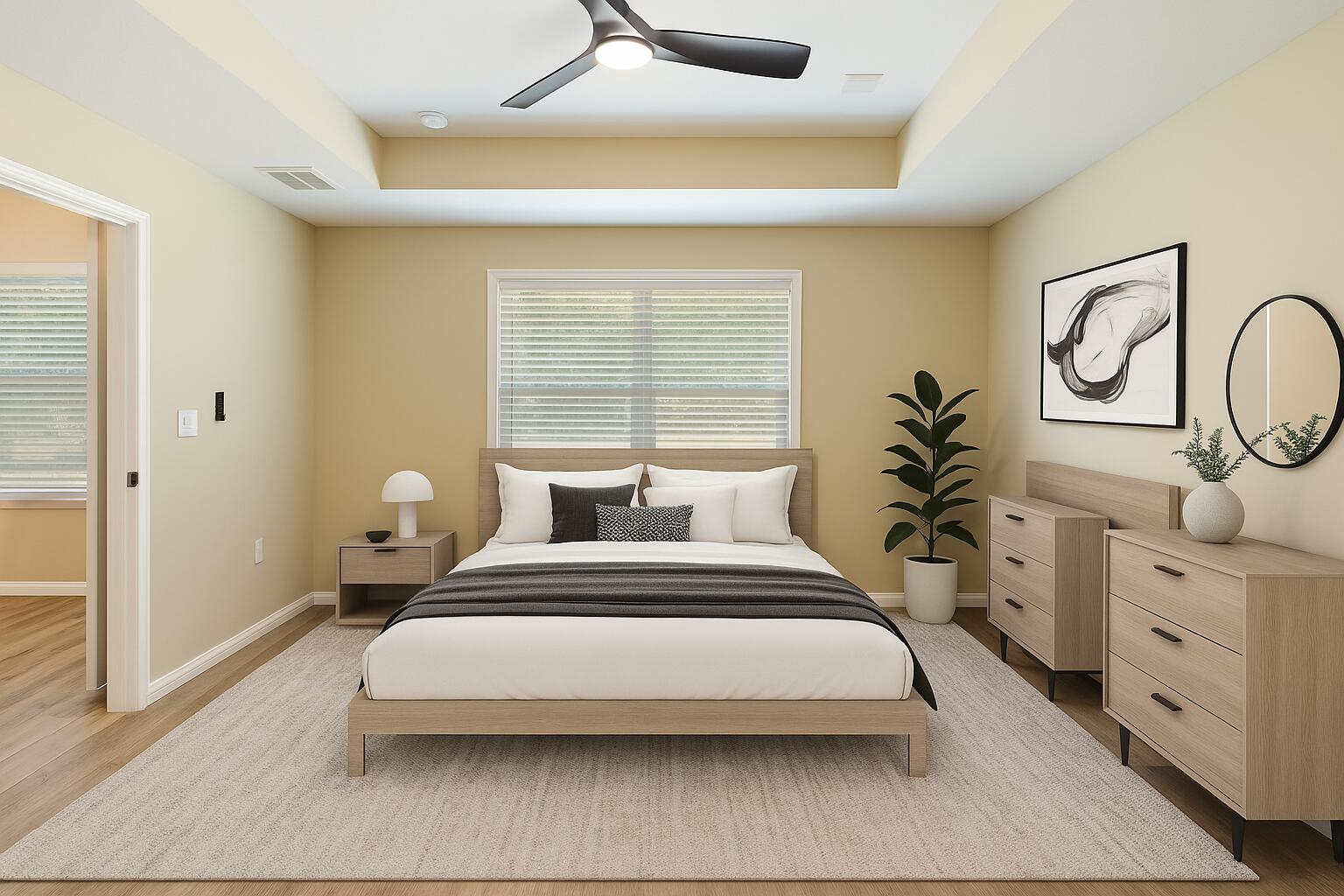 This stunning 4BR/2BA home offers over 1,600 sq ft of living space and is move-in ready! Step inside to an open-concept floor plan featuring luxury vinyl plank flooring, tray ceilings, and a beautifully upgraded kitchen with granite countertops, custom cabinetry, and brushed-gold accents. The spacious living area flows seamlessly to a fully fenced backyard, perfect for outdoor entertaining. Best of all, this home has NO HOA! Located just steps from Twin Hills Park, you'll love having access to walking trails, sports fields, playgrounds, and community events right around the corner. Additional highlights include modern lighting, stainless steel appliances, and a two-car garage.