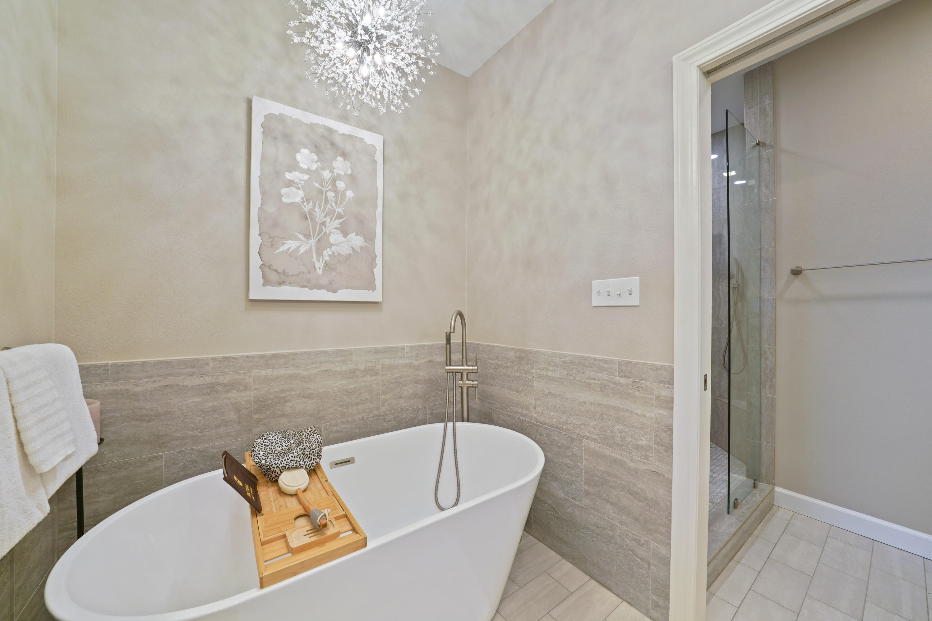 THE KITCHEN IS A CHEF'S DREAM, FEATURING PRISTINE WHITE CABINETRY, NEW WHITE COUNTERTOPS, A STYLISH TILE BACKSPLASH, AND A FULL SUITE OF STAINLESS-STEEL APPLIANCES INCLUDING A GAS COOKTOP, DOUBLE OVENS, AND A NEWLY INSTALLED DISHWASHER, REFRIGERATOR, AND MICROWAVE. THE MASTER SUITE IS A HAVEN OF TRANQUILITY, OFFERING DIRECT ACCESS TO THE SCREENED PORCH AND VIEWS OF THE LAKE AND SUNSETS. IT COMES COMPLETE WITH AMPLE CLOSET SPACE AND AN EN-SUITE BATHROOM FEATURING A DOUBLE VANITY, NEW WALK-IN SHOWER, AND A LARGE JETTED GARDEN TUB.