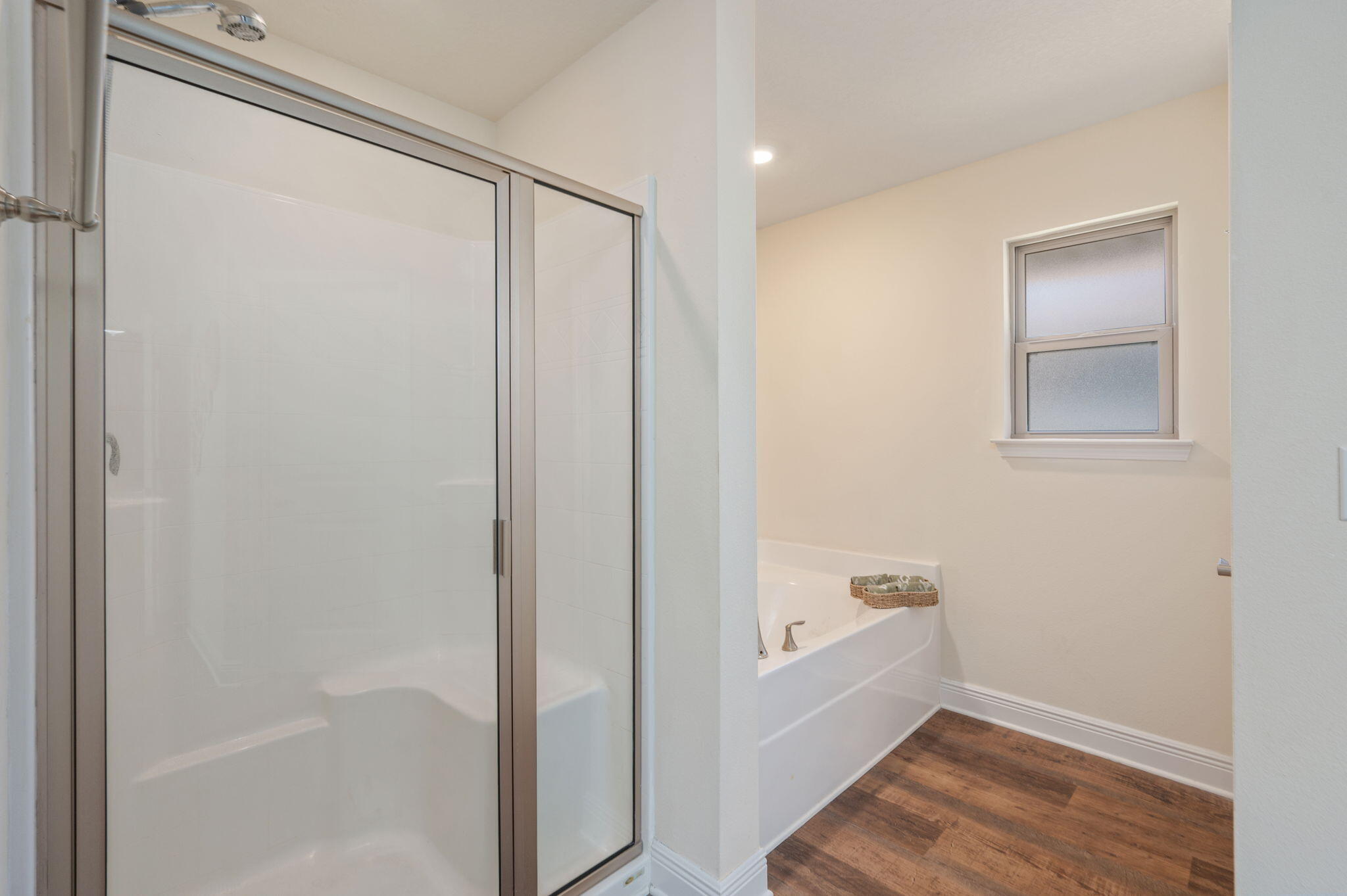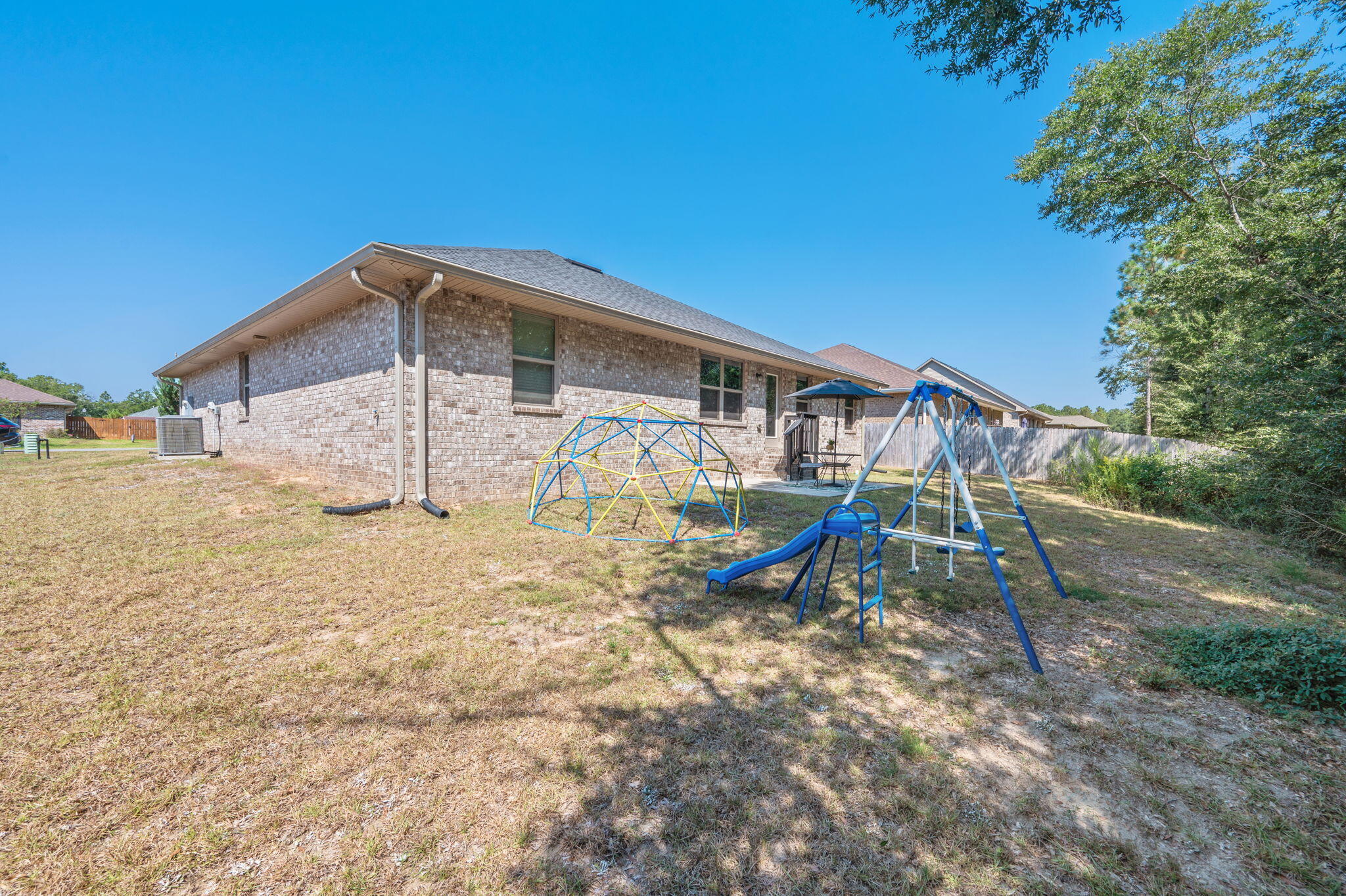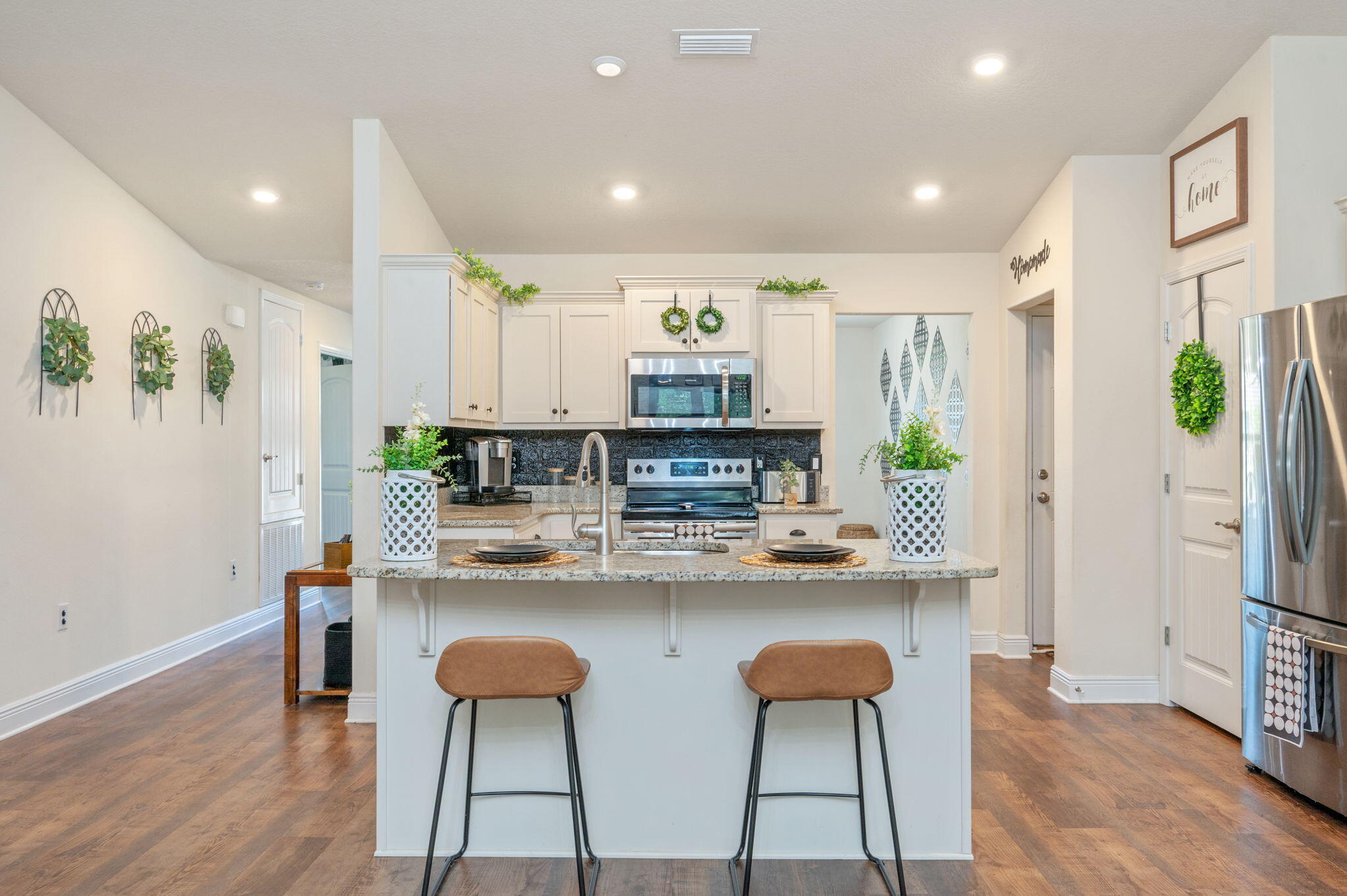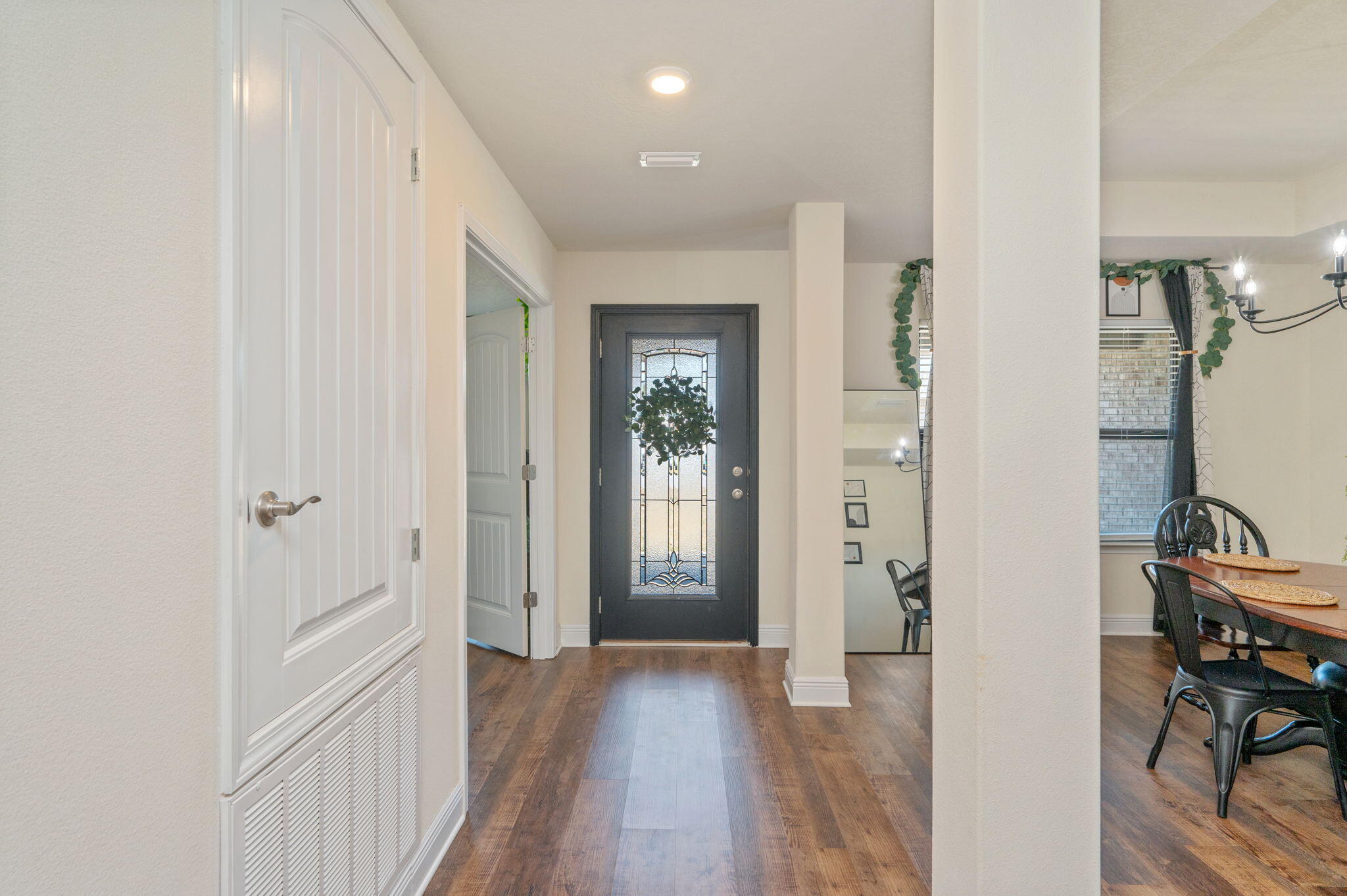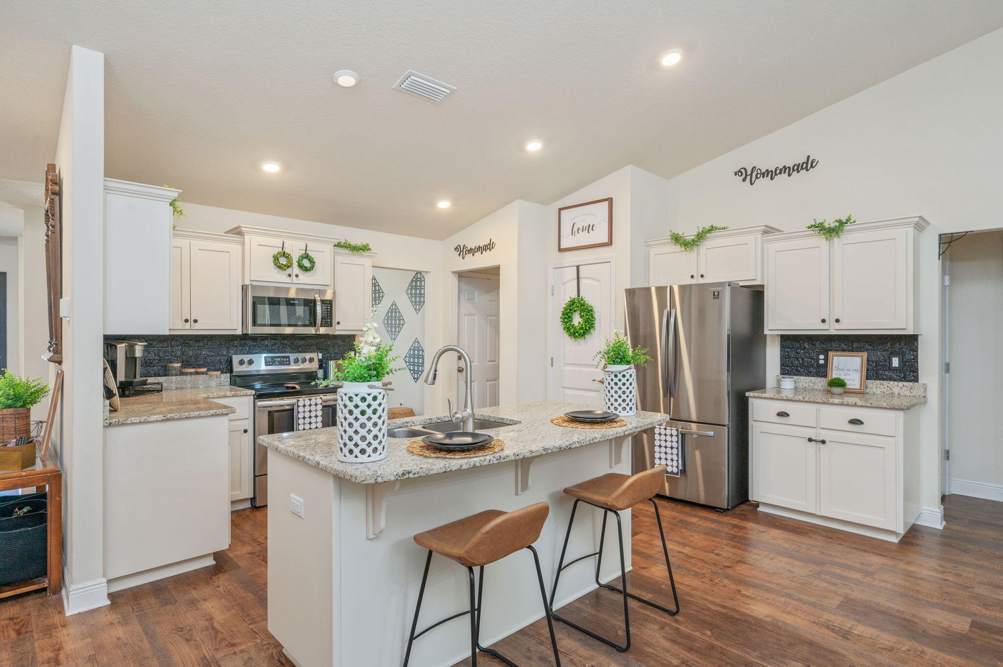 This is a stunning 4-year-old full brick home that combines modern luxury with comfort. It features 4 spacious bedrooms and a well-designed open floor plan. The interior boasts luxury vinyl flooring throughout, adding durability and style. The formal dining room is perfect for entertaining, while the open kitchen with an island and granite countertops offers a sleek, functional space for cooking and family gatherings. The primary suite includes a private bathroom with a separate tub and shower, providing a relaxing retreat. Outside, the private backyard with an open patio is ideal for outdoor activities and relaxing. The home also includes a 2-car garage and is conveniently located near the interstate and other amenities. Seller has an assumable VA 2.75 interest rate mortage.