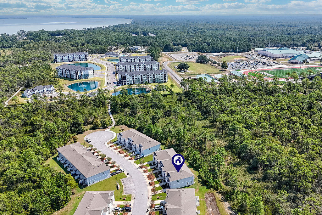 An incredible opportunity awaits in this beautifully maintained, charming end-unit townhome just minutes from the beach. Tucked away in the peaceful Miller's Crossing community, this lovely home offers wooded views, a welcoming atmosphere and a layout that makes everyday living easy and comfortable. As you step inside, the interior feels instantly warm and inviting. The bright open floor plan includes a kitchen with granite countertops, stainless steel appliances, and ample cabinetry, while the cozy living area offers stylish finishes and abundant natural light that make the space feel warm and well cared for. This beautiful three-bedroom, two-and-a-half bath home backs to a protected green space, offering privacy and serene views you'll love coming home to. Enjoy morning walks on the neighborhood's scenic boardwalk surrounded by nature, all while being minutes from Blue Mountain Beach, shopping, dining, and coastal attractions. The spacious primary suite includes a walk-in closet and dual vanity bath, with ample storage throughout. Two additional bedrooms and a full bath are located upstairs, offering plenty of flexibility for guests, family, or a home office. Outside, relax on your patio with peaceful wooded views or stroll to the nearby community green spaces. This low-maintenace home is ideal as a primary residence, second home, or long-term investment. A great home at a great value! Make your appointment today.