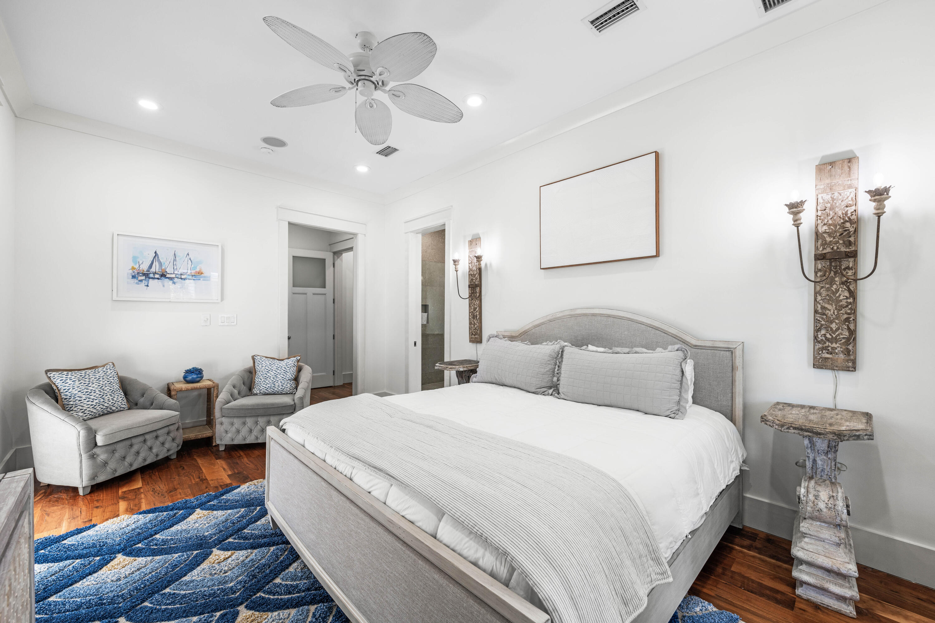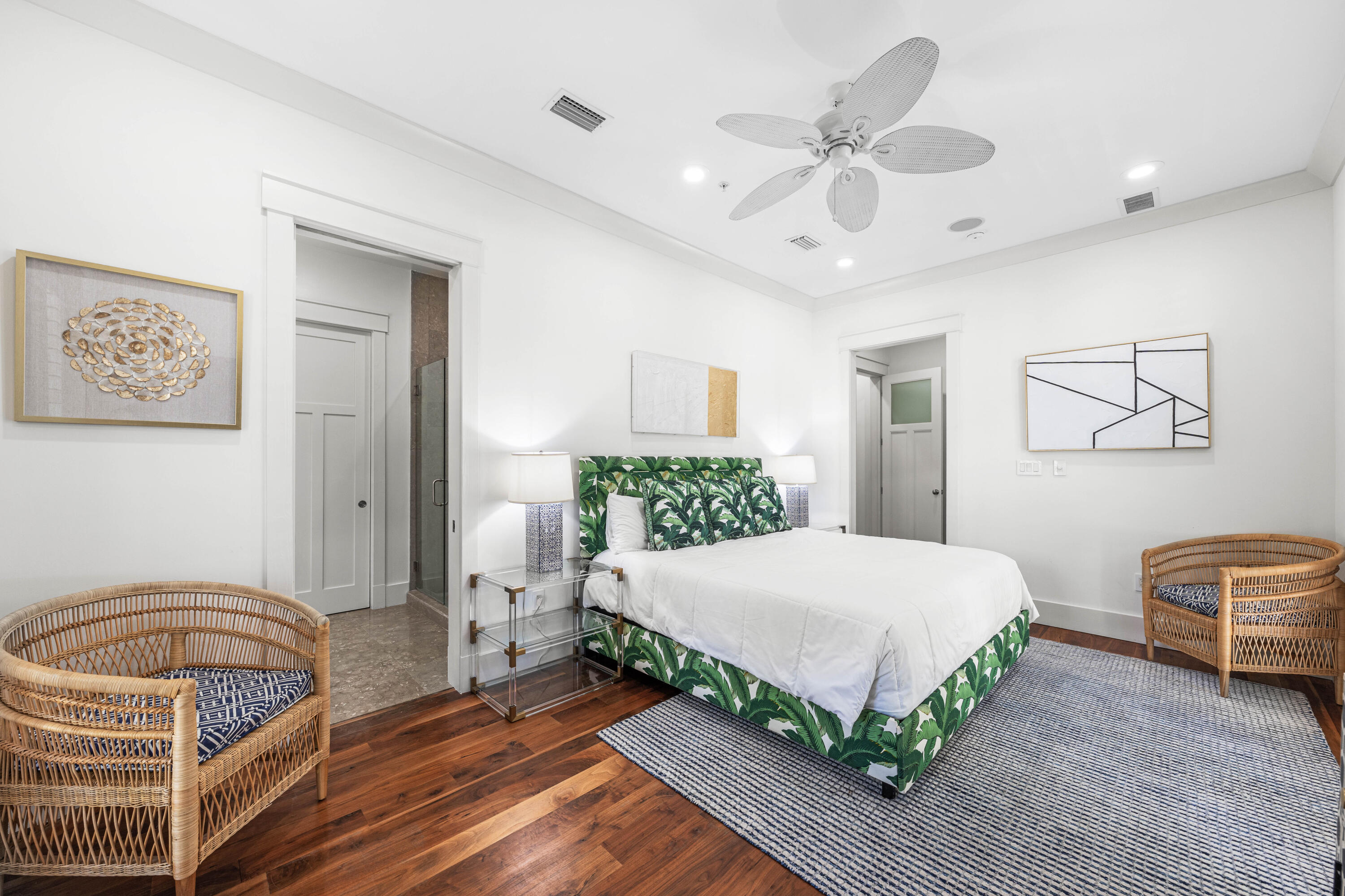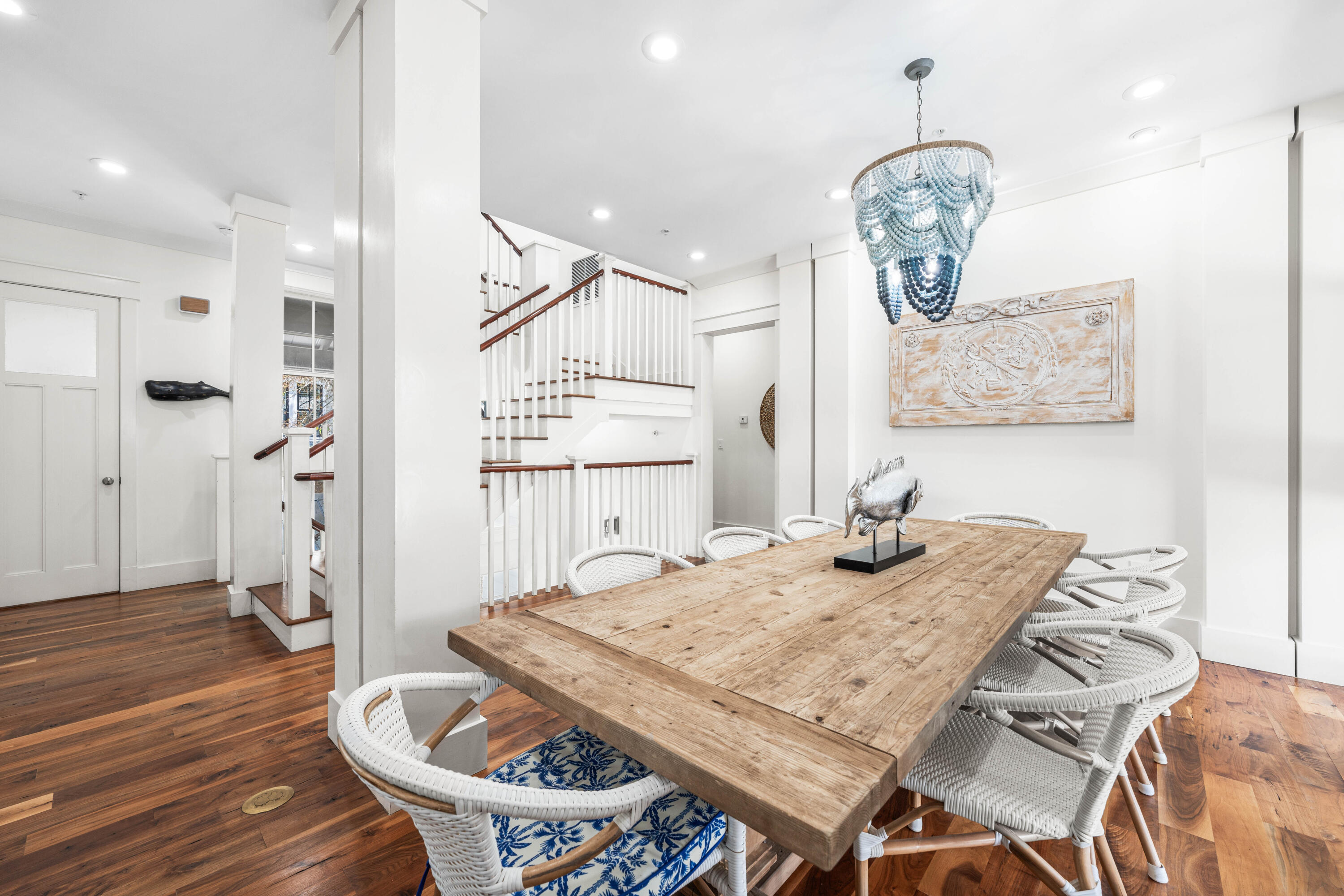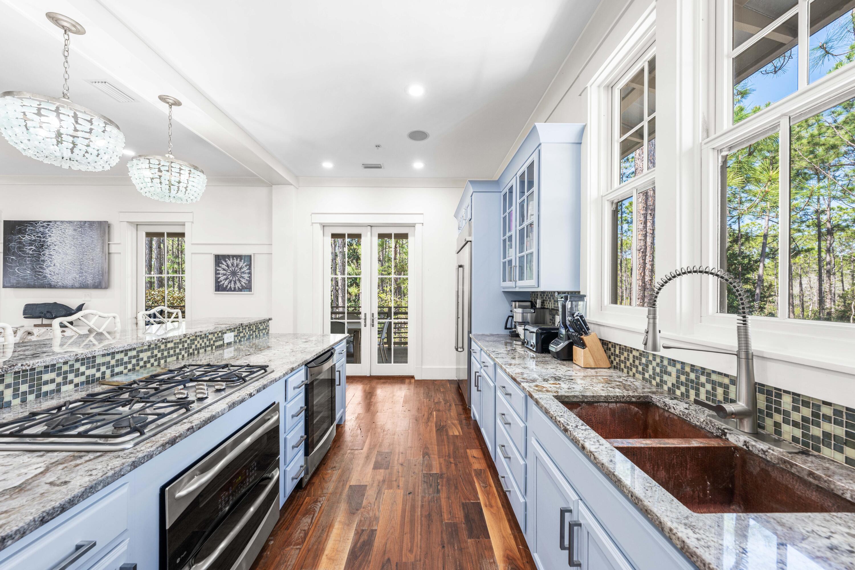 Nestled in the Forest District of WaterColor's Phase II, 114 Pine Needle is a stunning 6-bedroom, 6.5-bathroom cottage blending classic Florida charm with modern comfort. Bright white walls, cheerful furnishings, and coastal blue accents create a warm, inviting atmosphere. Five bedrooms feature en suite baths, with ample space for any group. The 2nd floor entertains with a huge open living area, kitchen, and dining that spills onto a 34' wide deck overlooking the private preserve. The 3rd & 4th floors offer a kids/sitting room and tower with mini kitchen--perfect for sunset views. Three sitting areas and five spacious porches ensure relaxation and connection for large families. Conveniently near Camp WaterColor and a short bike ride to the Gulf Front Beach Club with 3 pools along the Gulf Golf Cart included