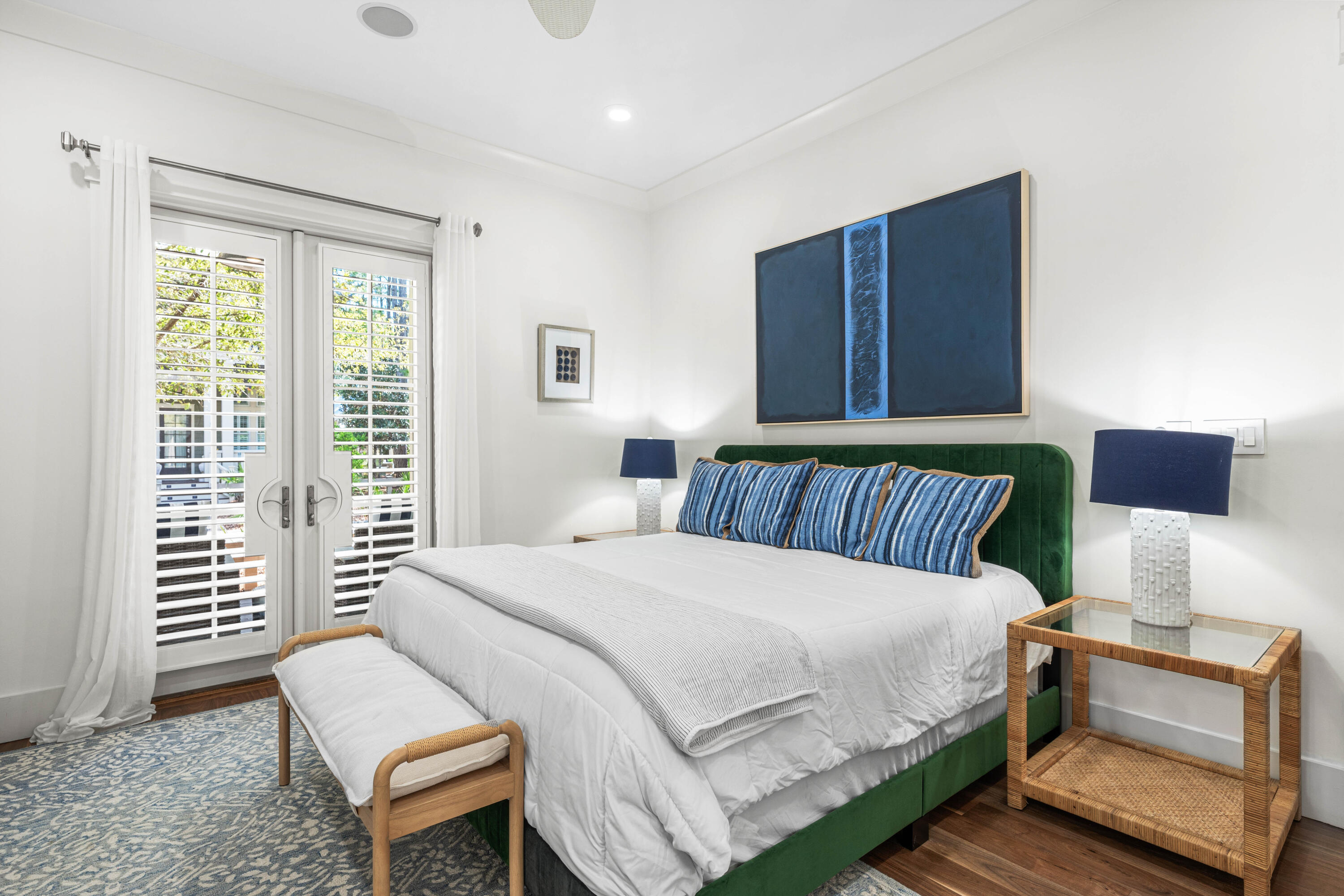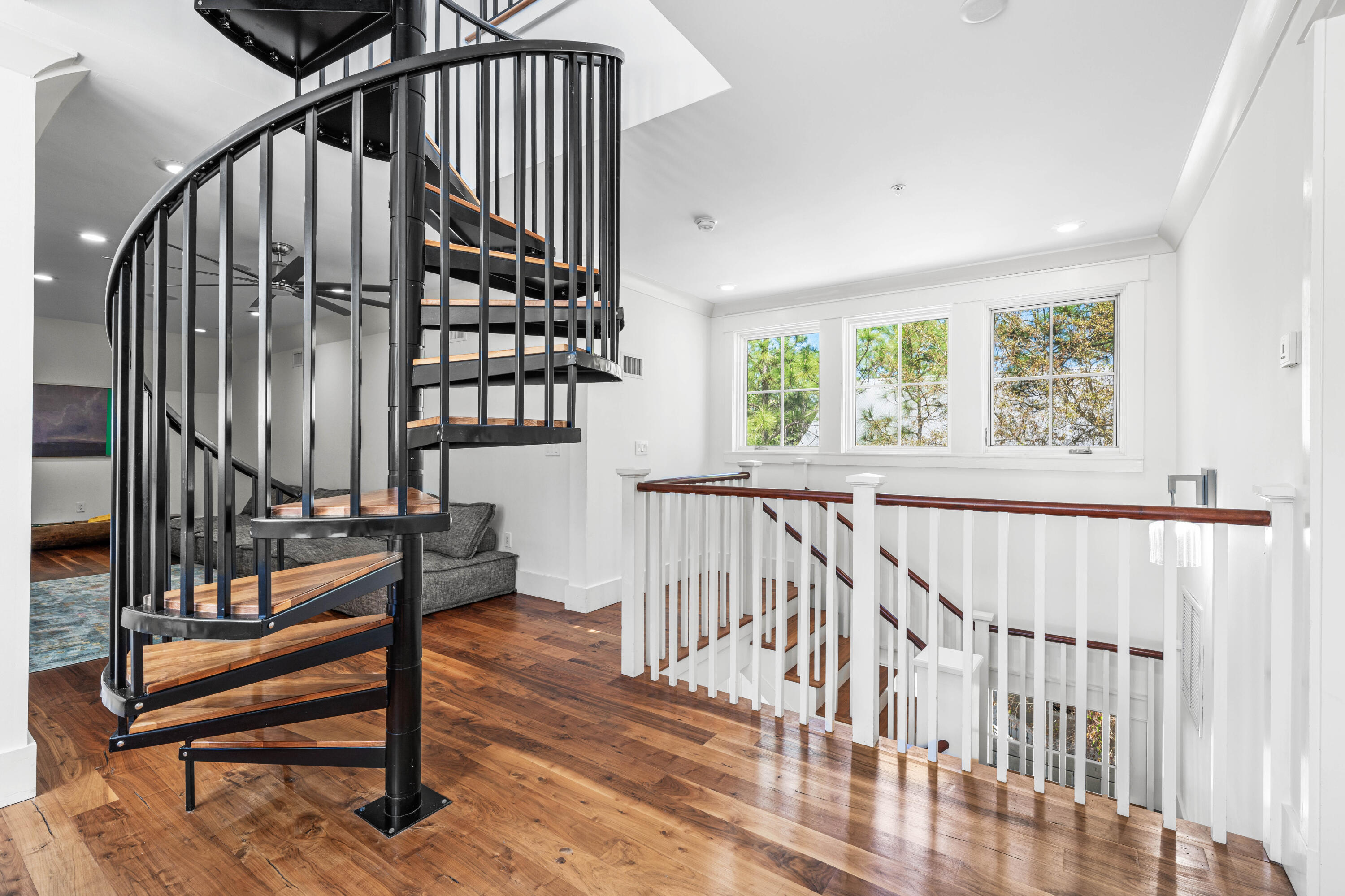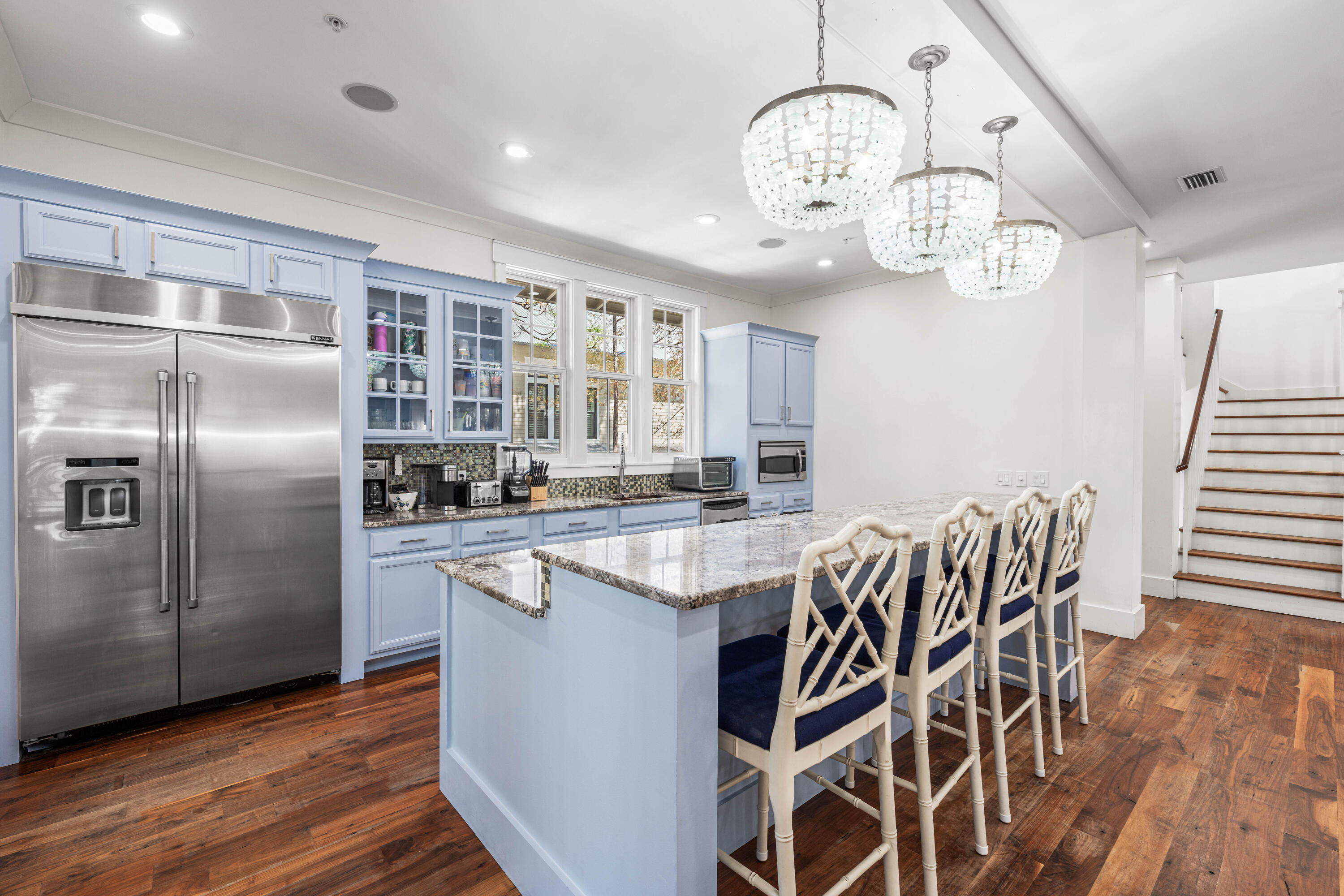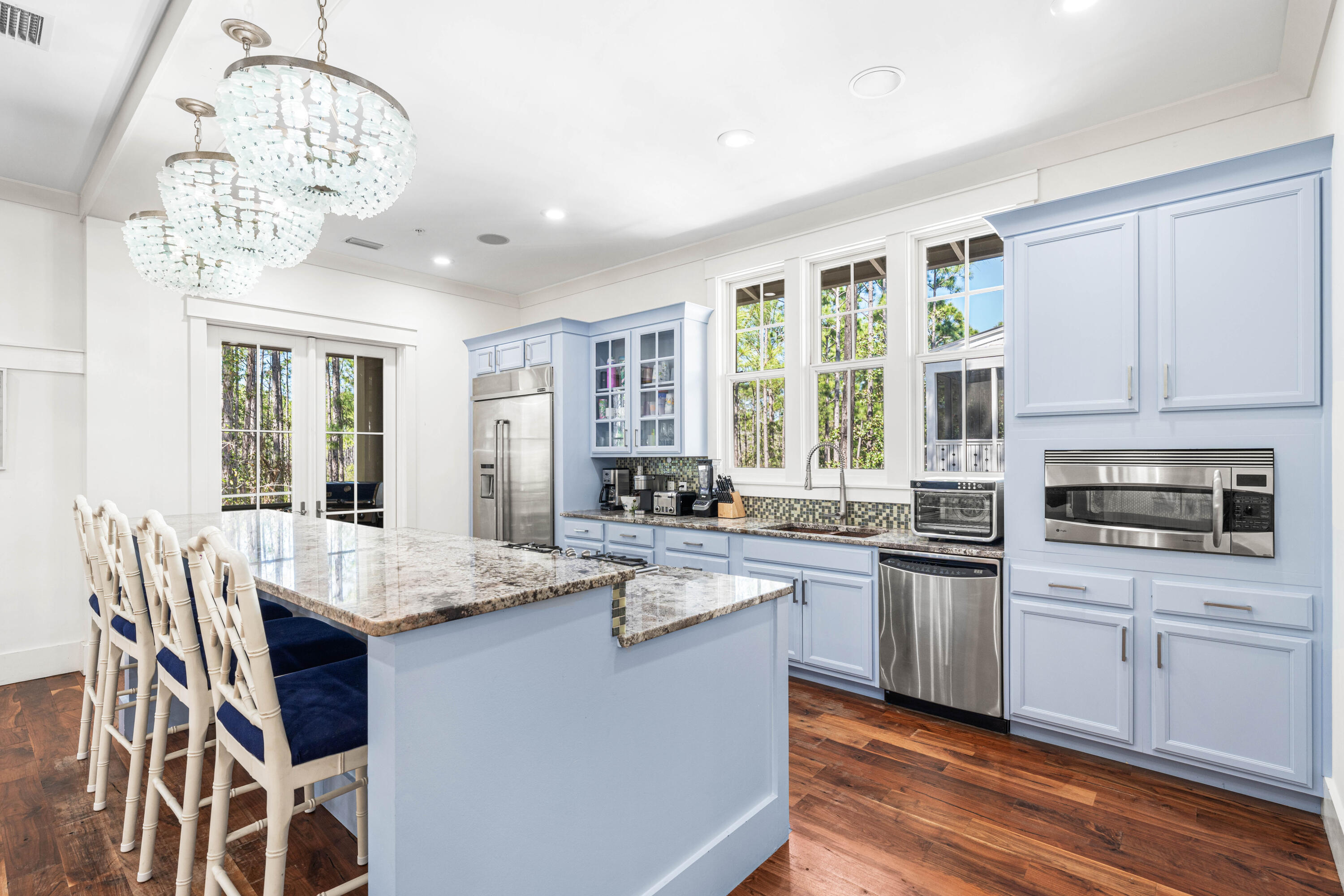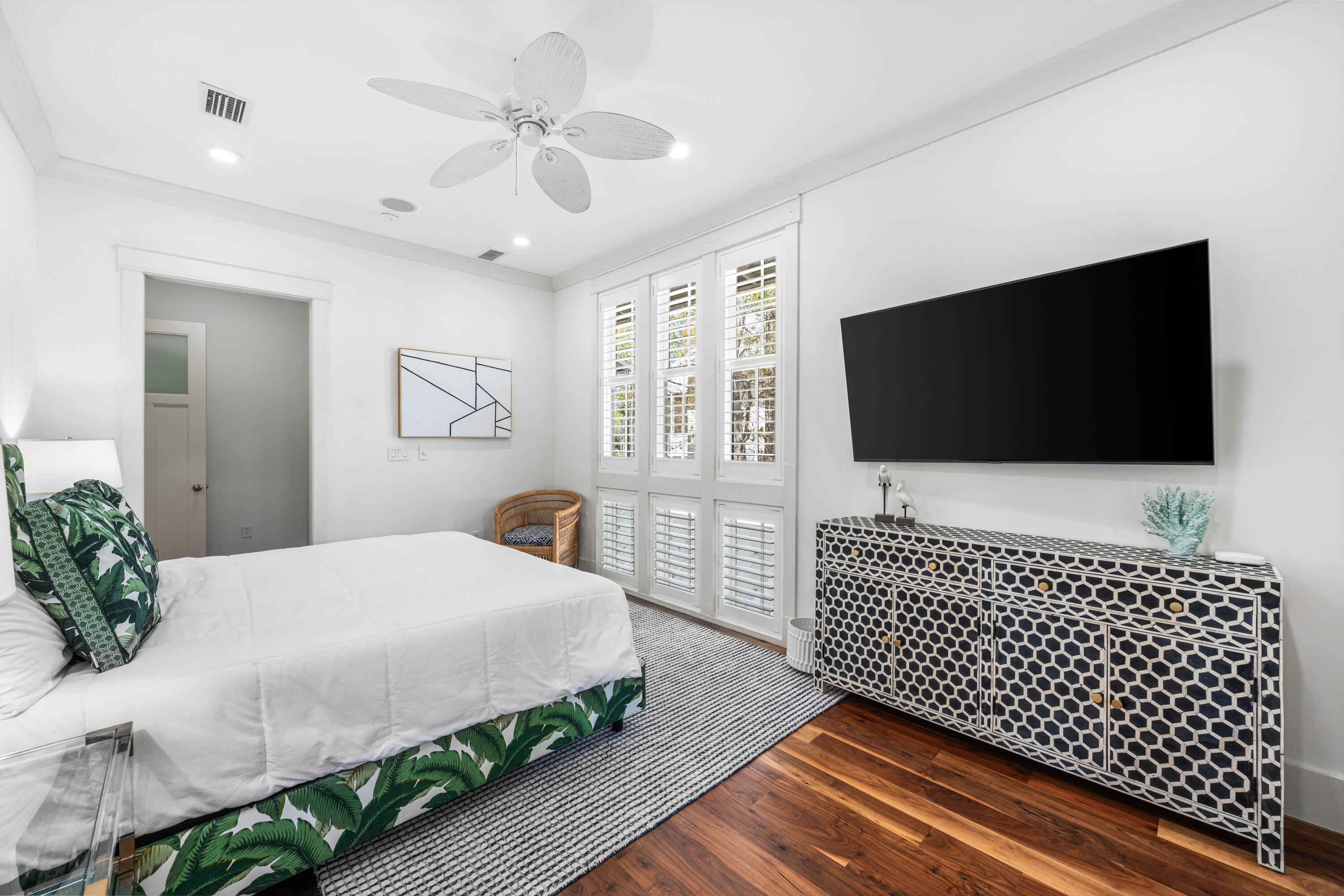 Nestled in the Forest District of WaterColor's Phase II, 114 Pine Needle is a stunning 6-bedroom, 6.5-bathroom cottage blending classic Florida charm with modern comfort. Bright white walls, cheerful furnishings, and coastal blue accents create a warm, inviting atmosphere. Five bedrooms feature en suite baths, with ample space for any group. The 2nd floor entertains with a huge open living area, kitchen, and dining that spills onto a 34' wide deck overlooking the private preserve. The 3rd & 4th floors offer a kids/sitting room and tower with mini kitchen--perfect for sunset views. Three sitting areas and five spacious porches ensure relaxation and connection for large families. Conveniently near Camp WaterColor and a short bike ride to the Gulf Front Beach Club with 3 pools along the Gulf Golf Cart included