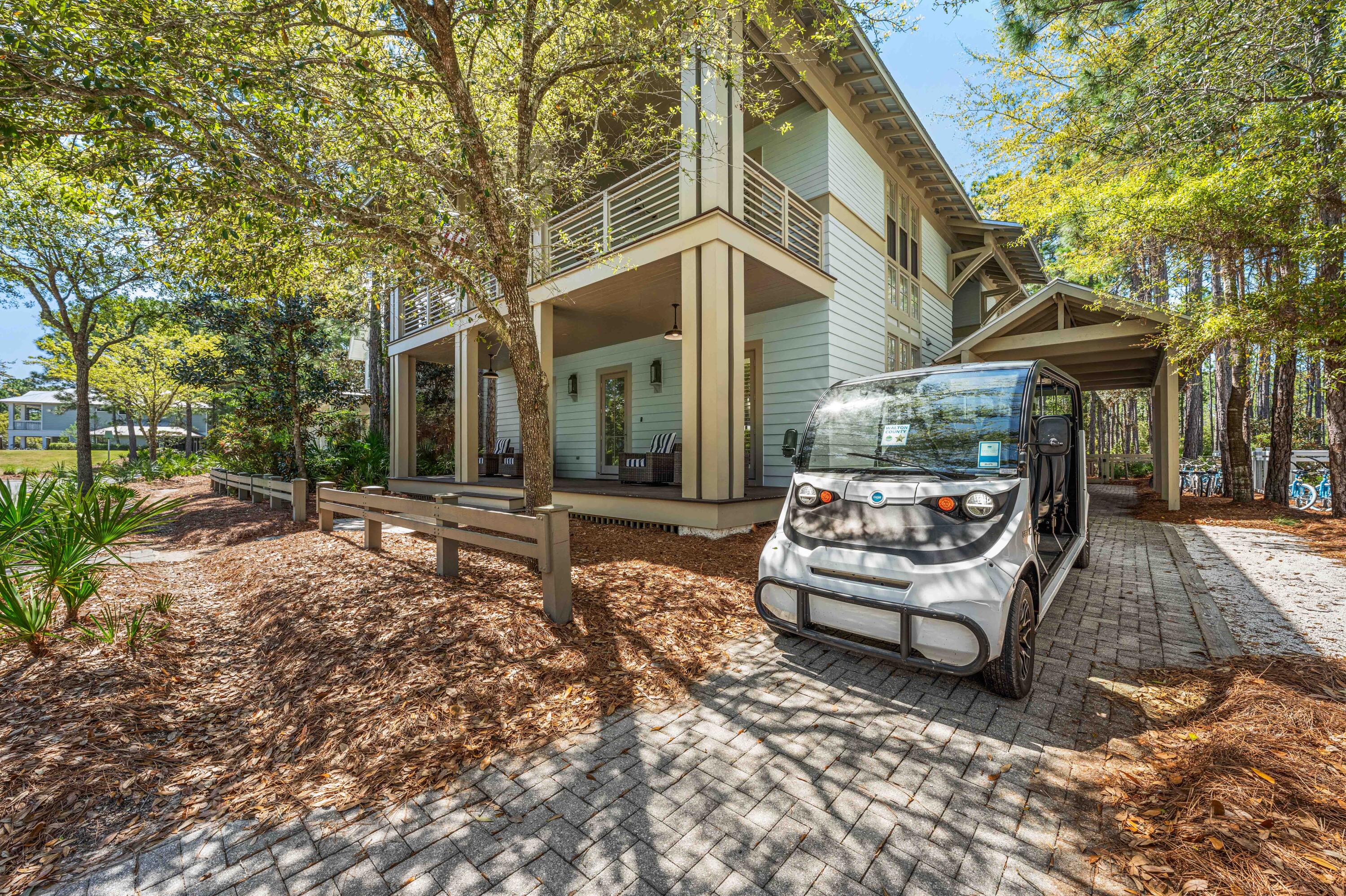 From HWY 98 & CR 395 in Santa Rosa Beach, FL, head south on CR 395 (0.9 mi). Turn right onto Western Lake Rd (0.7 mi). Turn left onto Lake Forest Dr (0.3 mi). Turn right onto Pine Needle Way (0.1 mi). 114 is on your left