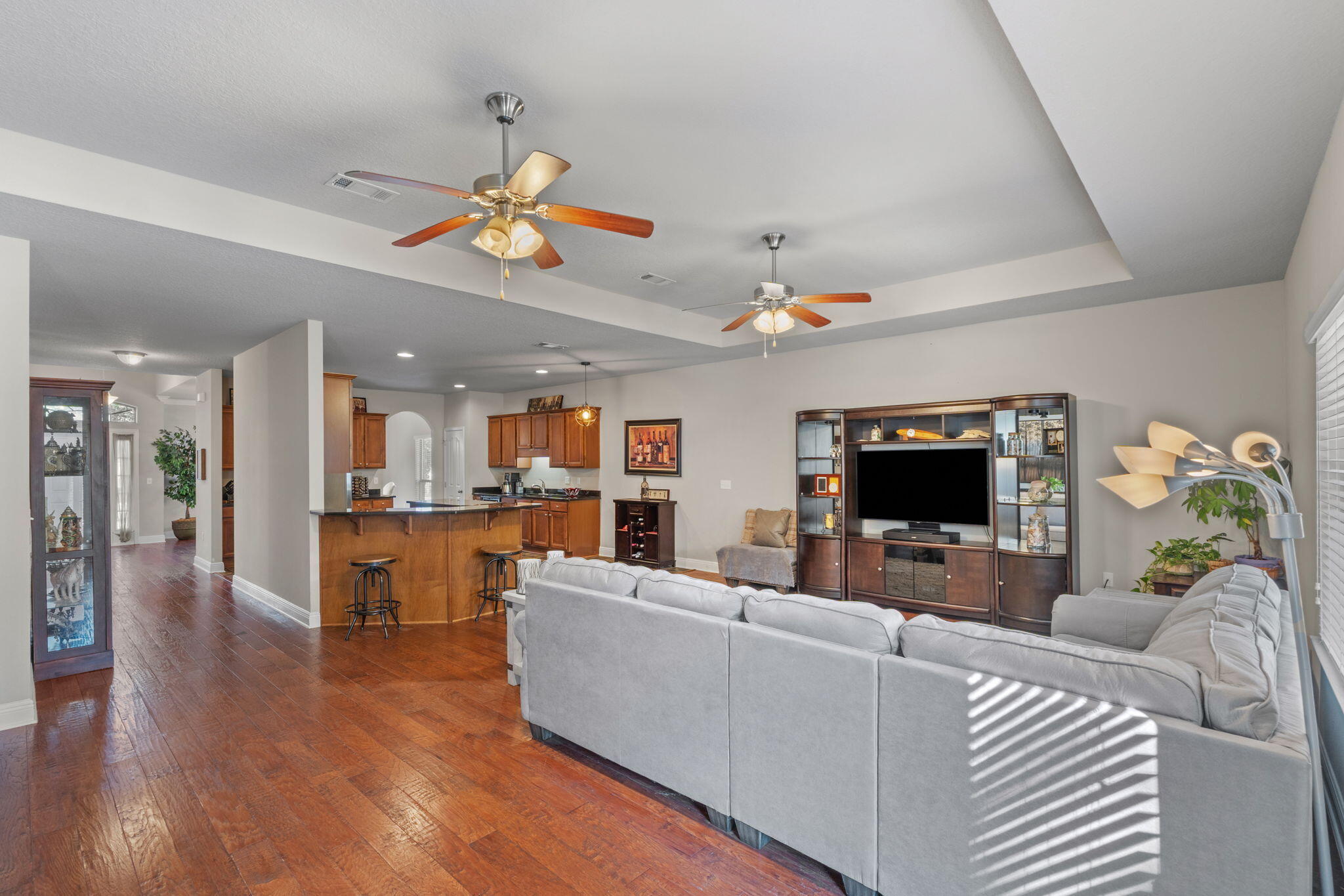 Welcome to Mussett Bayou Estates! This wonderful gated community offers a home designed for both comfort and convenience. The low-maintenance exterior combines brick and Hardie board siding for lasting durability.Inside, the spacious primary suite features two large closets, the second bedroom also includes a large closet.The kitchen and baths are finished with granite countertops, and the home boasts hardwood floors in the family room, foyer, and office, plus tile in the kitchen, laundry, and baths. Additional highlights includeFabric Shield hurricane shuttersAn extended backyard fence, doubling usable outdoor spaceOffice with potential to convert into a 4th bedroom.