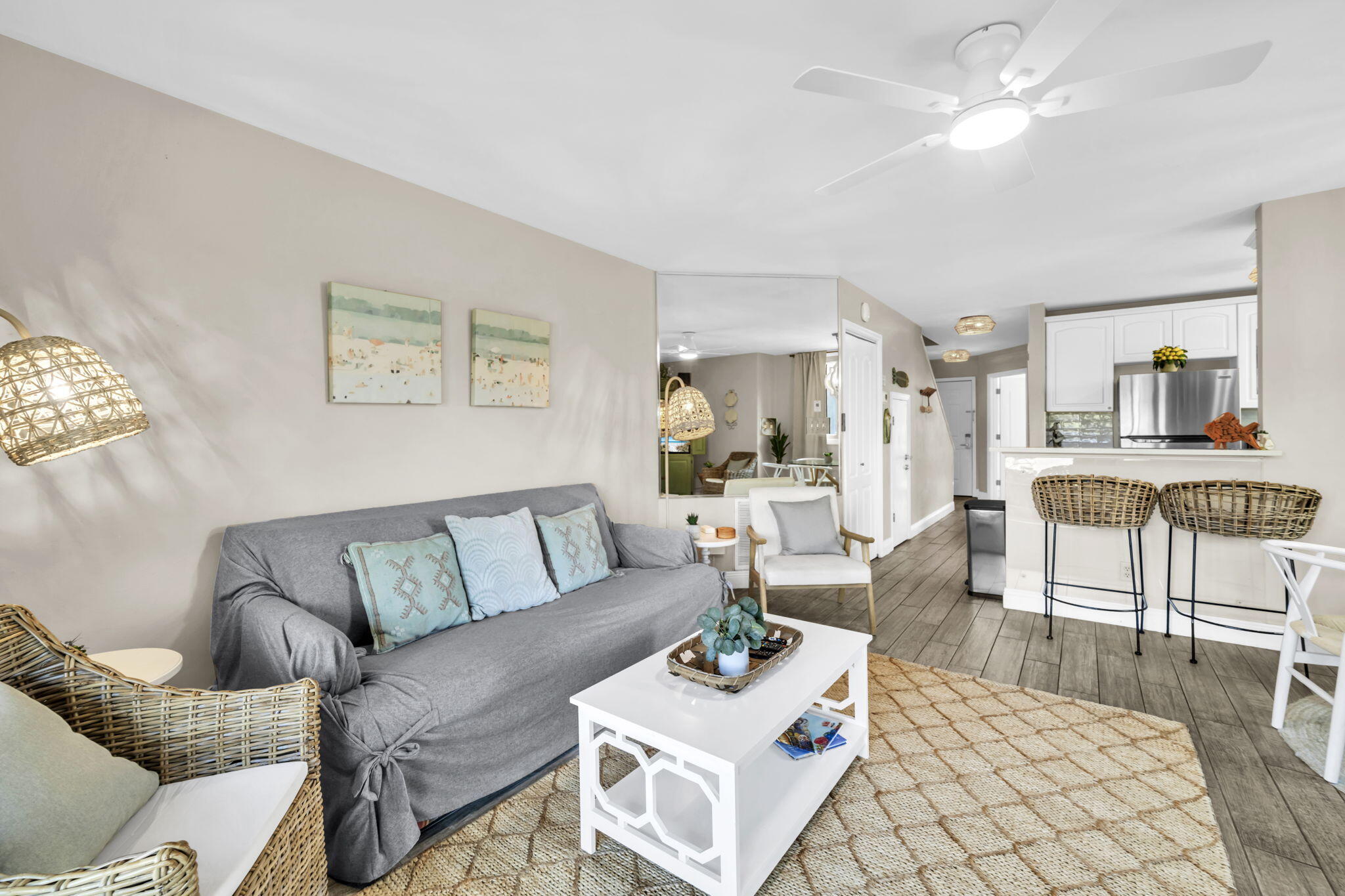 Driftwood Bay Unit 136, nestled within the prestigious Seascape Resort. This rare end-unit townhouse offers enhanced privacy, sweeping views of Stewart Lake and the 14th fairway, and a light-filled interior thanks to additional side windows. Designed with both comfort and sophistication in mind, the residence features three spacious bedrooms, two spa-inspired bathrooms, and a thoughtfully remodeled interior with upscale finishes throughout. Enjoy tranquil mornings from the screened porch, or retreat to the owner's suite with its private balcony overlooking the water. With no neighbors above or below, this residence offers a serene, single-family feel just steps from the sugar-white sands of the Emerald Coast. Whether as a luxury vacation escape or an investment in one of Miramar Beach's most desirable communities, this turnkey property embodies the very best of Gulf Coast living. This property has already gone through major exterior upgrades and is READY for its new owner!