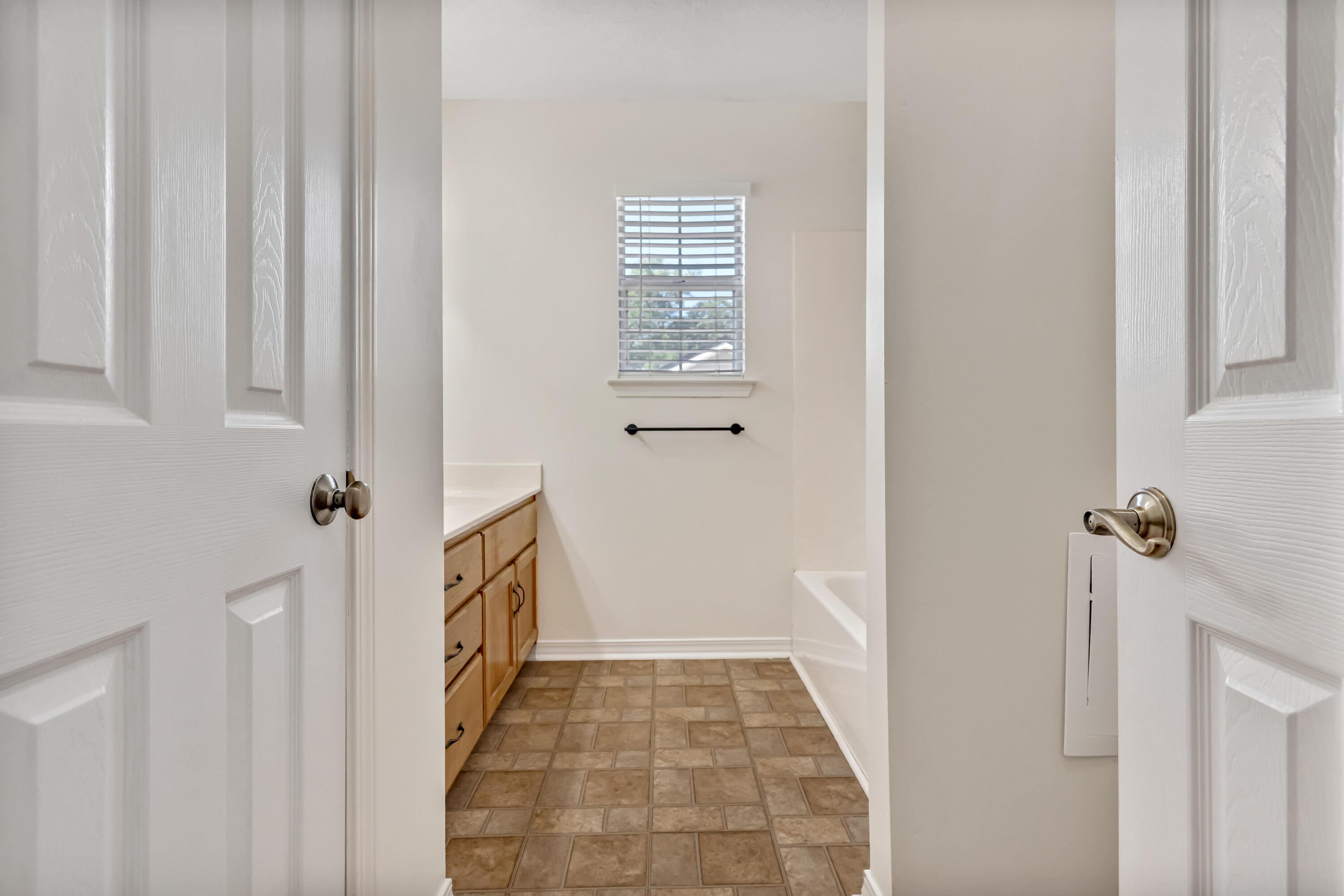 Welcome to Parkwood Place at Bluewater Bay! This charming two-story home offers 3 bedrooms and 2.5 baths in a highly sought-after neighborhood close to schools, shopping, and the beaches of the Emerald Coast. Upon entry, you'll find a spacious living room featuring a gas fireplace and unique porcelain tile flooring that flows into a formal dining area with a bay window. Just beyond, there's a cozy second living space with a convenient half bath, laundry area, and access to the two-car garage. The eat-in kitchen connects seamlessly to this second living area and includes a dedicated breakfast nook window, solid oak cabinetry, newer stone countertops, and black appliances, providing ample space for cooking and entertaining. Upstairs, all 3 bedrooms feature light oak-look laminate flooring and lots of natural light. The primary suite boasts a large whirlpool tub, a separate walk-in shower, and extended dual-sink vanity, and a spacious walk-in closet. The 2 additional bedrooms include ceiling fans and share a full guest bath located in the hall.
