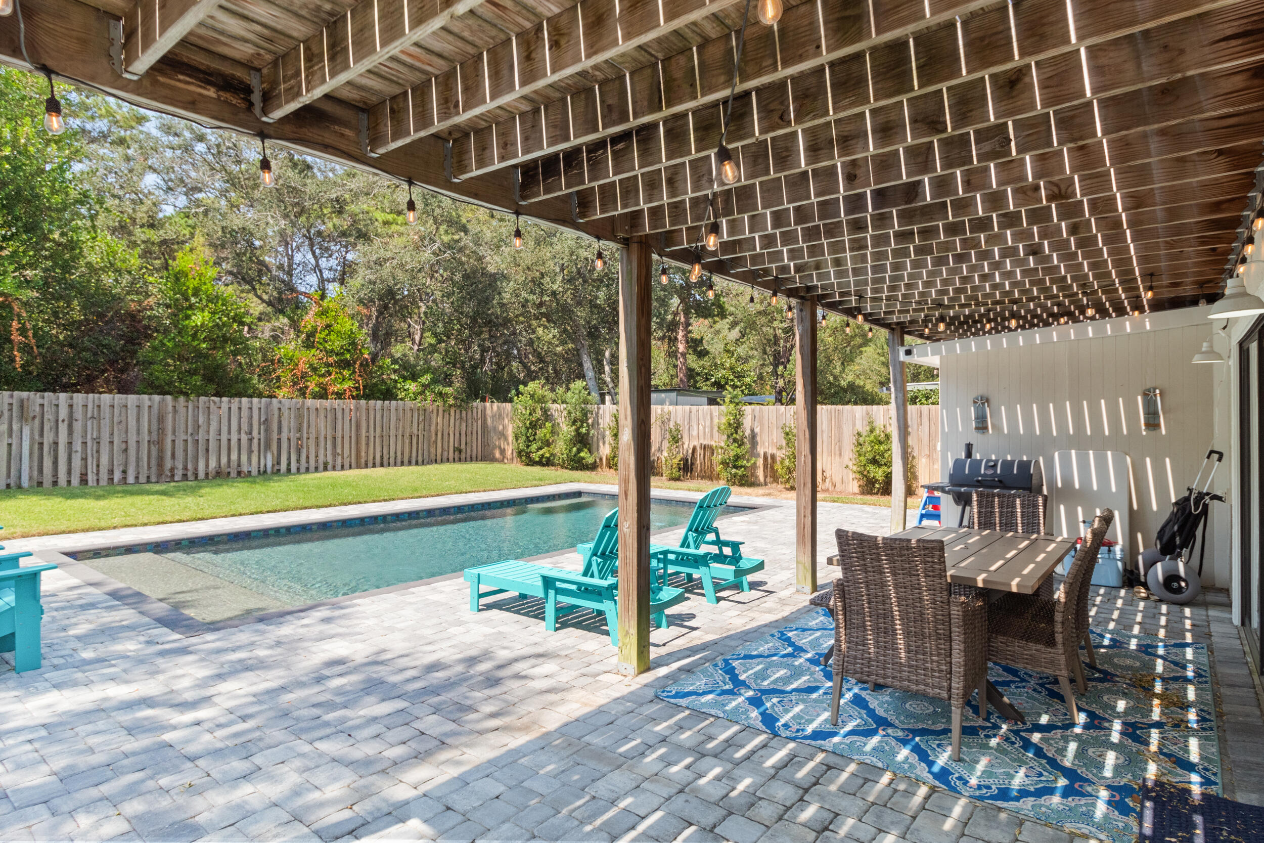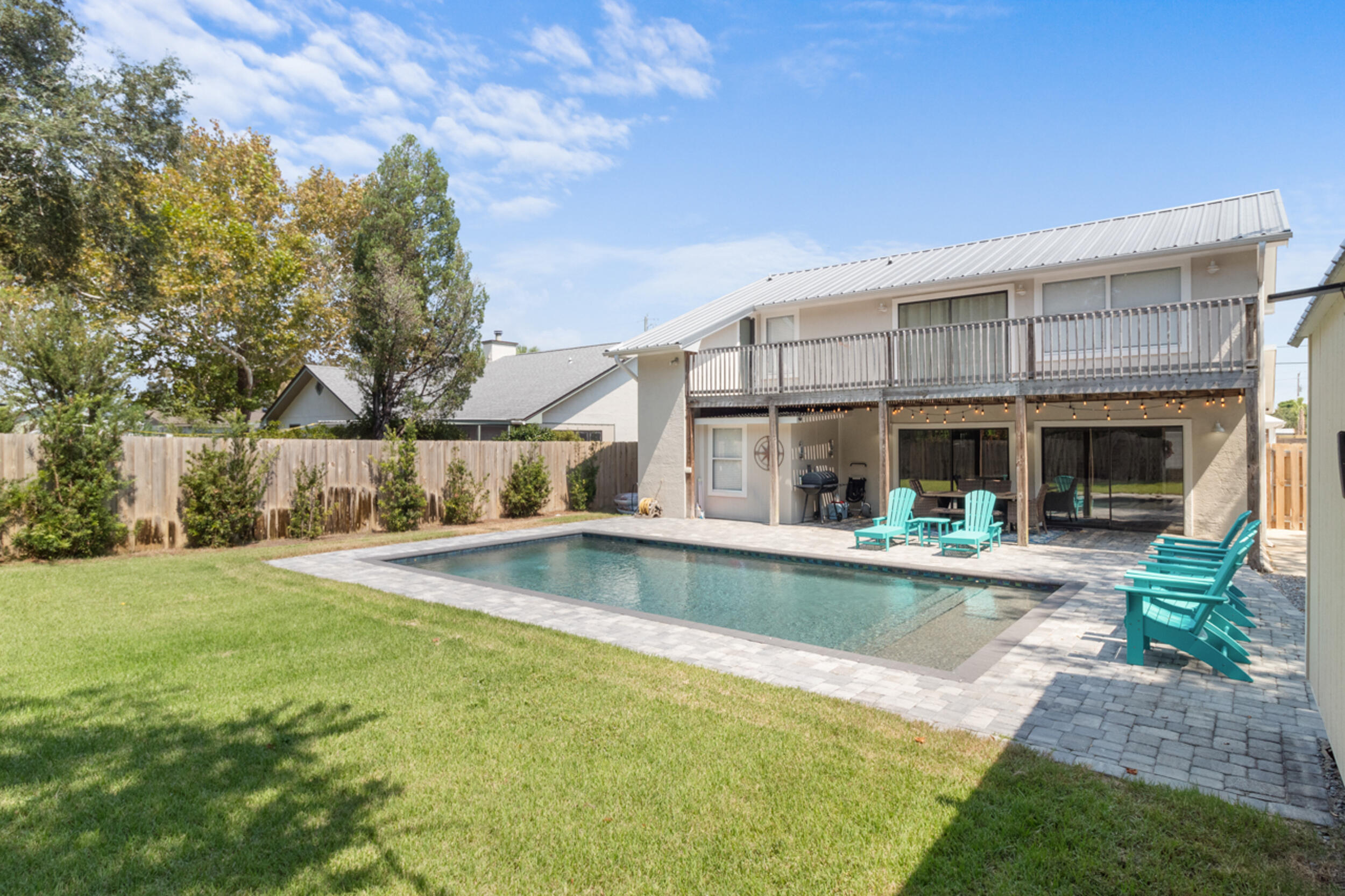 This spacious coastal retreat on the West End of Panama City Beach offers the perfect blend of comfort, style, and convenience. Just a short walk or golf cart ride to the beach, this two-story home designed for easy beachside living.Inside you will discover new floors and a stylish kitchen featuring stainless steel appliances and granite countertops. The interior is beautifully designed with calming neutral tones that create a bright, welcoming feel throughout. Out back, a private pool invites you to unwind or entertain friends after a day at the beach. This home's meticulous upkeep make this property truly move-in ready. A durable metal roof, installed in 2019, ensures lasting peace of mind. Call your agent now to schedule your appointment.