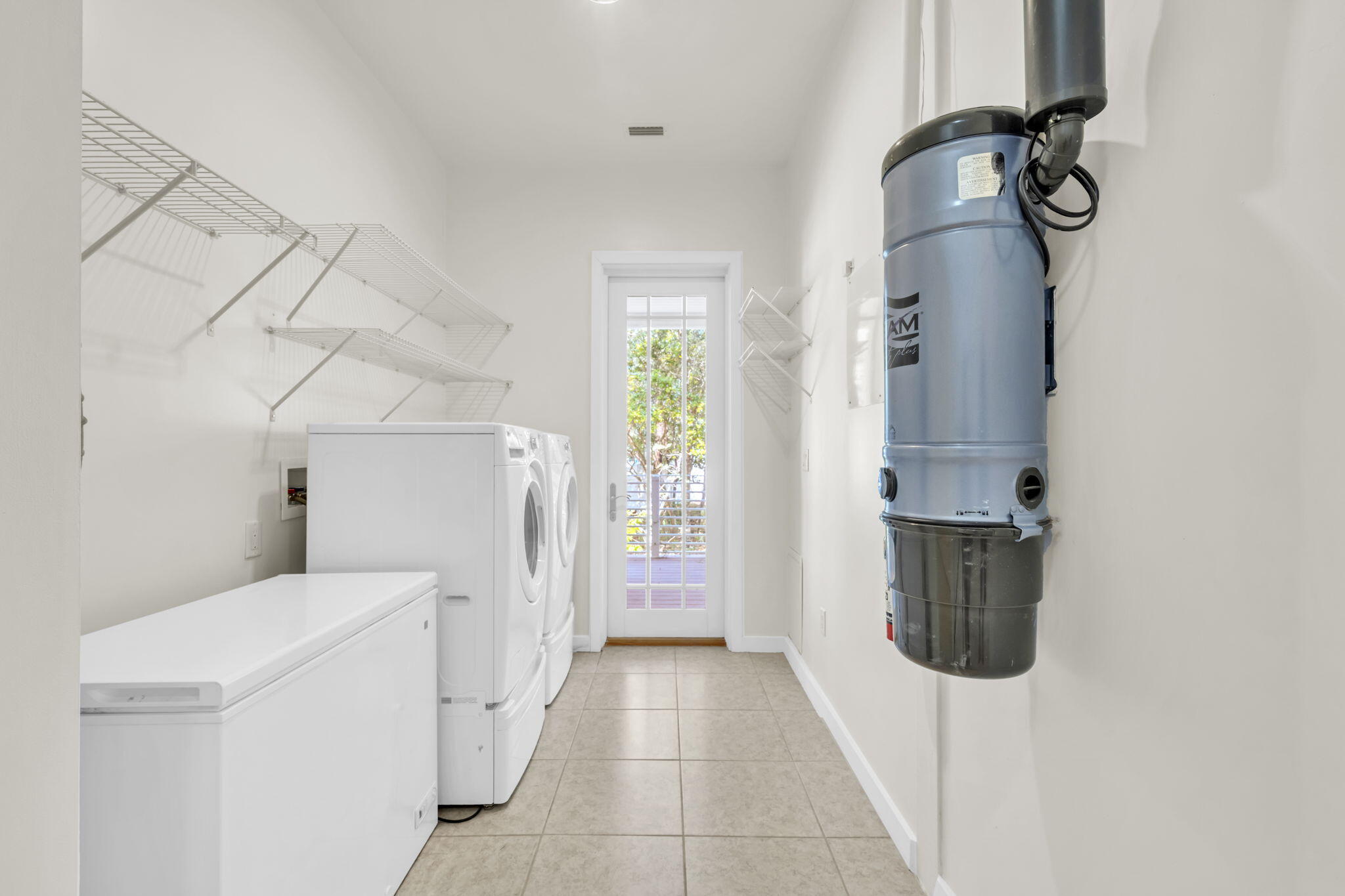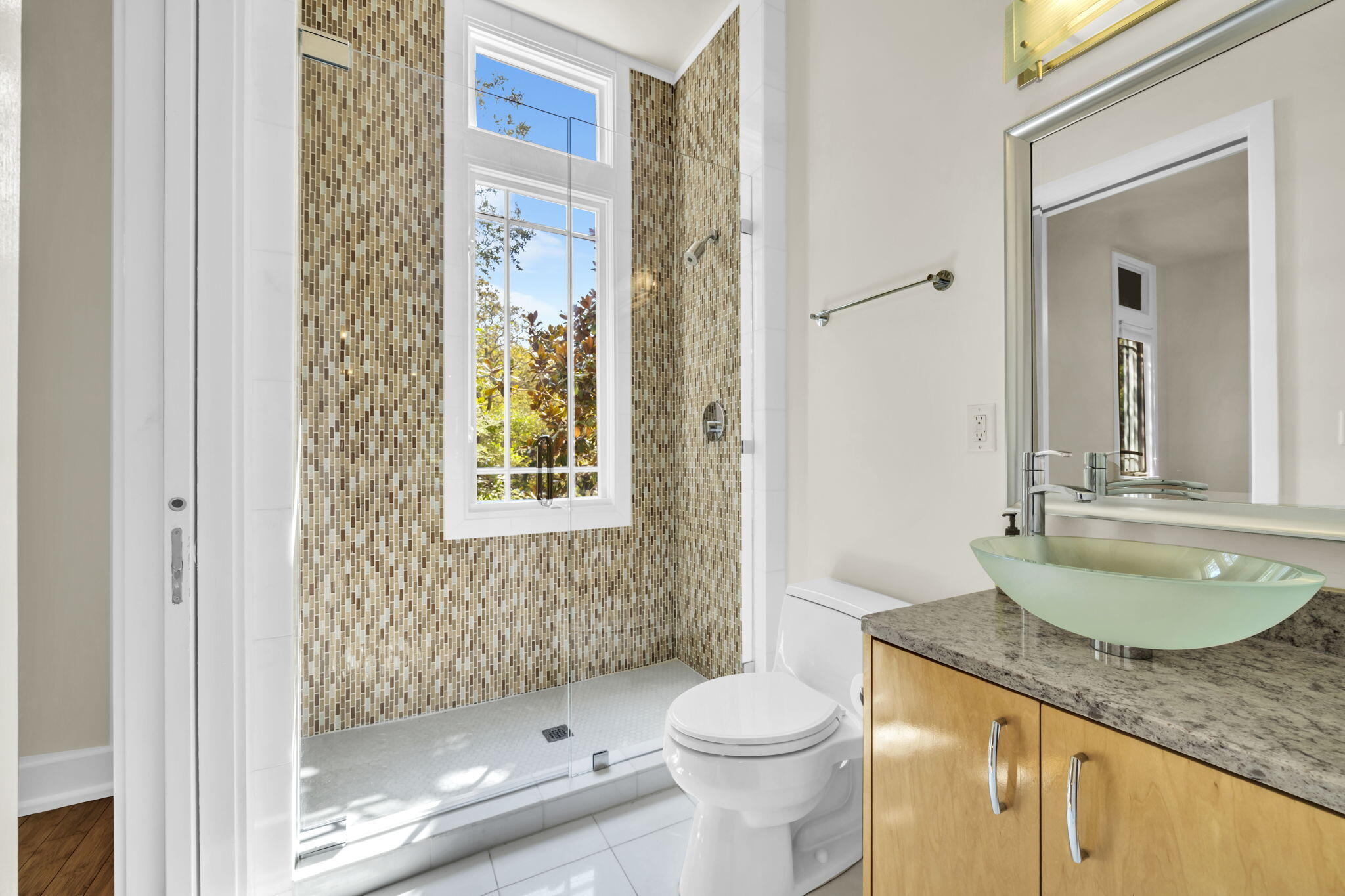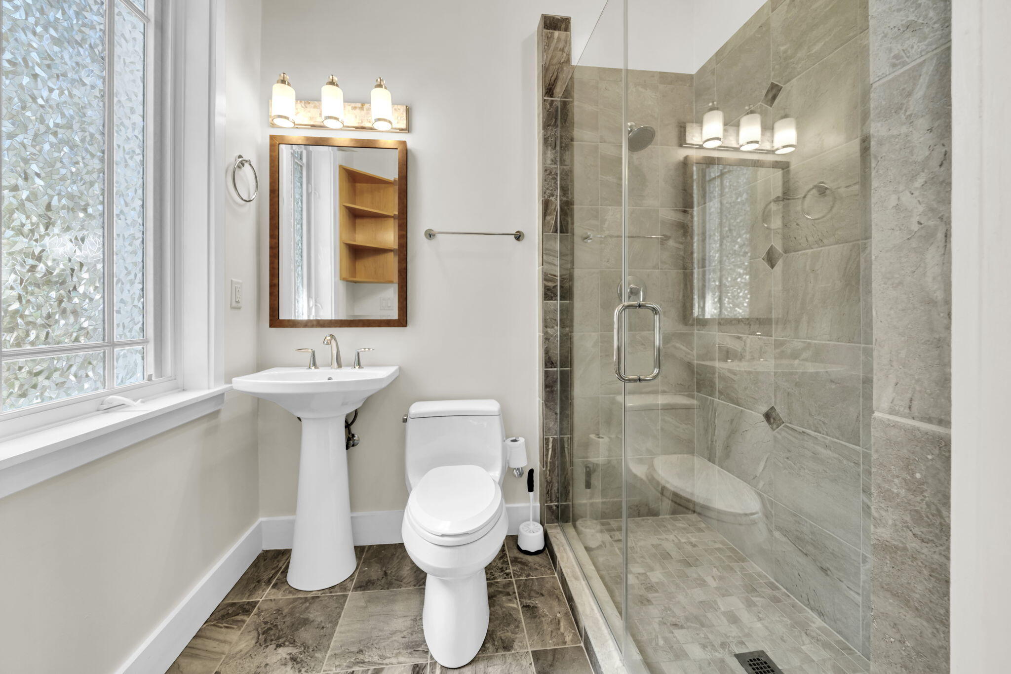 Nestled under Old Seagrove's iconic tree canopy and just two blocks from both the beach and Seaside, this three-story contemporary home (4645 sq-ft) blends architectural pedigree with coastal charm. Designed by acclaimed Tom Christ of Christ & Associates, a Seaside Prize-winning architect whose visionary work has shaped much of 30A's distinctive style.The main home delivers light-infused living with expansive covered porches and soaring floor-to-ceiling windows. On the first floor, you'll find a guest suite with private bath, walk-through laundry, and a massive unfinished flex space -- perfect for a future primary suite, media room, or game lounge.On the second floor, the open-concept living and dining area opens onto porches on both sides creating an ideal indoor-outdoor flow. A guest suite with a walk-in shower rounds out this level.