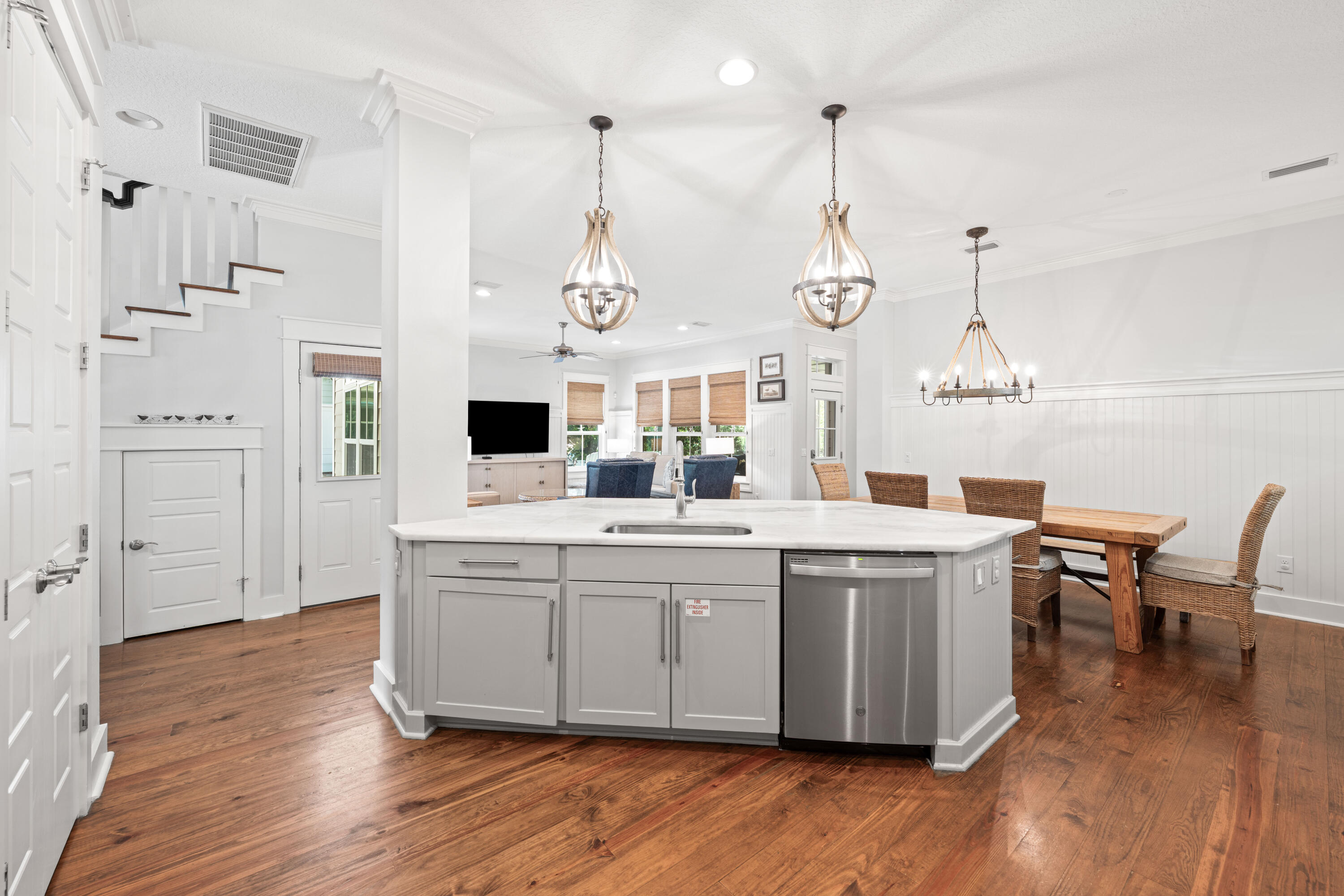 Discover the perfect blend of luxury, location, and lifestyle at 379 E. Royal Fern Way in WaterColor, Florida. This 4-bedroom, 4-bathroom home plus bunk room spans nearly 3,000 square feet on a 0.15-acre lot backing up to tranquil green space, creating privacy and peaceful views just moments from the beach. Step inside to soaring 10-foot ceilings and hardwood floors throughout, paired with marble kitchen countertops and granite baths for timeless elegance. The main living area is freshly painted and styled with new designer furnishings (included in the sale), while a front sitting room with TV and a second-floor living area provide multiple gathering spaces.