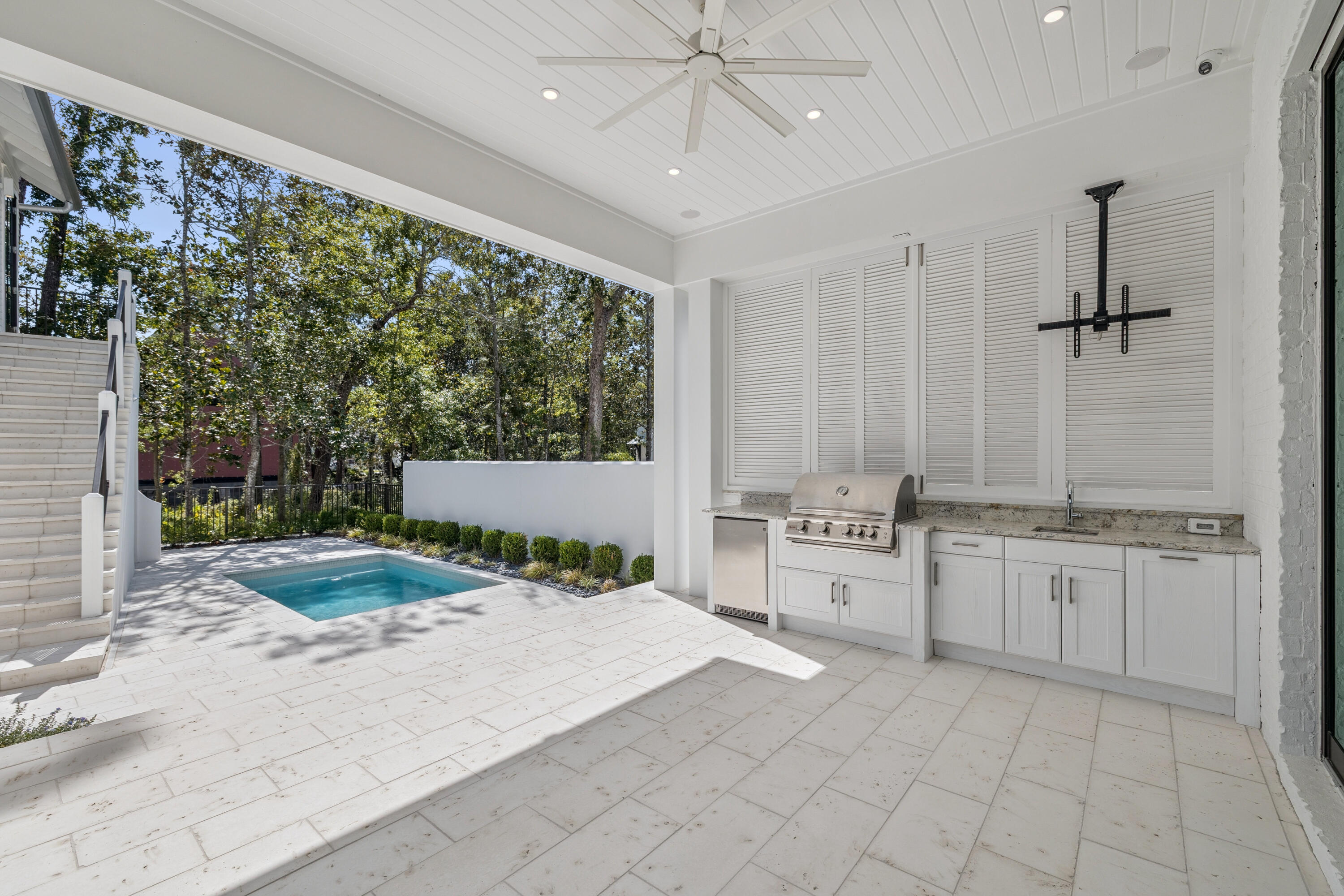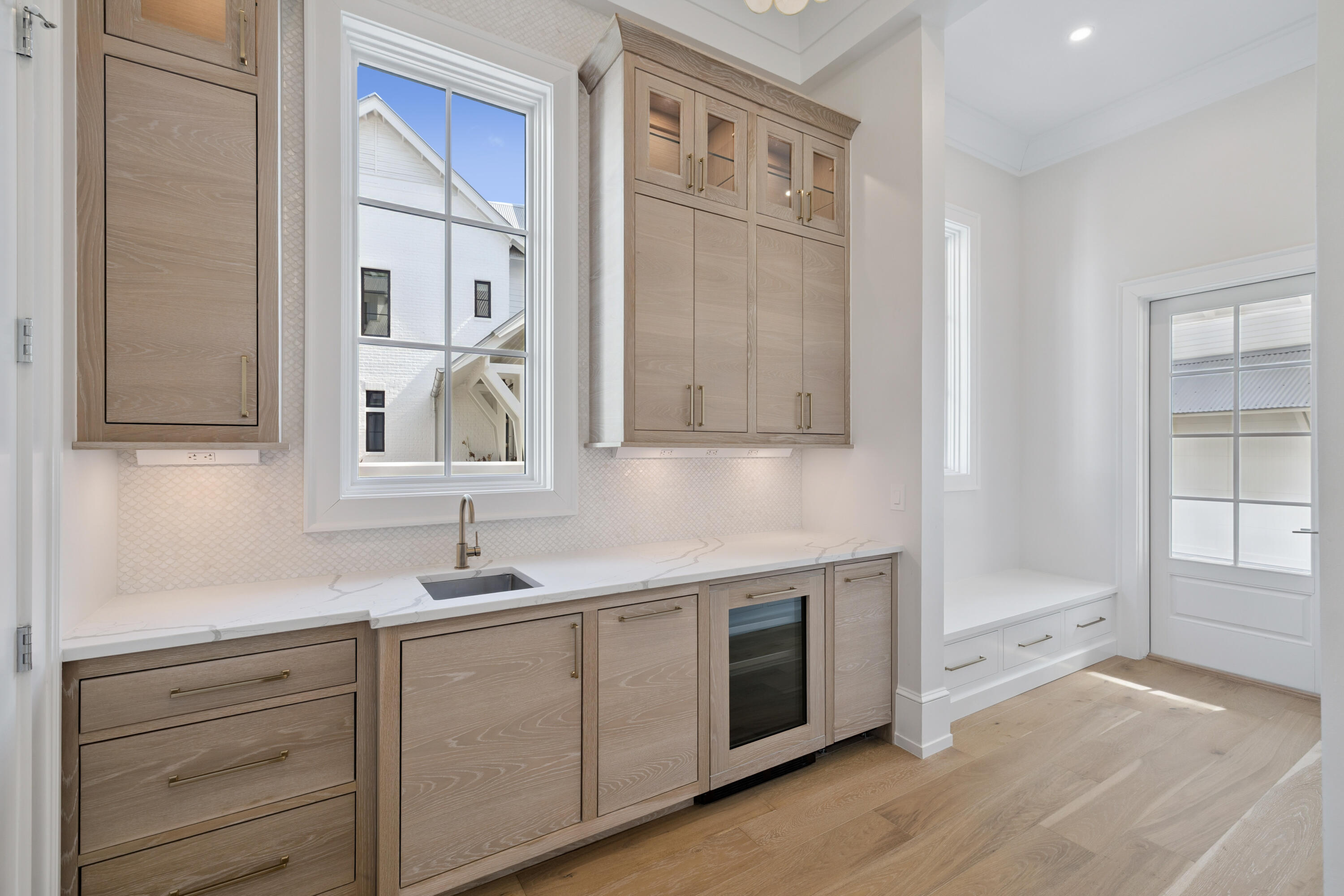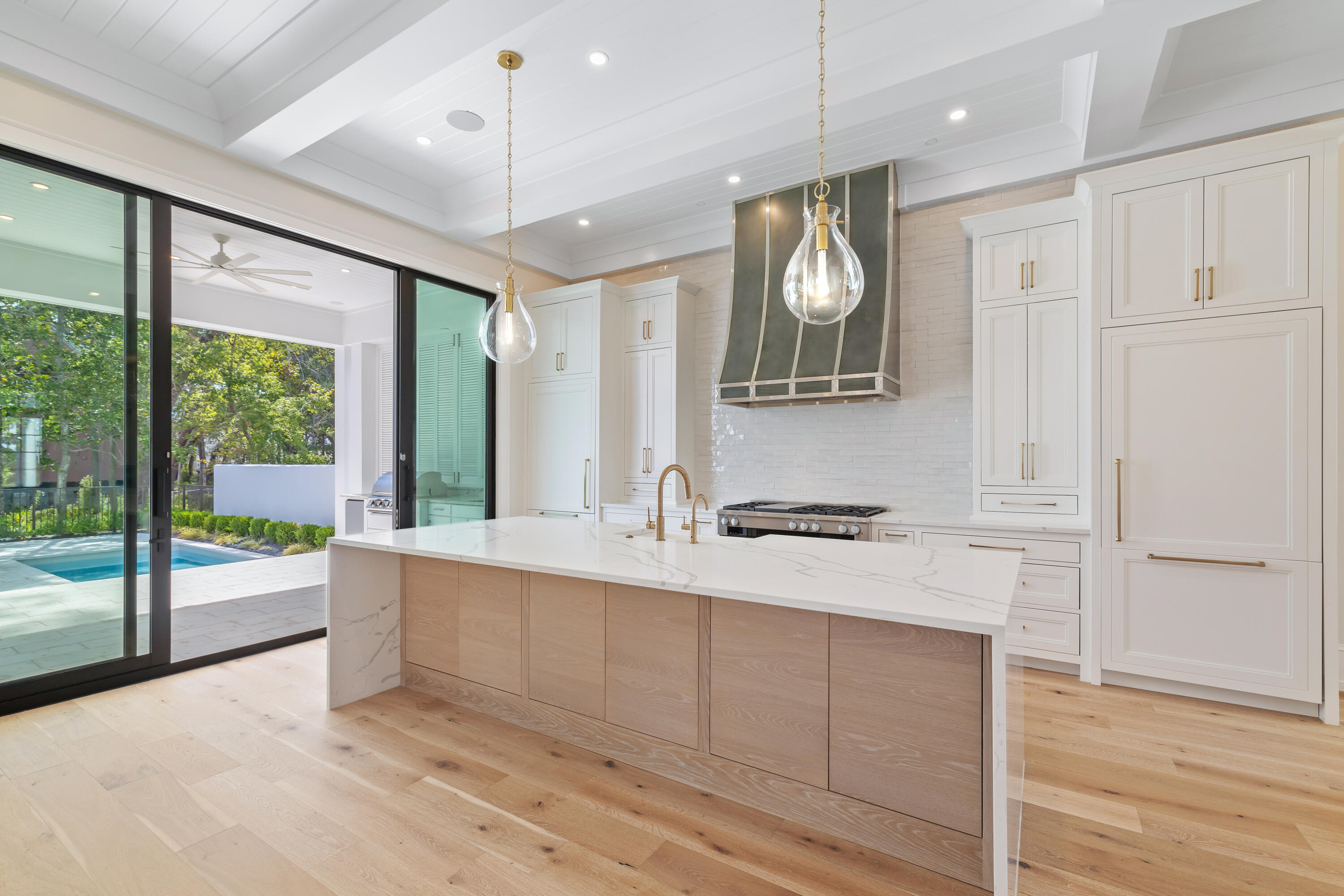 The custom chef's kitchen, equipped with Miele appliances and quartz countertops, flows seamlessly to the outdoor entertaining area, complete with a private pool and summer kitchen, making indoor-outdoor living effortless. A private elevator or the beautifully designed staircase leads to the second floor, where the master suite boasts a balcony overlooking the bayou and a spa-inspired bathroom with dual vanities, a soaking tub, and a walk-in shower. Three additional bedroom suites continue the theme of wide-plank floors, custom cabinetry, and clean, crisp tile throughout the home. The third-floor space offers flexibility as a gym, theater, library, or additional sitting area.