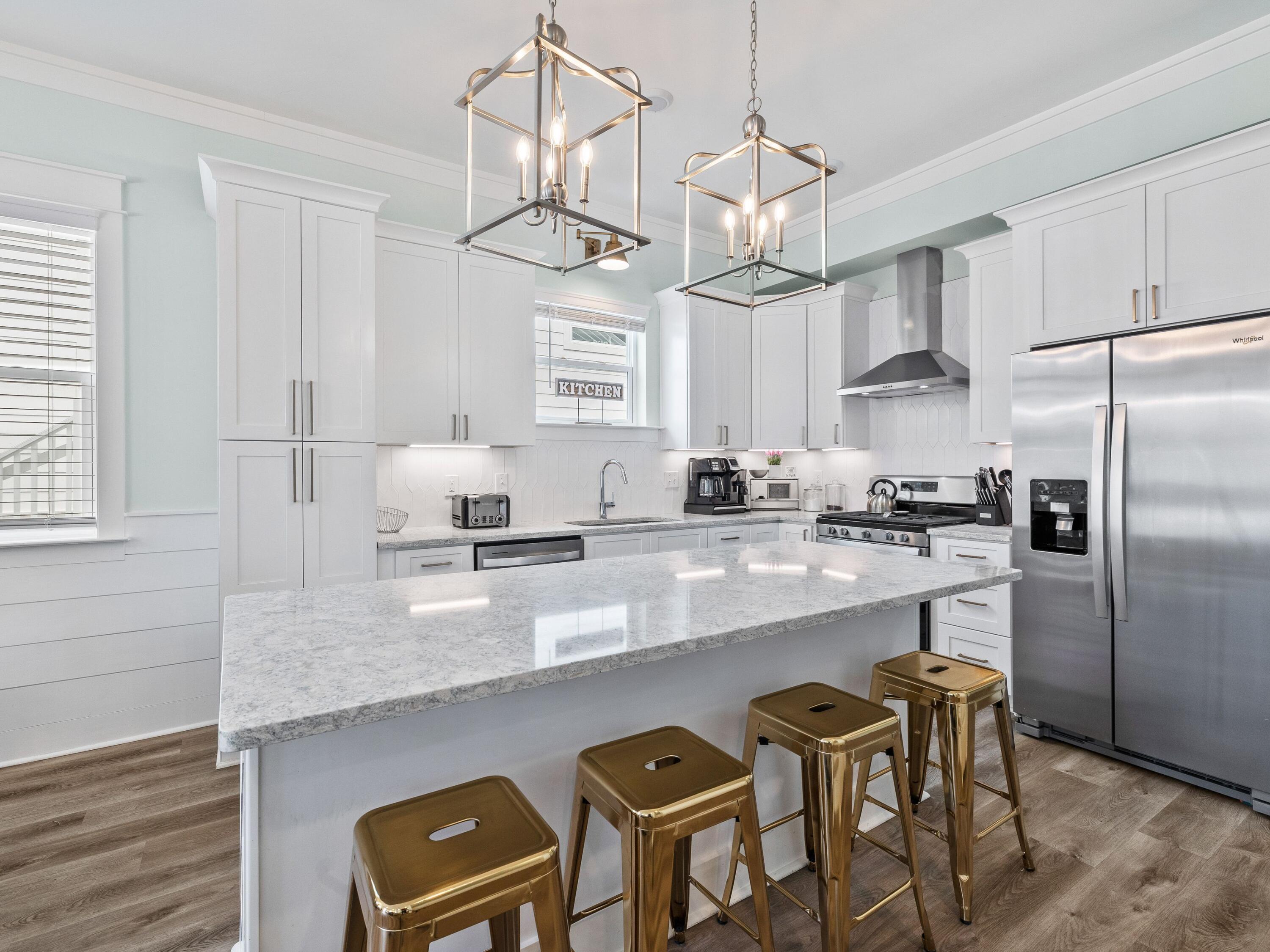 Exceptional investment opportunity just 0.3 miles from the sugar-white sands of 30A. Built in 2022, this professionally decorated 4BR/4BA beach cottage is being offered fully furnished and turnkey, complete with a six-person golf cart. The open-concept floor plan showcases wood flooring, shiplap accents, and a gourmet kitchen with quartz countertops, stainless appliances, and an oversized island ideal for entertaining. Two first-floor suites, including a king master and bunk room, plus two additional en-suite bedrooms upstairs. Outdoor living is enhanced by a welcoming covered porch and private patio backing onto natural greenery. With strong rental history and future bookings in place, this property is an outstanding opportunity for investors or second-home buyers alike.