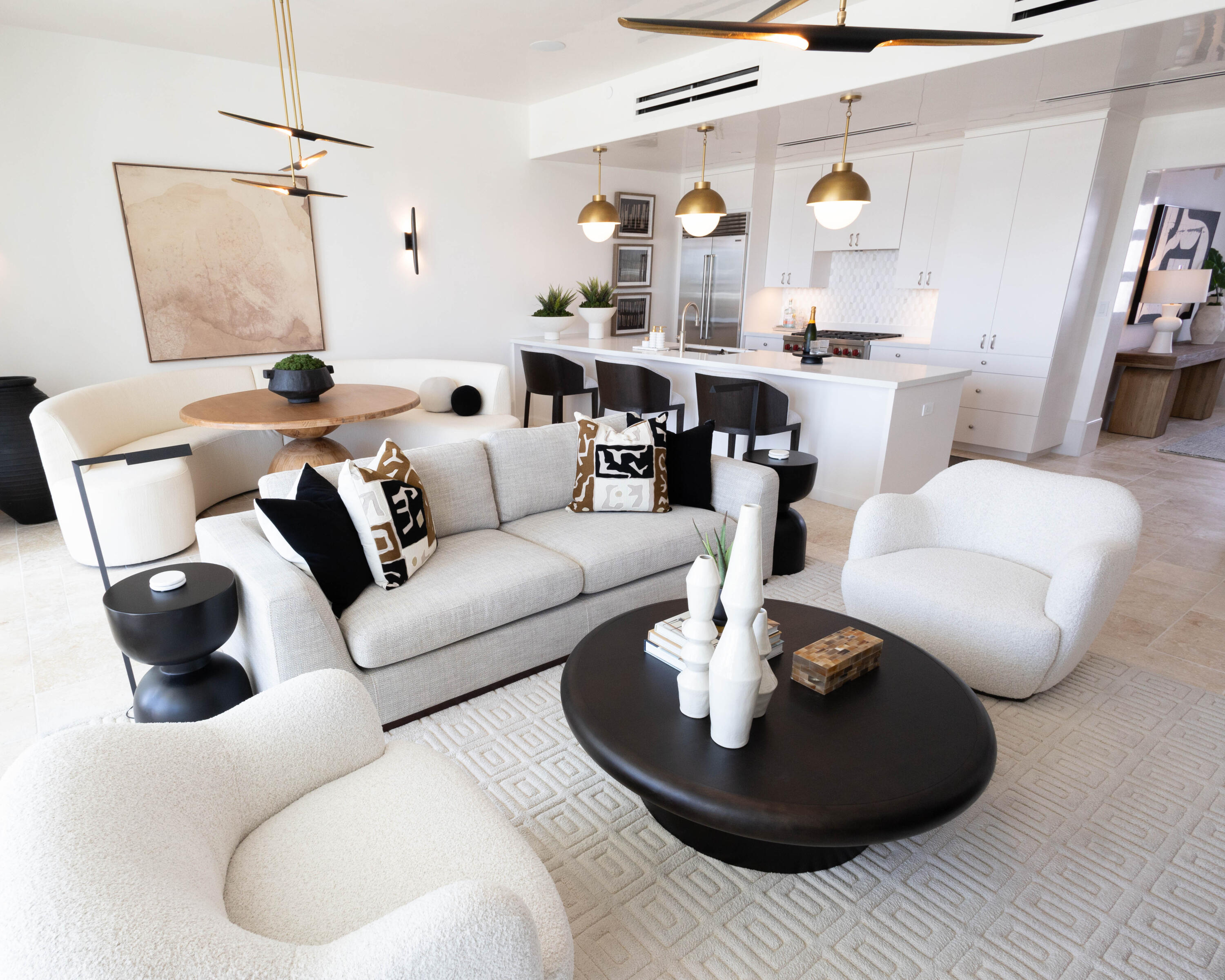 Discover Modern Luxury at The Della in Alys Beach. Experience the pinnacle of contemporary coastal living in this exquisitely designed Della condominium, where sophisticated minimalism meets beachside elegance. This stunning residence showcases a masterful blend of clean architectural lines, premium finishes, and thoughtfully curated design elements that create an atmosphere of refined tranquility. The open-concept living space flows seamlessly from the gourmet kitchen to the expansive living area, featuring soaring ceilings and floor-to-ceiling windows that flood the interior with natural light. Rich travertine flooring extends throughout, complemented by a sophisticated neutral palette of crisp whites and warm creams, accented with striking black elements and natural wood tones. The chef-inspired kitchen boasts sleek white cabinetry, premium stainless steel appliances, and a spacious island perfect for casual dining and entertaining. Contemporary pendant lighting and integrated design elements create a seamless transition between cooking and living spaces.Two beautifully appointed bedrooms offer serene retreats with designer lighting fixtures, and private balcony access. The master suite features a large walk-in closet, spa bathroom and glass doors that open to stunning outdoor views, while the second bedroom showcases artistic pendant lighting and sophisticated styling. Expansive balcony is accessible from multiple rooms provide the perfect setting for morning coffee or evening relaxation, with views that capture the essence of Alys Beach's natural beauty. The seamless indoor-outdoor flow enhances the coastal lifestyle experience. Located in the heart of one of Florida's most coveted beach communities, The Della offers residents an unmatched lifestyle just steps from pristine white sand beaches, world-class dining, and the unique architectural charm that defines Alys Beach. This is more than a residenceit's your gateway to sophisticated coastal living at its finest.