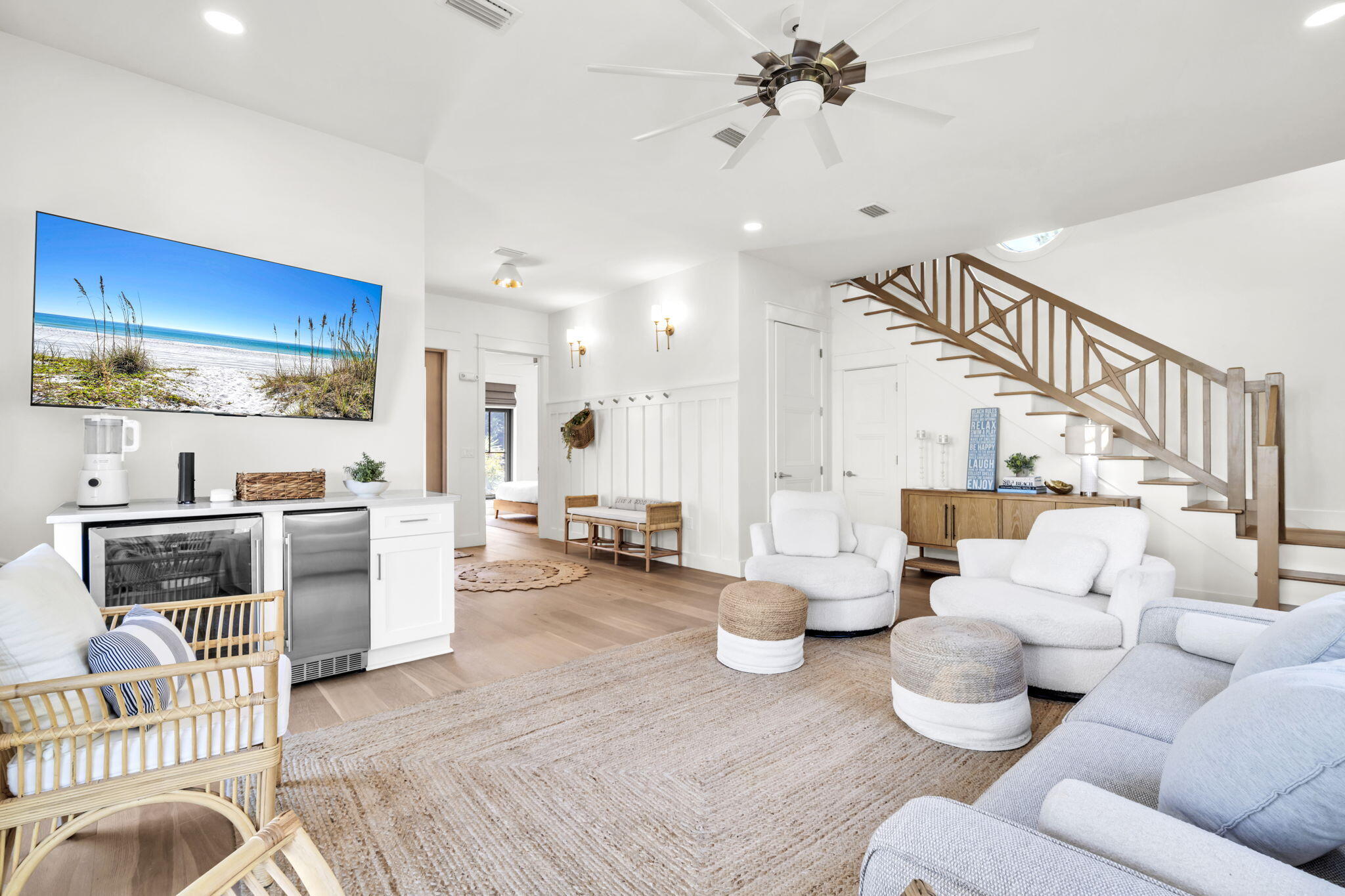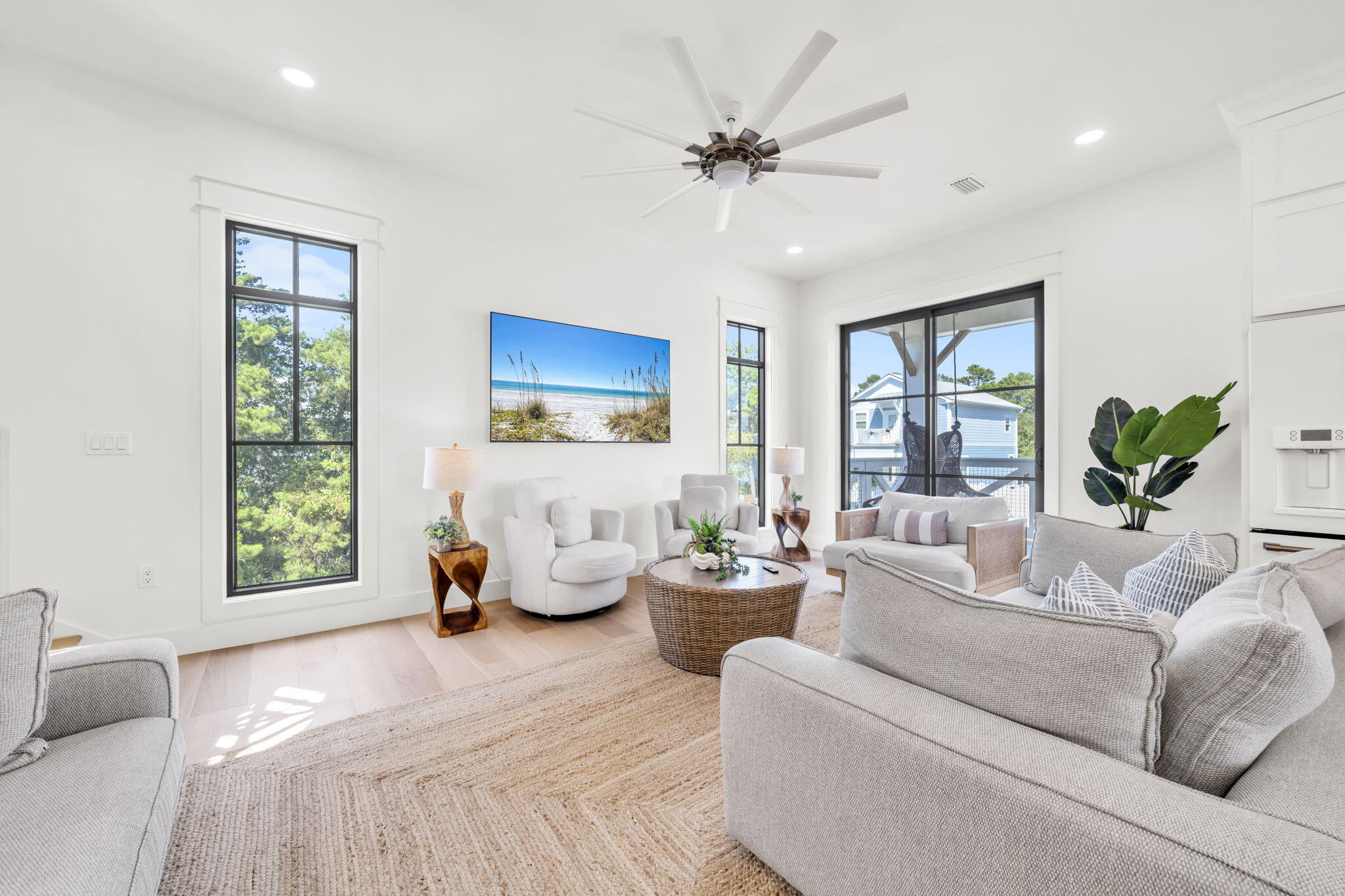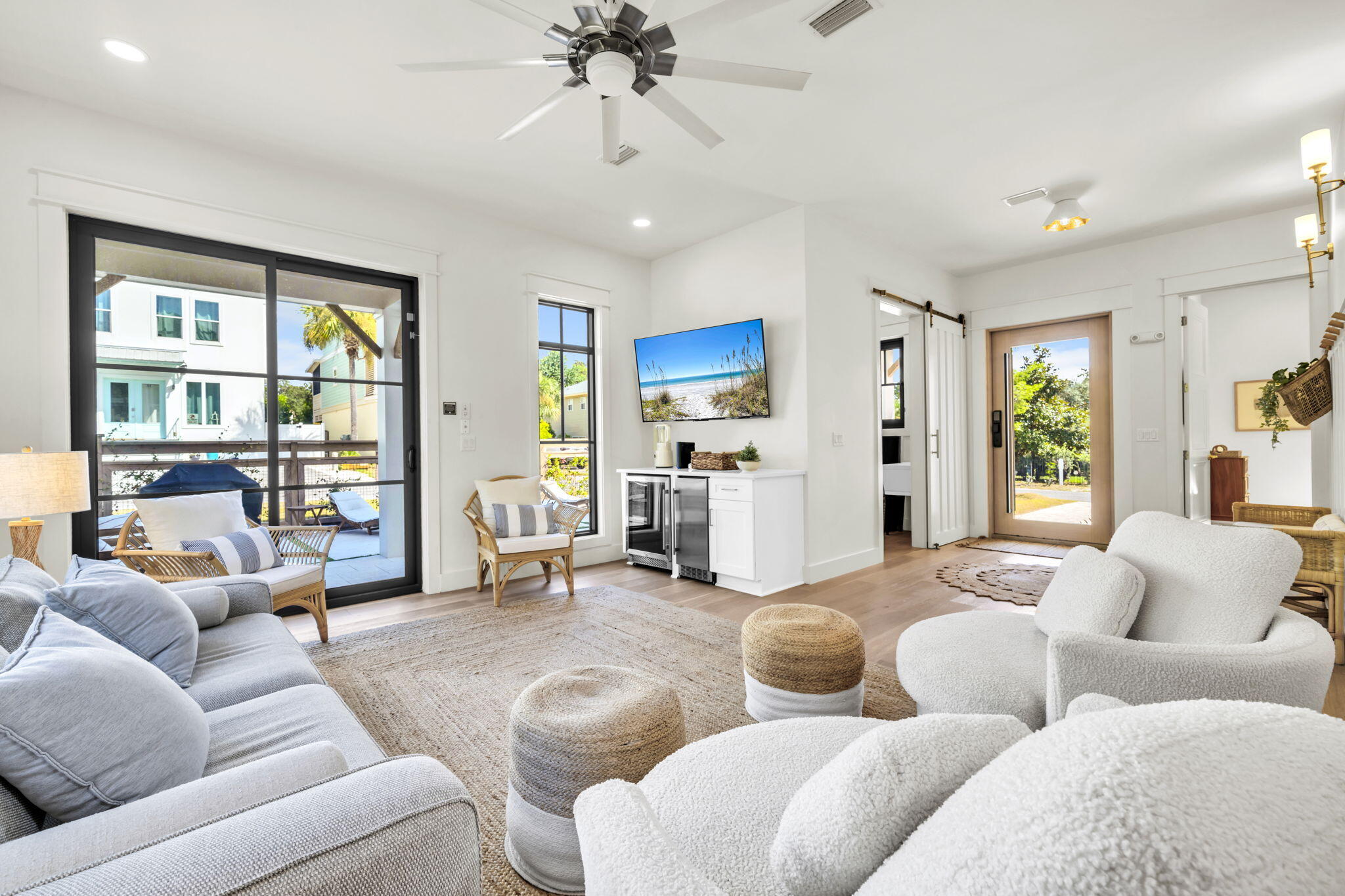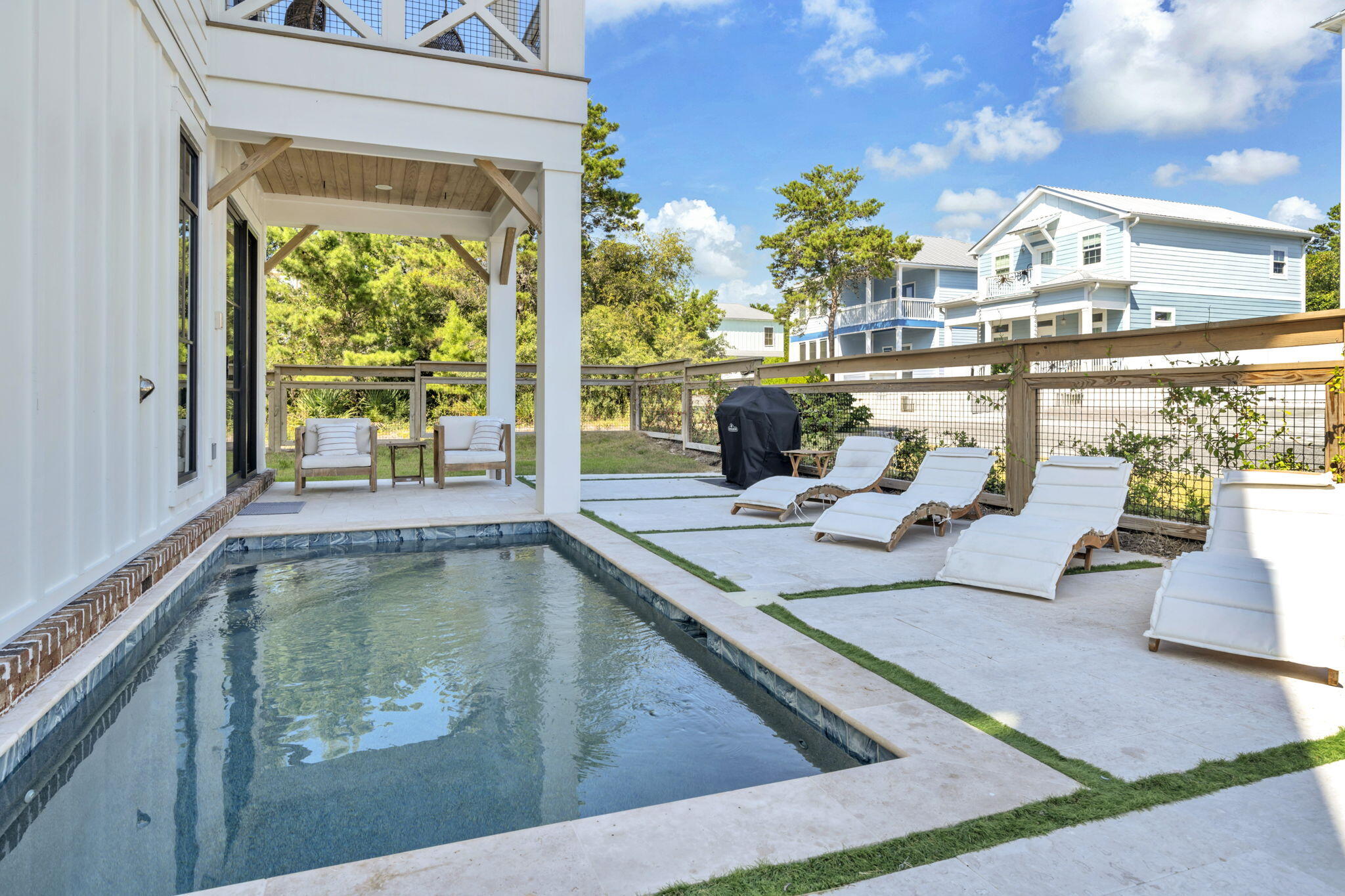 Nestled in the prestigious enclave of Blue Mountain Beach along the iconic 30A, 53 Porpoise Street is a recently constructed (2023) masterpiece of coastal elegance. This beachside haven offers the pinnacle of seaside living with a private pool, designer furnishings, and an enviable location just minutes from the sugar-white sands and turquoise waters of the Gulf. Step inside and discover interiors that blend elegance and comfort with ease. From the open living spaces to the beautifully appointed bedrooms, every detail has been thoughtfully curated with high-end finishes and carefully chosen furnishings that capture the spirit of coastal living. This is a home designed not just to be lived in, but to be savored. Your private outdoor oasis awaits. Lounge in the sun by the sparkling pool, share alfresco dinners in the courtyard, or host unforgettable gatherings under the stars. Whether you're taking a refreshing morning swim or enjoying a tranquil evening soak, the poolside retreat promises endless opportunities for relaxation and celebration.