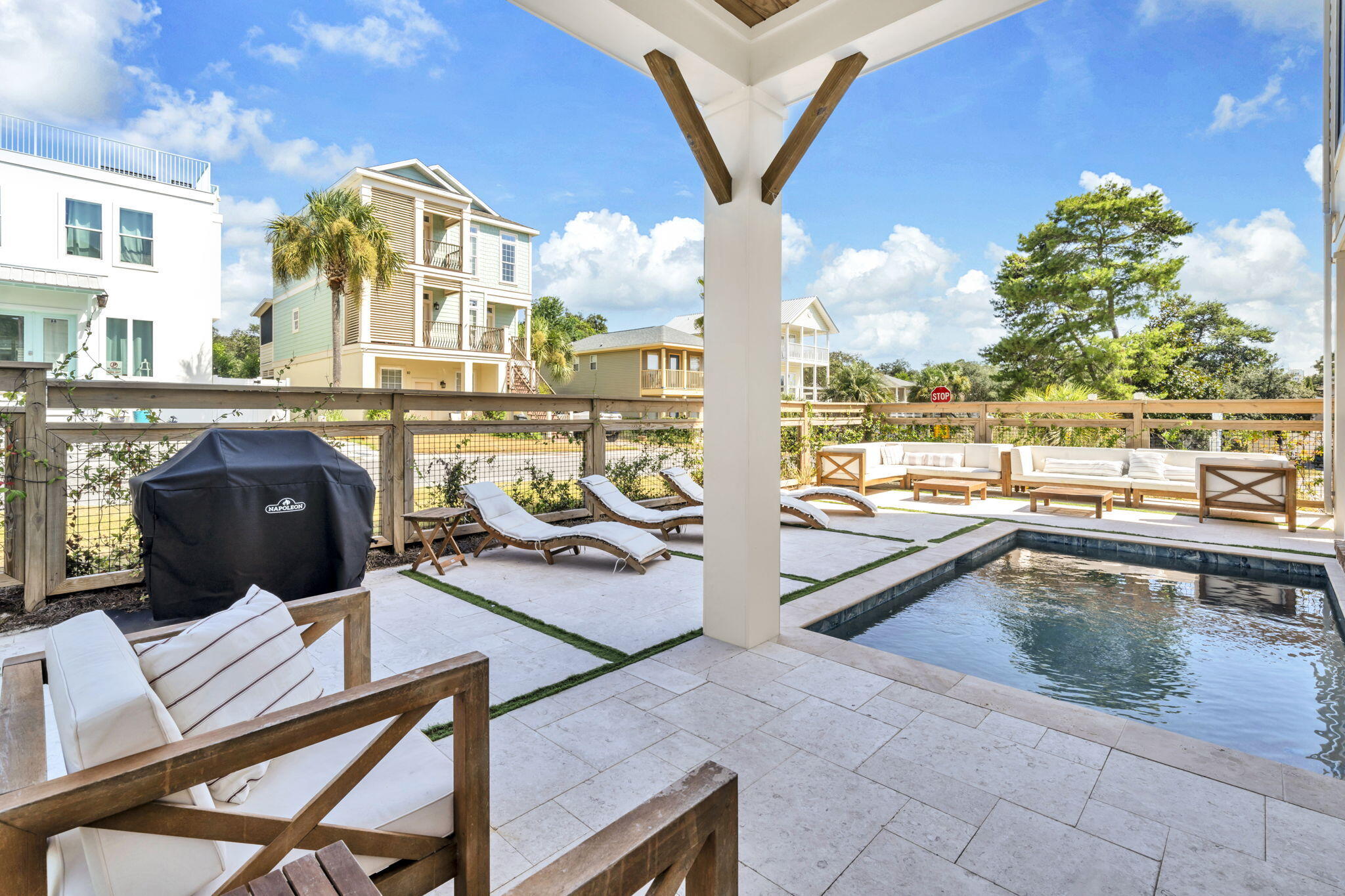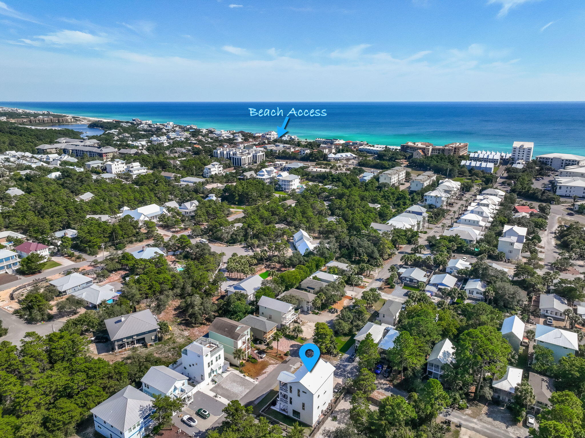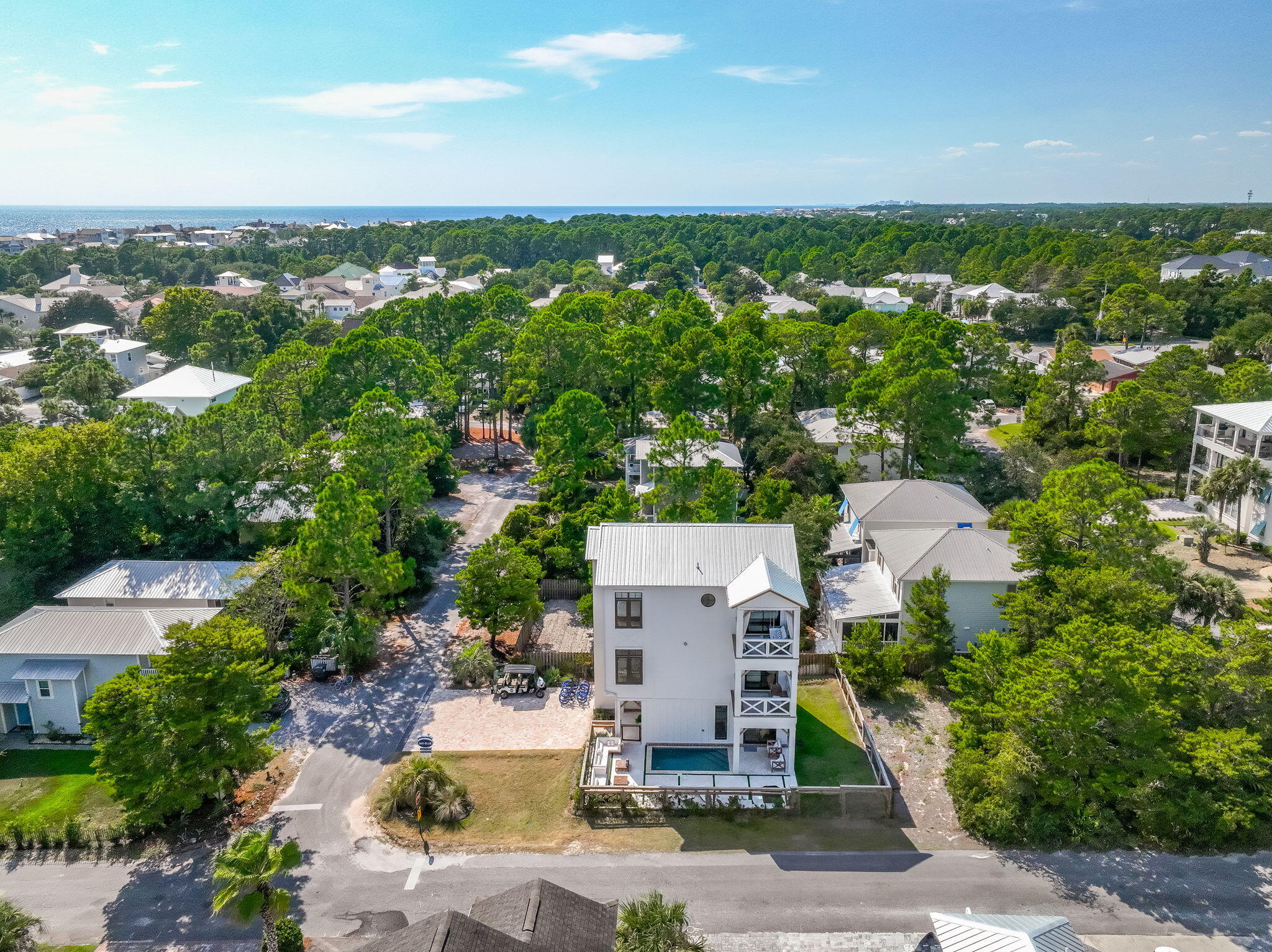From 30A turn north on Dune Side Lane. At the end of Dune Side Lane continue straight onto Marlin Street.The property is on the corner of Marlin St and Porpoise St.