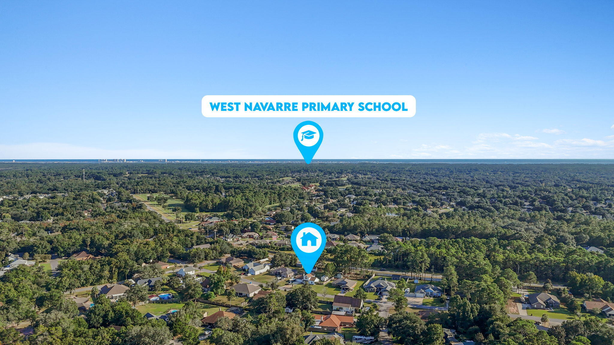 Welcome to this well-maintained 3 bedroom, 2 bathroom home located in a sought-after Navarre neighborhood. The layout offers a spacious primary bedroom and en-suite upstairs, with two additional bedrooms and a full bath on the main level. The living room features a cozy fireplace, and the kitchen provides ample cabinet space for storage and functionality.Enjoy outdoor living on the screened-in patio, which is scheduled for repair prior to closing. The accessory dwelling unit (ADU) with pink door does not convey, but the shed in the back corner of the lot does. Also, the above-ground pool may remain with the property if desired.An optional HOA membership is available for a one-time fee, offering access to a private boat launch/water access and picnic areas.