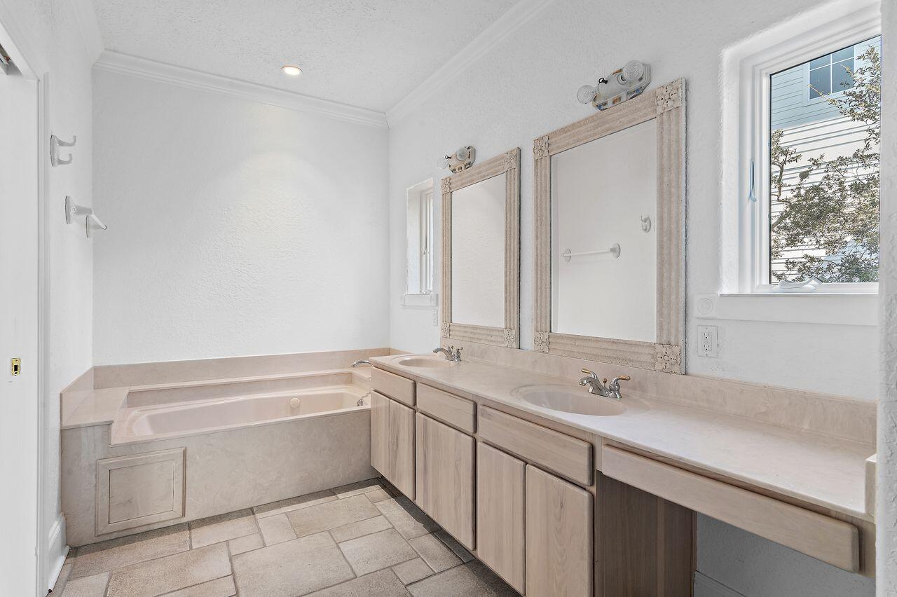 Extremely well built, ICF home located on TWO 70x140 lots. Property backs up to a private 5 acre green space - a tributary for Stallworth Lake. Easy walk to a beach access at the end of S Bishop and Topsail Hill State Preserve-four miles of beautiful, un disturbed, Florida beach. Option of updating current home, adding a Carriage house, and a pool. Or, build two new homes. New construction would offer water views around 48-50ft. This is one of the best neighborhoods and locations in the area.