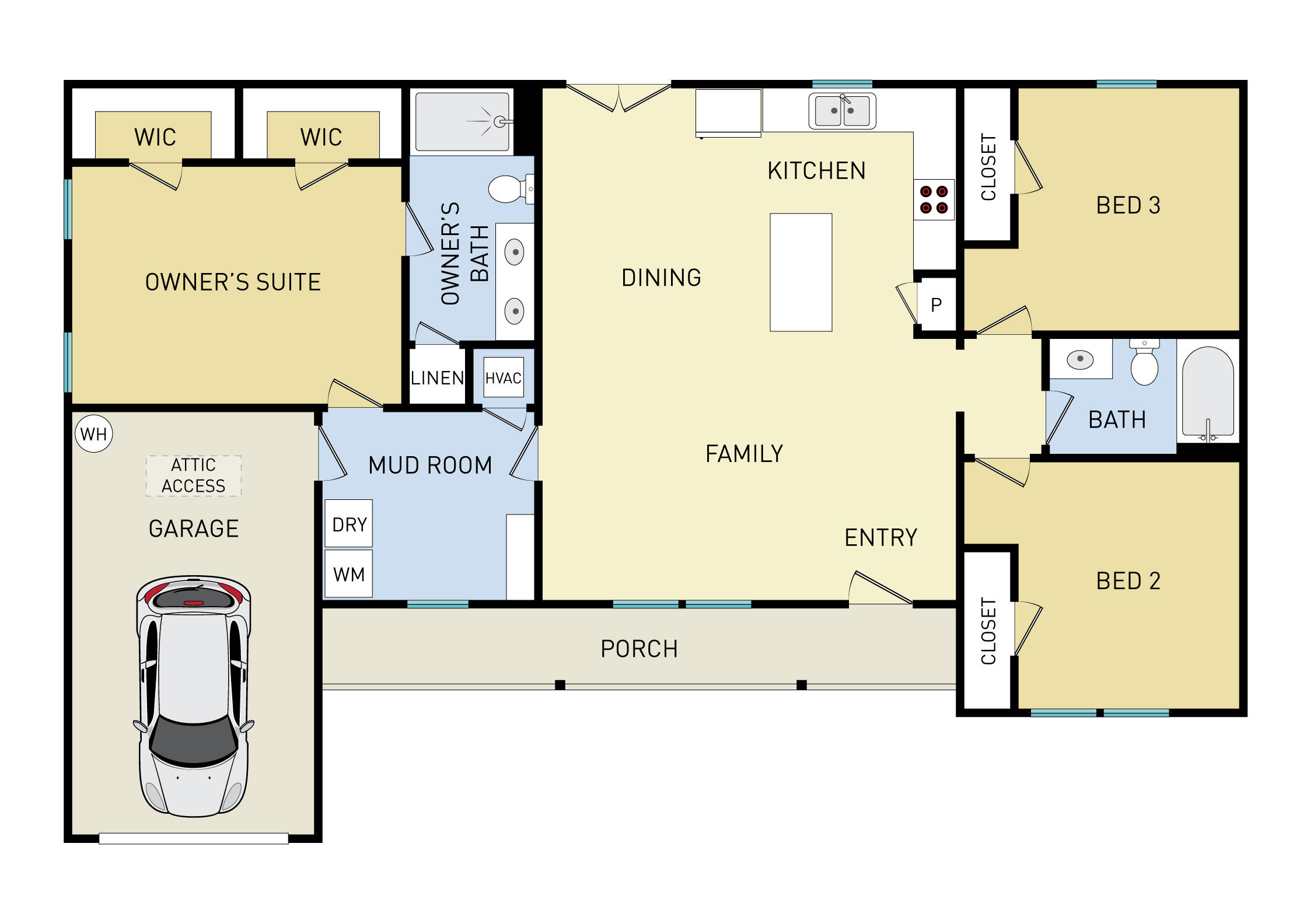 COZY COTTAGE HAS CAREFULLY DESIGNED FLOOR PLAN maximizing your living space. Covered front porch, finished garage and fully landscaped yard comes with yearly grass cutting (HOA includes 40 cuts per year). Split BR design, raised ceilings in open family/dining/kitchen area. Luxury vinyl plank flooring throughout, quartz countertops, work island w/bar seating, white shaker cabinets + pantry in kitchen. Primary bedroom has double walk-in closets, bath has double vanities + linen storage. Oversized mud room has room for washer/dryer + freezer or lockers/benches. Ceiling fans in all bedrooms & family room, recessed lighting throughout the home. Seller will pay up to $10,000 towards closing costs/prepaids/rate buydown (restrictions apply). Late November/early December completion.