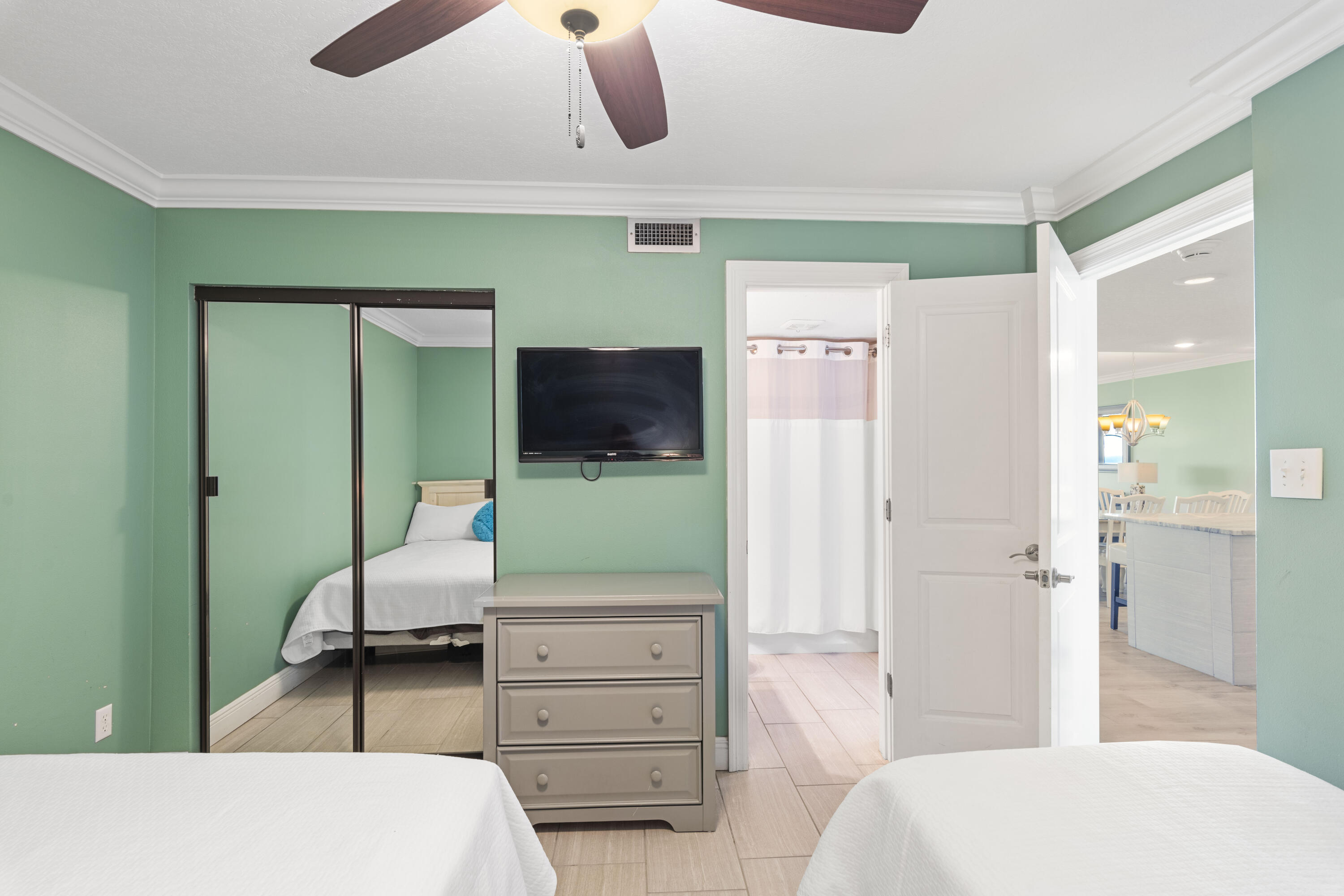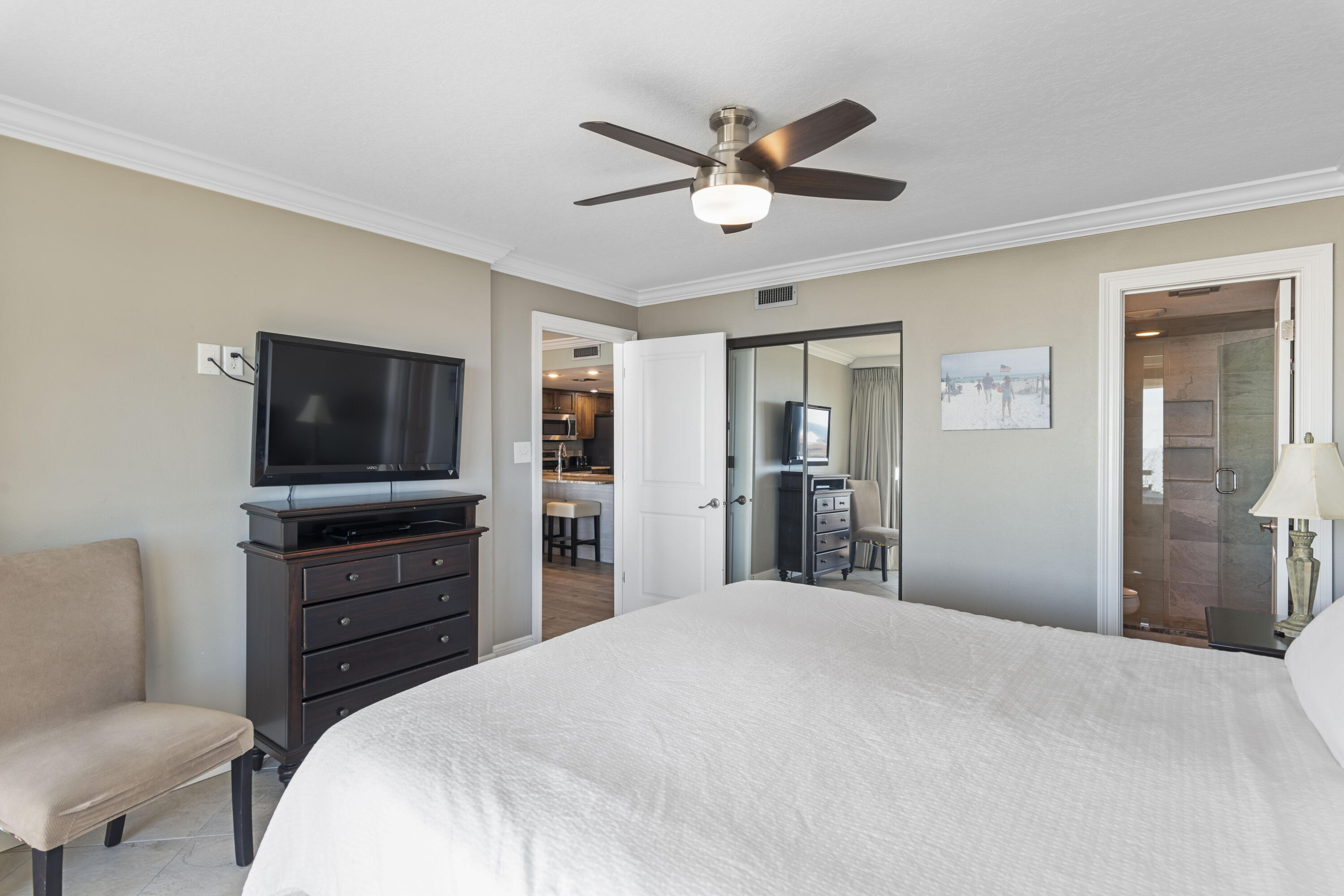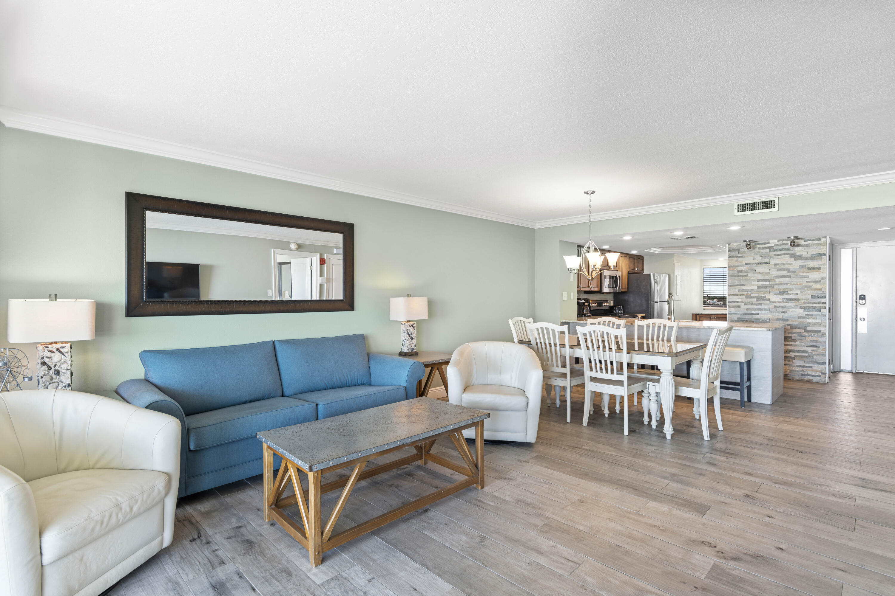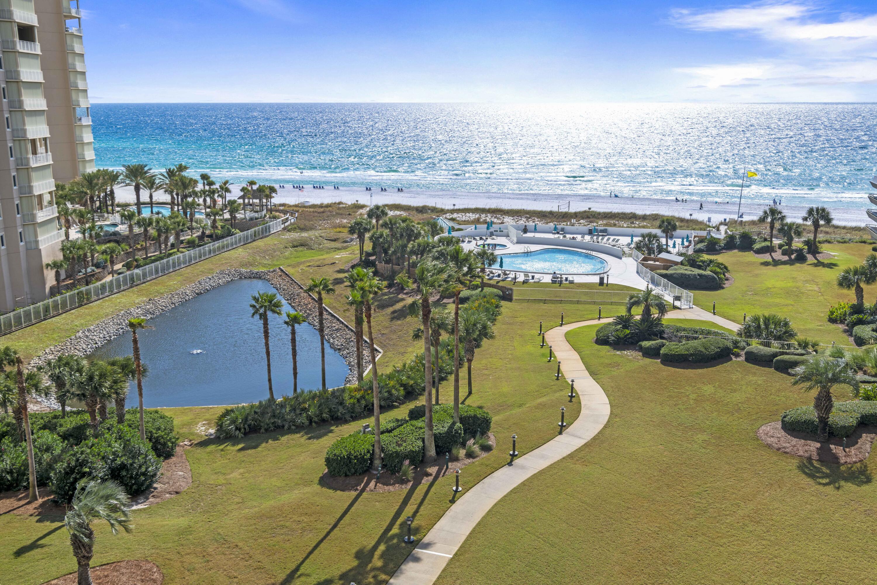 The Edgewater Condominium not only boasts the perfect location near shopping, dining, etc, but also offers top notch amenities including 425' of private beach. Unit 900 has stunning gulf views from the living, dining, kitchen & master bedroom along w/ a strong rental history. The unit was updated in 2015 to include new flooring throughout, ceilings scraped & re-finished, all doors replaced. The kitchen received a full make over w/ new appliances, countertops, step island knocked down to create flat island, backsplash added & even added a tray ceiling. Bathrooms received new countertops, mirrors, fixtures, & in master bathroom the bathtub was removed to make way for a new beautifully custom tiled walk-in shower. SELLER WILL PAY all of remaining 2025 HOA fees w/ acceptable offer.