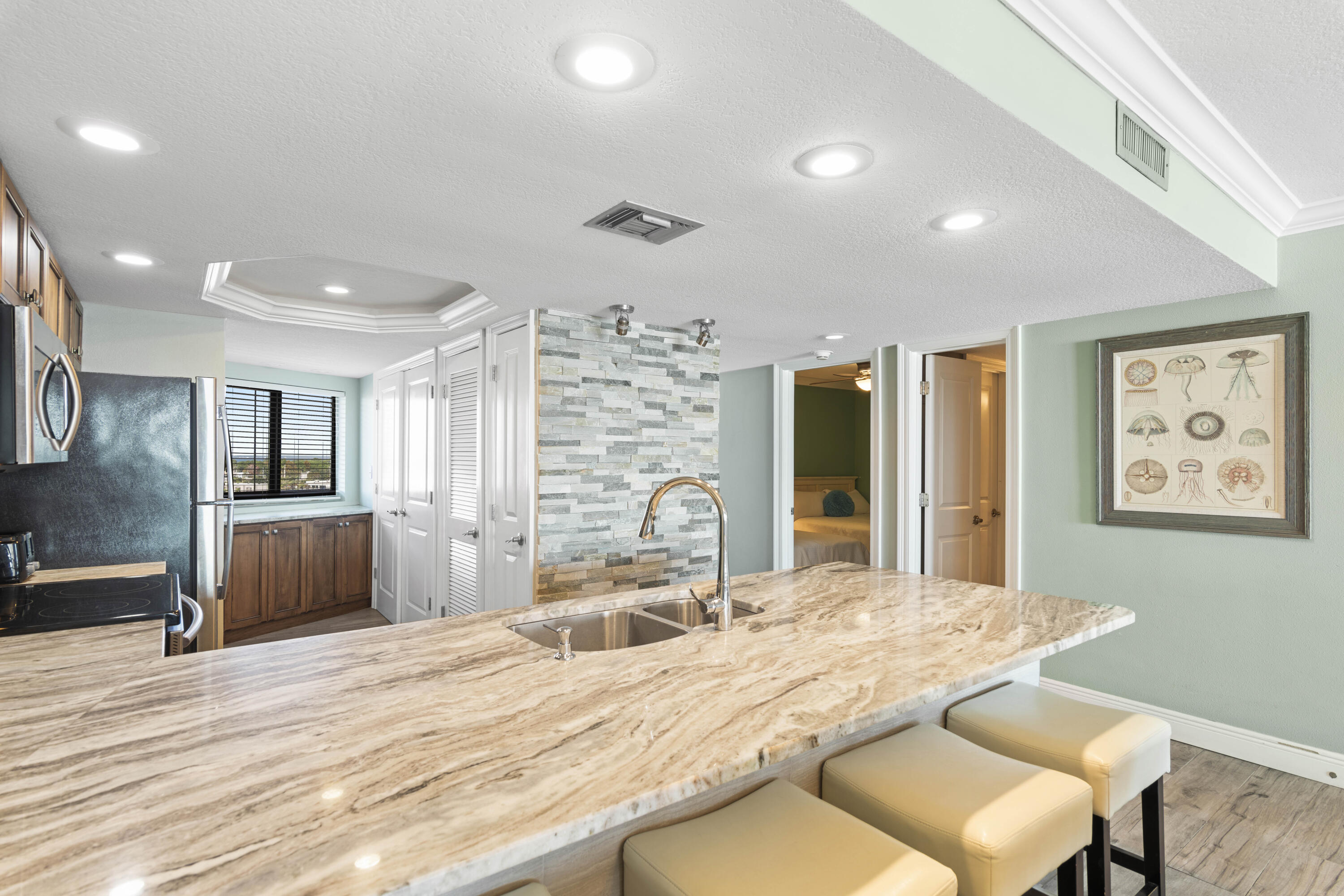 INTERIOR | Breakfast Bar,Floor Tile,Furnished - Some,Renovated,Window Treatment All |