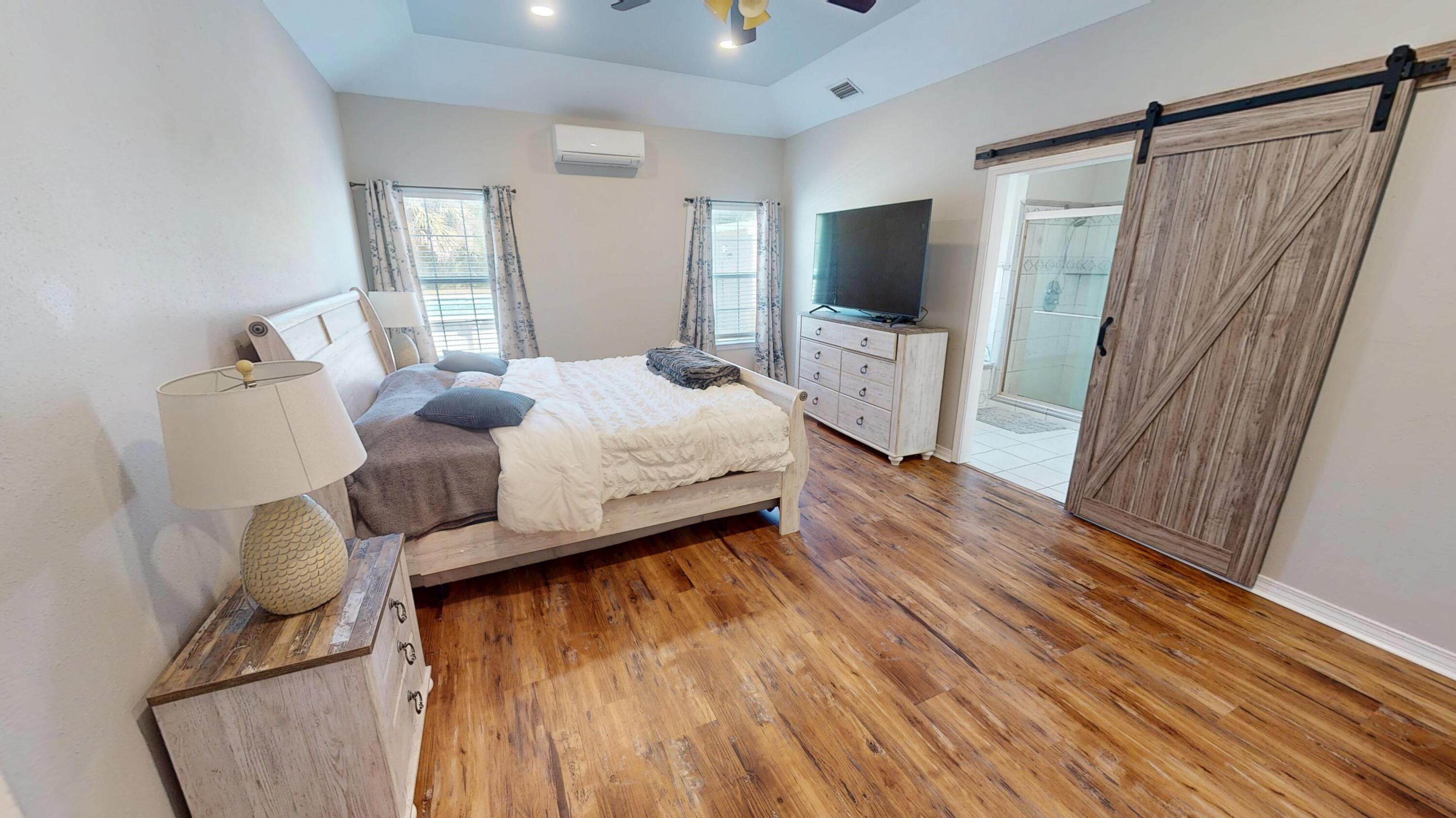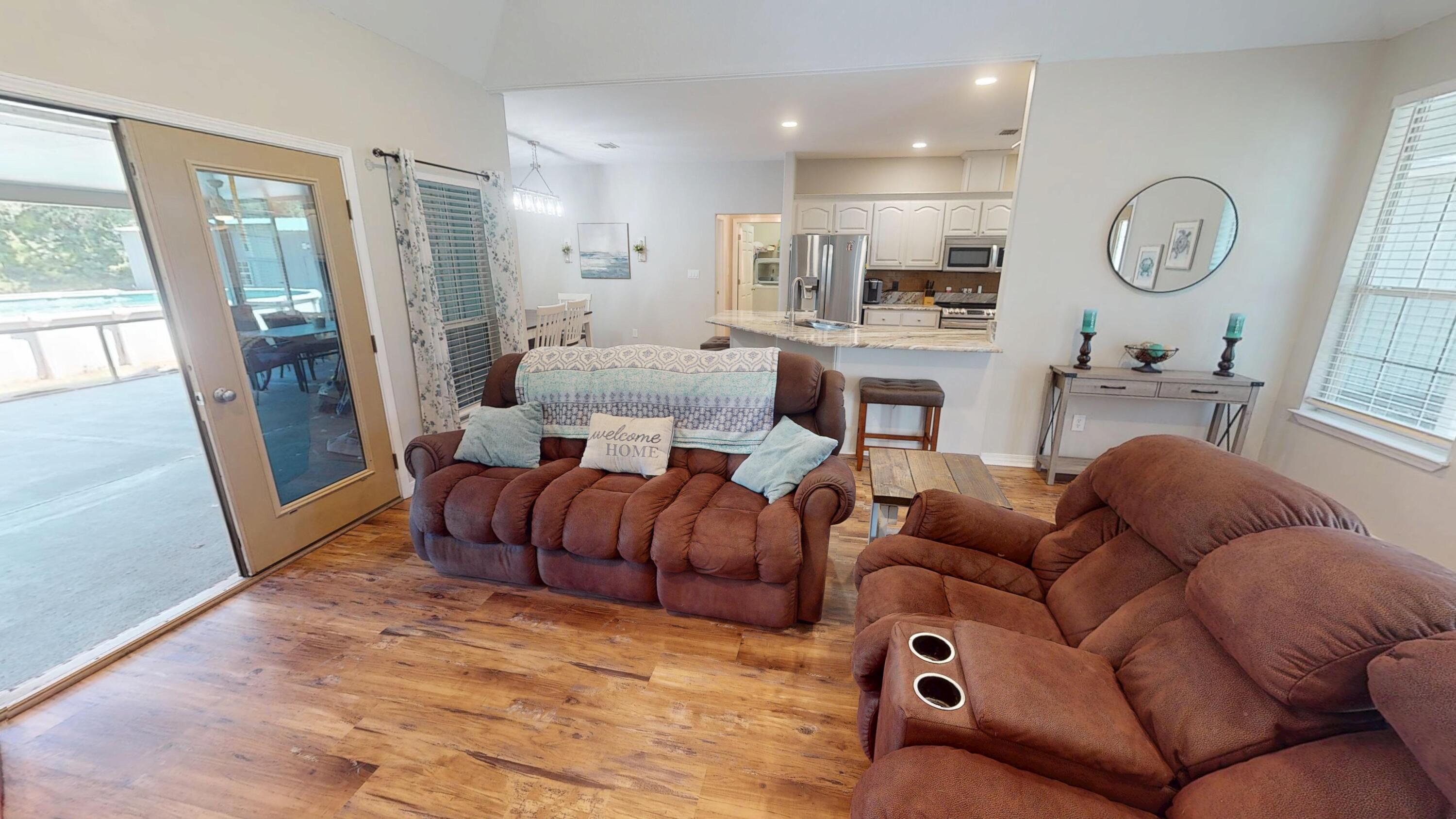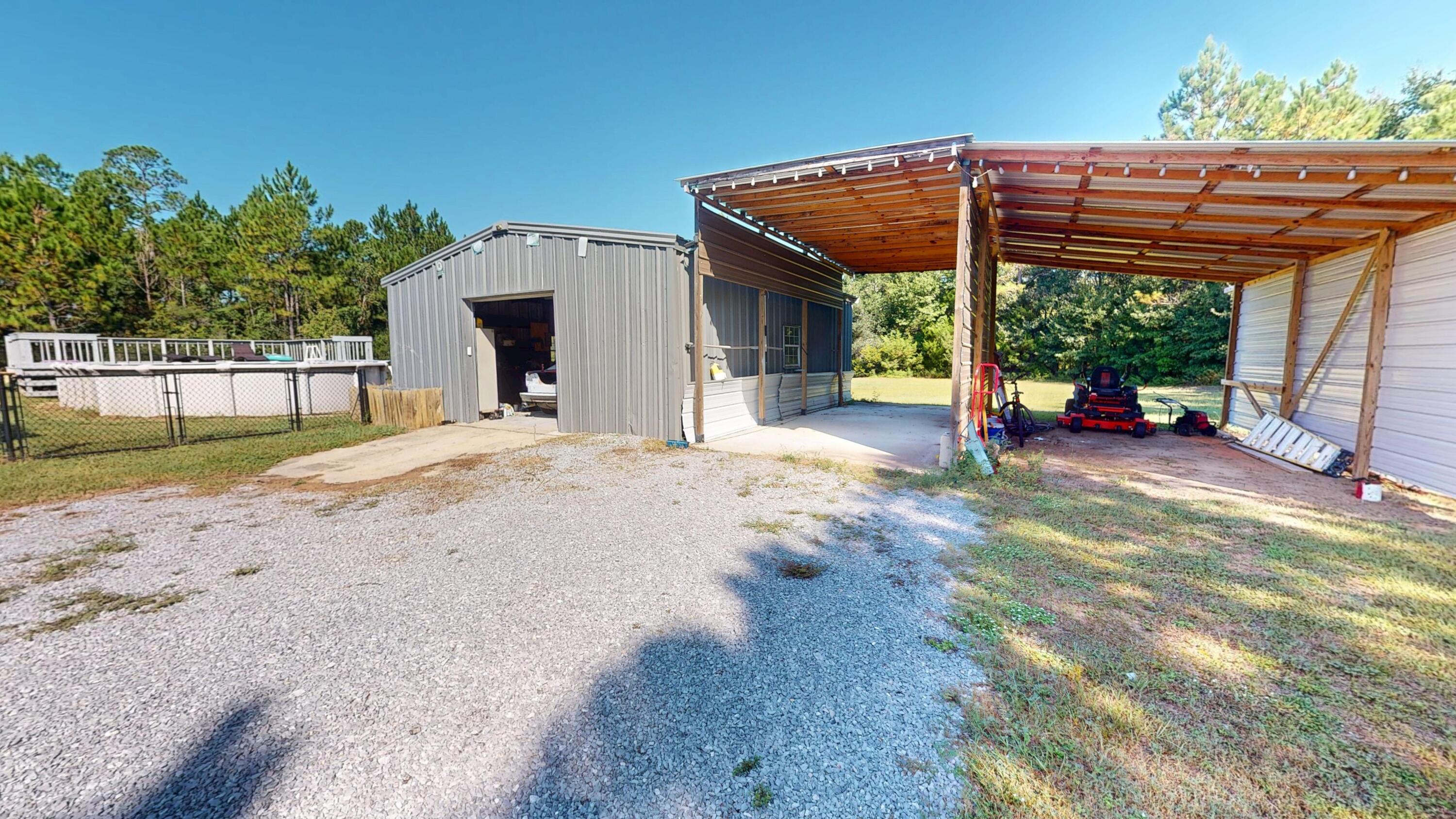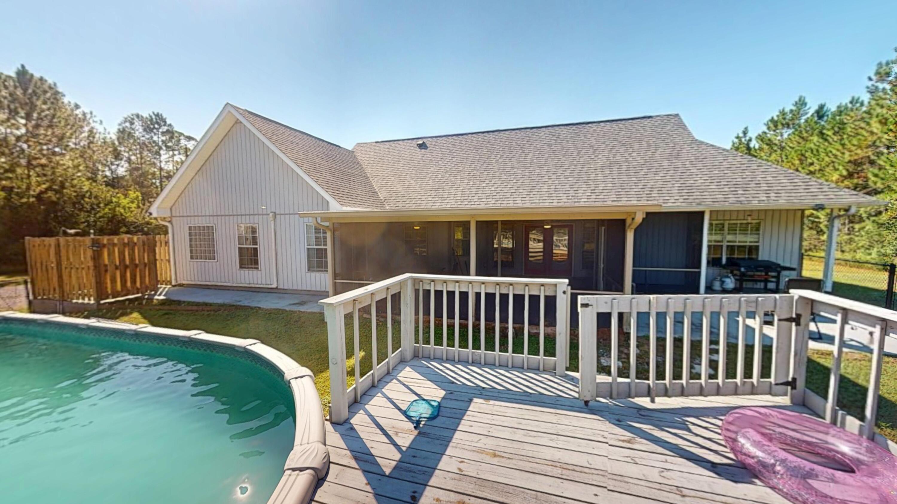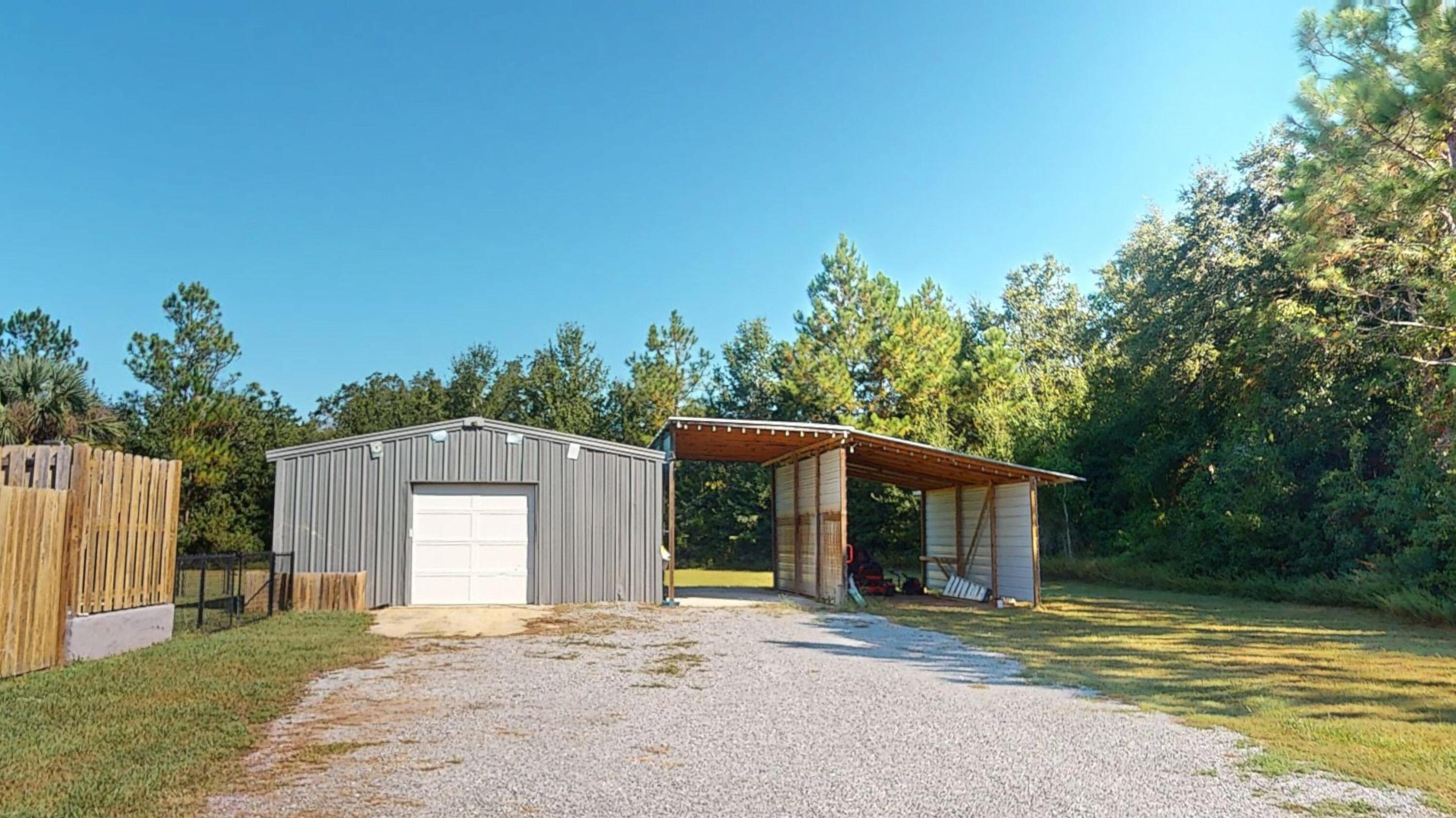 Welcome to your mini estate! Nestled on 2.15 acres this beautiful craftsman home with a modern design has it all... privacy, functionality, location, an entertainers dream and space for all of your toys! Step into a split bedroom, open floor plan living area with lots of natural light, tray ceilings, recessed lights and LVP floors throughout. The kitchen features gorgeous granite countertops, tiled backsplash, stainless steel appliances with loads of storage in the corner pantry and peninsula with bar stools.The inviting primary bedroom is spacious with another tray ceiling and barn door leading to a luxurious ensuite bathroom where you'll find a jacuzzi tub, custom tiled shower, dual sinks and walk in closet. There are 2 generous sized guest rooms and modern bathroom on the other side of the home. Step out the french doors off the living room into the screened patio that leads to the pool and deck. An outdoor shower is the perfect convenience for before or after swimming or coming back from the beach. A 24x30 workshop should handle all of your hobbies with loads of built in shelves and power. In addition, there are attached RV and boat carports with power hook up for the big toys. If you need more storage, check out the bonus room above the attached 2 car, side entrance garage. This small estate is conveniently located on Garcon Point 3 miles South of I-10 and 8 miles North of Hwy 98, Gulf Breeze. You'll have peace of mind with updated mechanicals including a new water heater in 2024, new roof in 2020 and HVAC in 2019. A property like this doesn't come around very often so don't wait!
