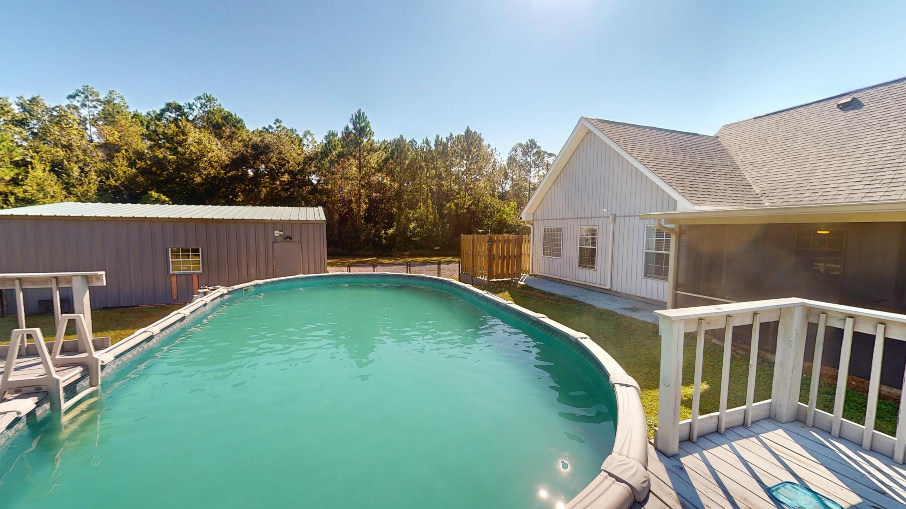 EXTERIOR | Fenced Chain Link,Patio Enclosed,Pool - Above Ground,Workshop,Yard Building |